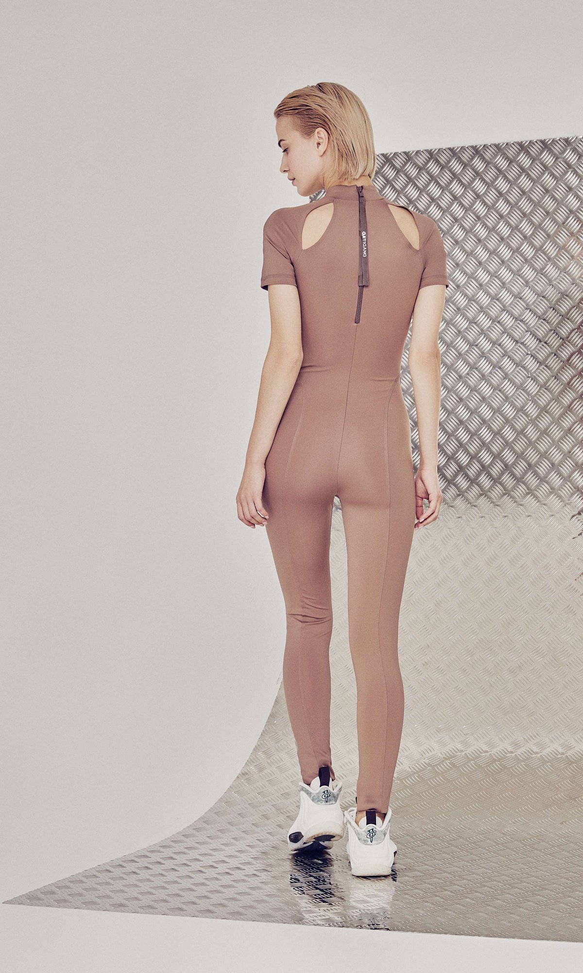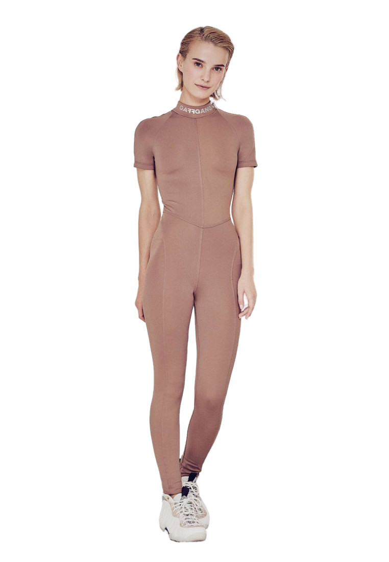 Спортивный комбинезон в футуристичном стиле в окрасе какао. Материал: бифлекс матовый стрейч Active Cool.