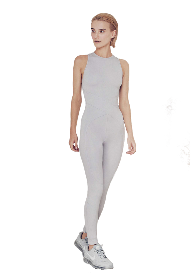 Комбинезон для танцев и йоги с переплетением на талии в окрасе альбинос. Материал: бифлекс матовый стрейч Active Cool.