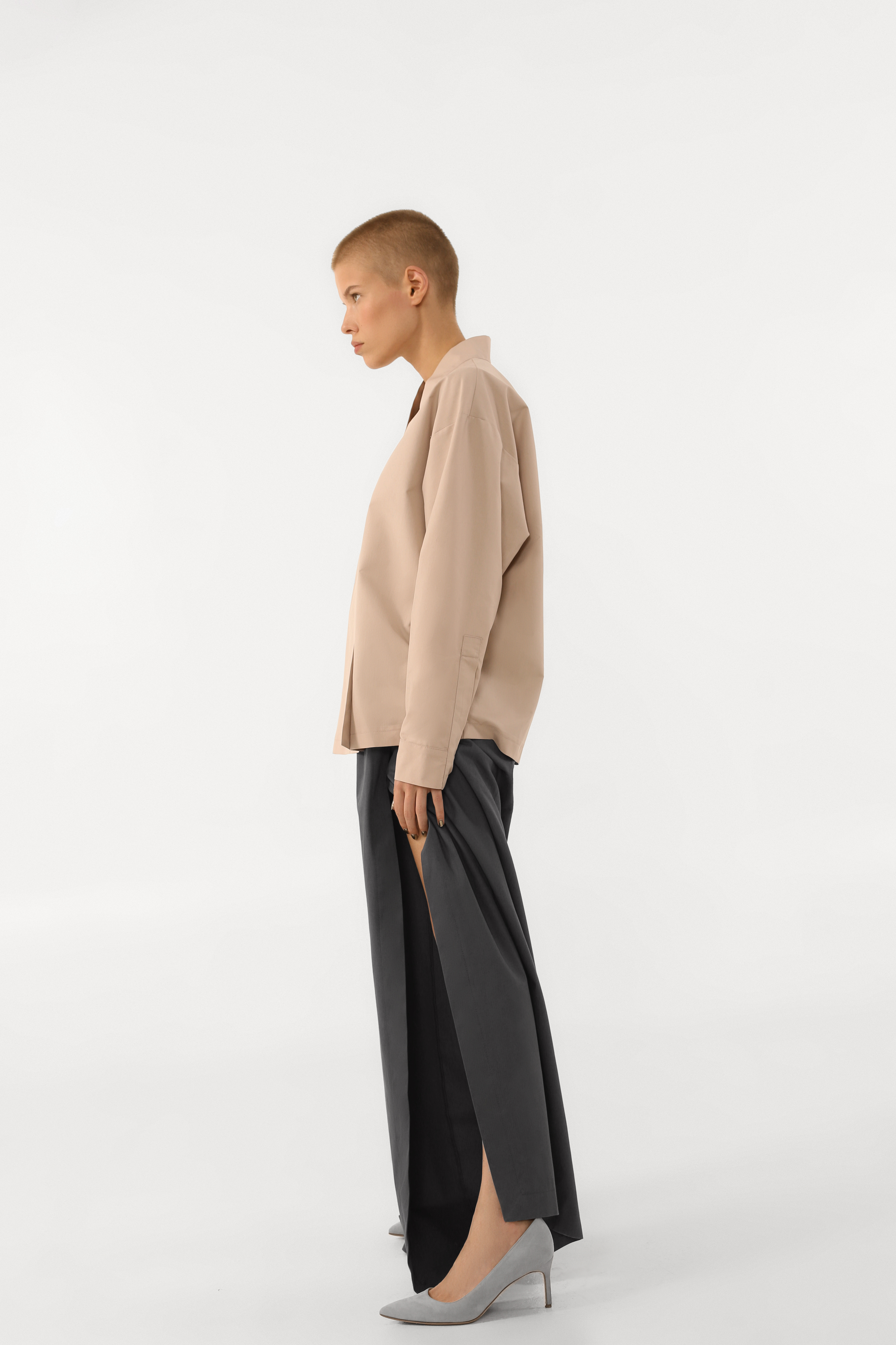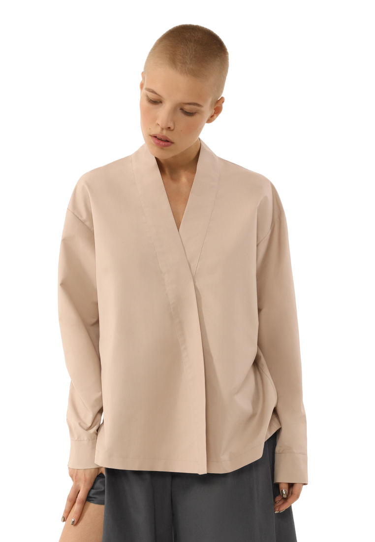 Спортивная блуза из сорочечной ткани окраса какао. Уход:Важно соблюдать указанный температурный режим стирки и гладить с изнаночной стороны!