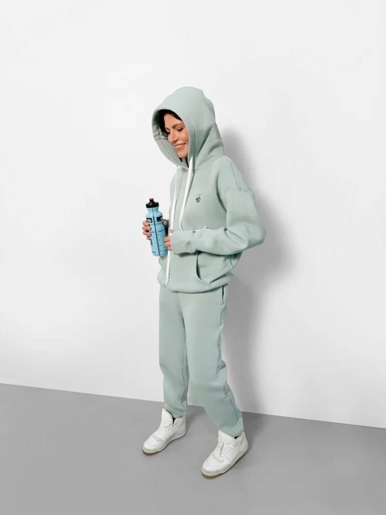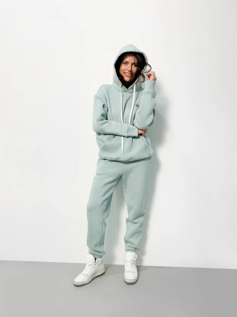 Спортивный костюм из футера с начесом, худи с капюшоном и карманом, штаны на резинке.Единый размер изделия S-L.