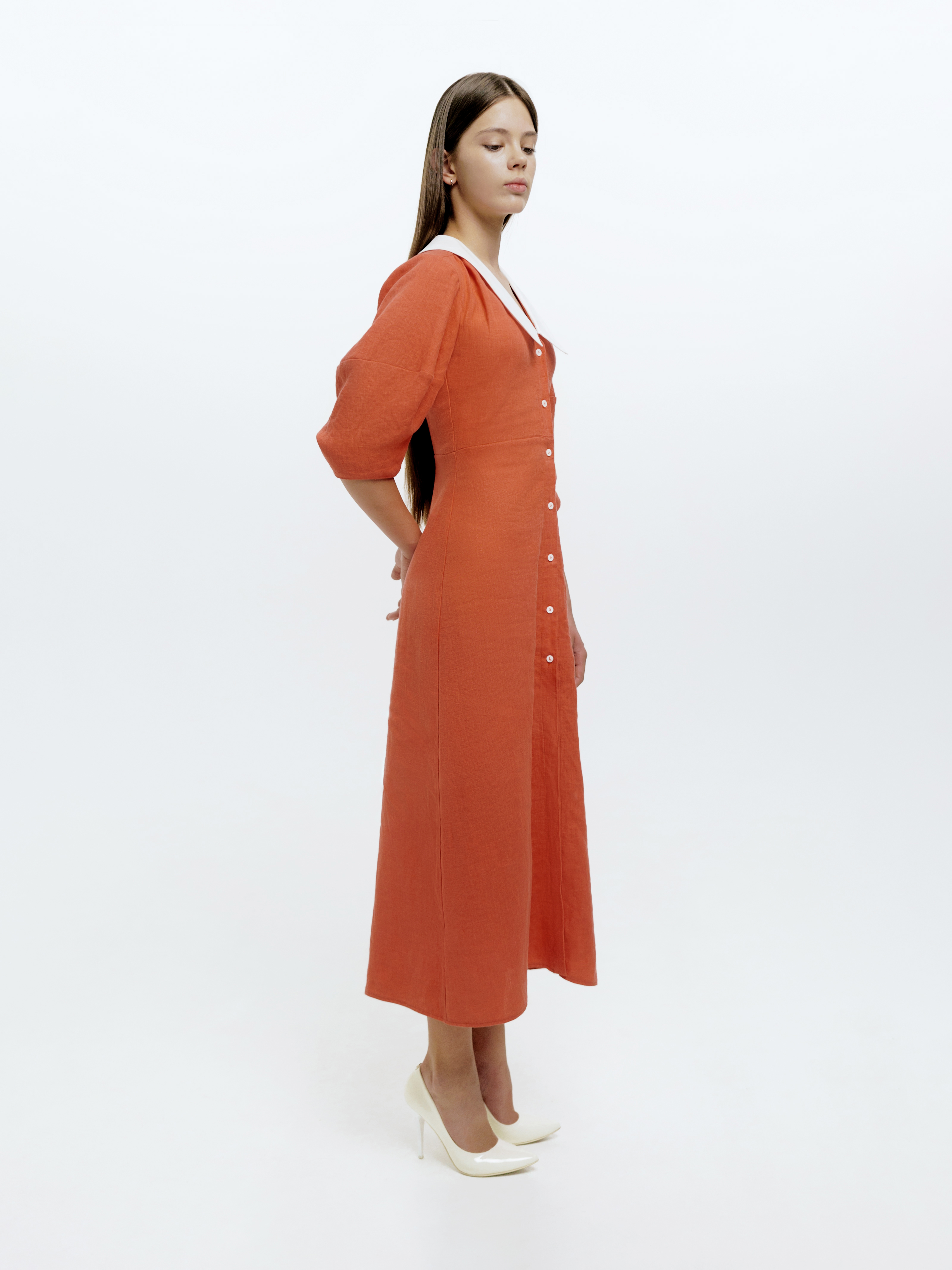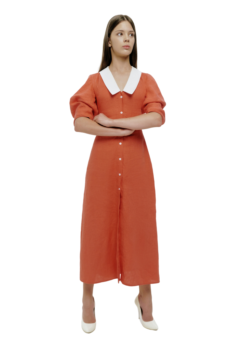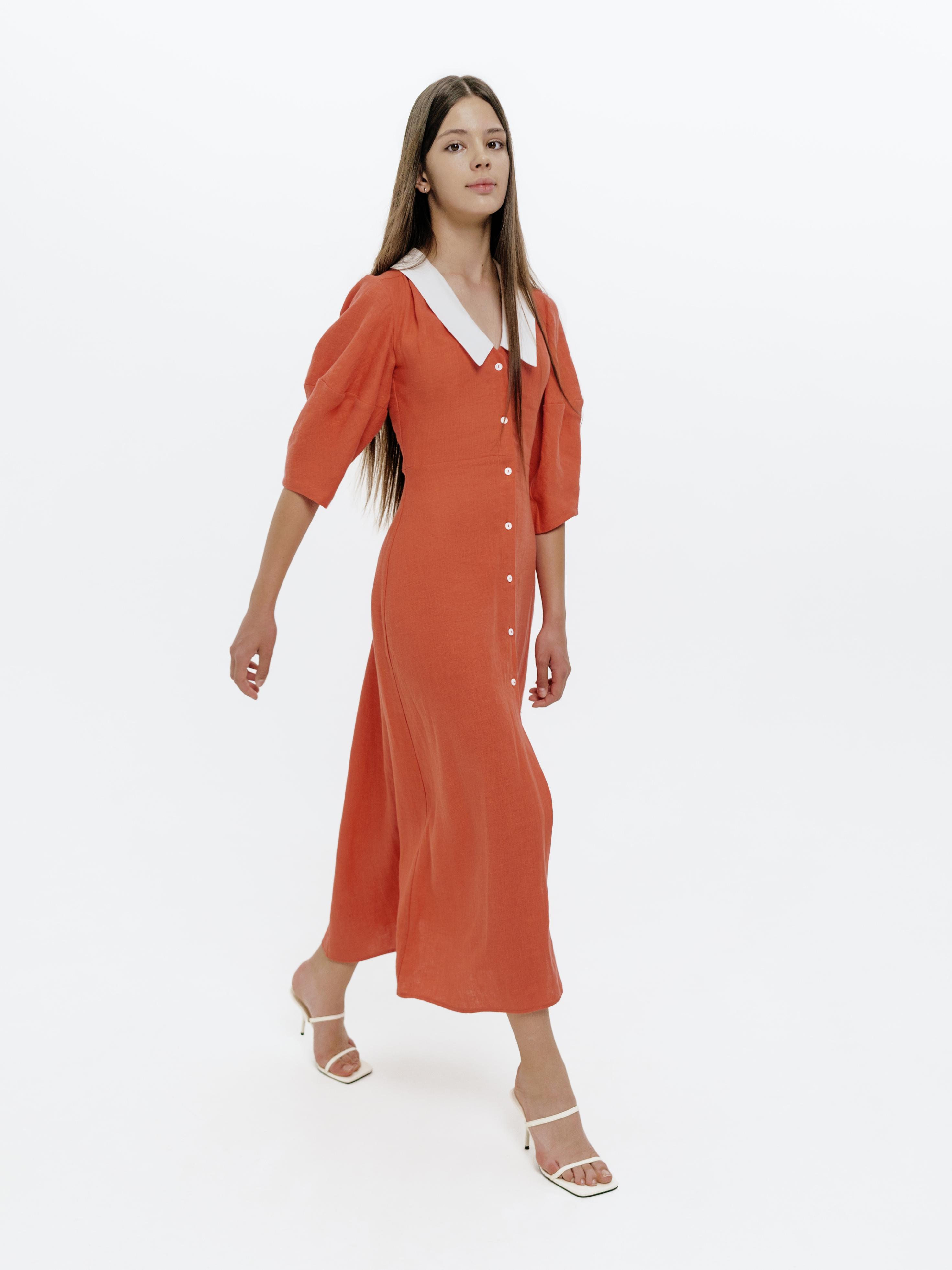 Утонченное платье с воротом сделает вас центром внимания на любом вечере. Мы сшили его из натурального льна с плотным переплетением тончайших нитей: материал струится и ниспадает, приятно охлаждая кожу. Завершите образ минималистичными босоножками или вьетнамками.