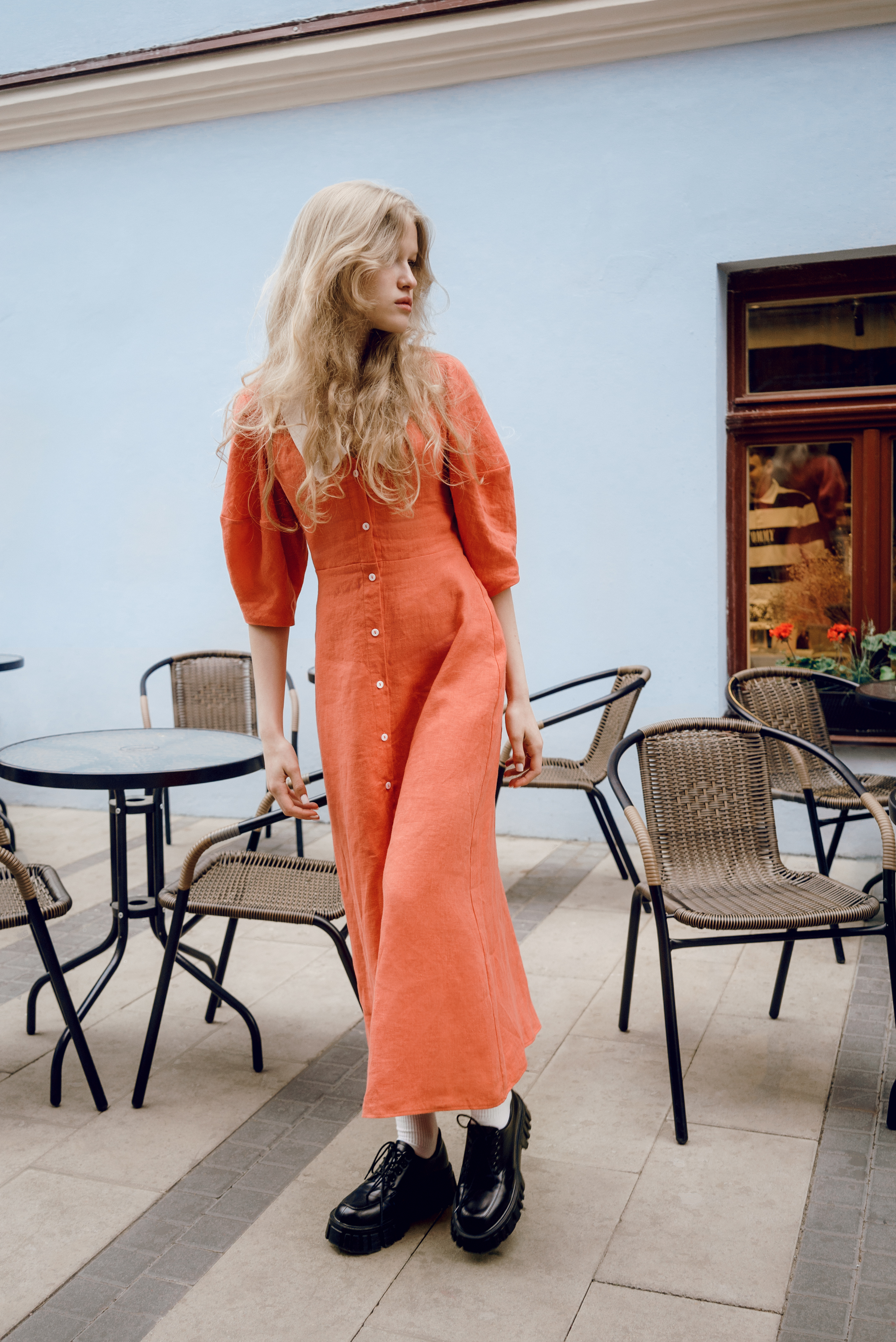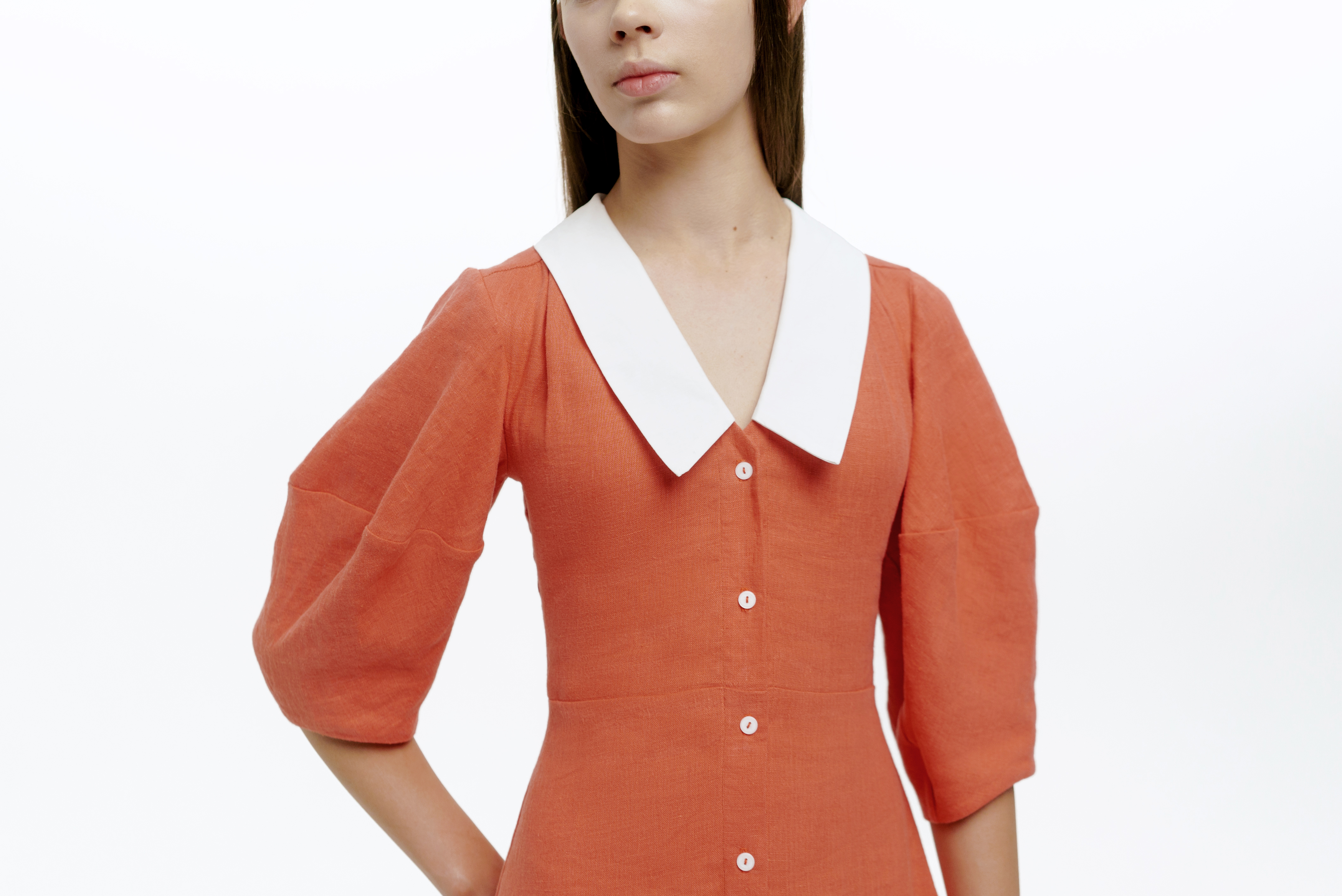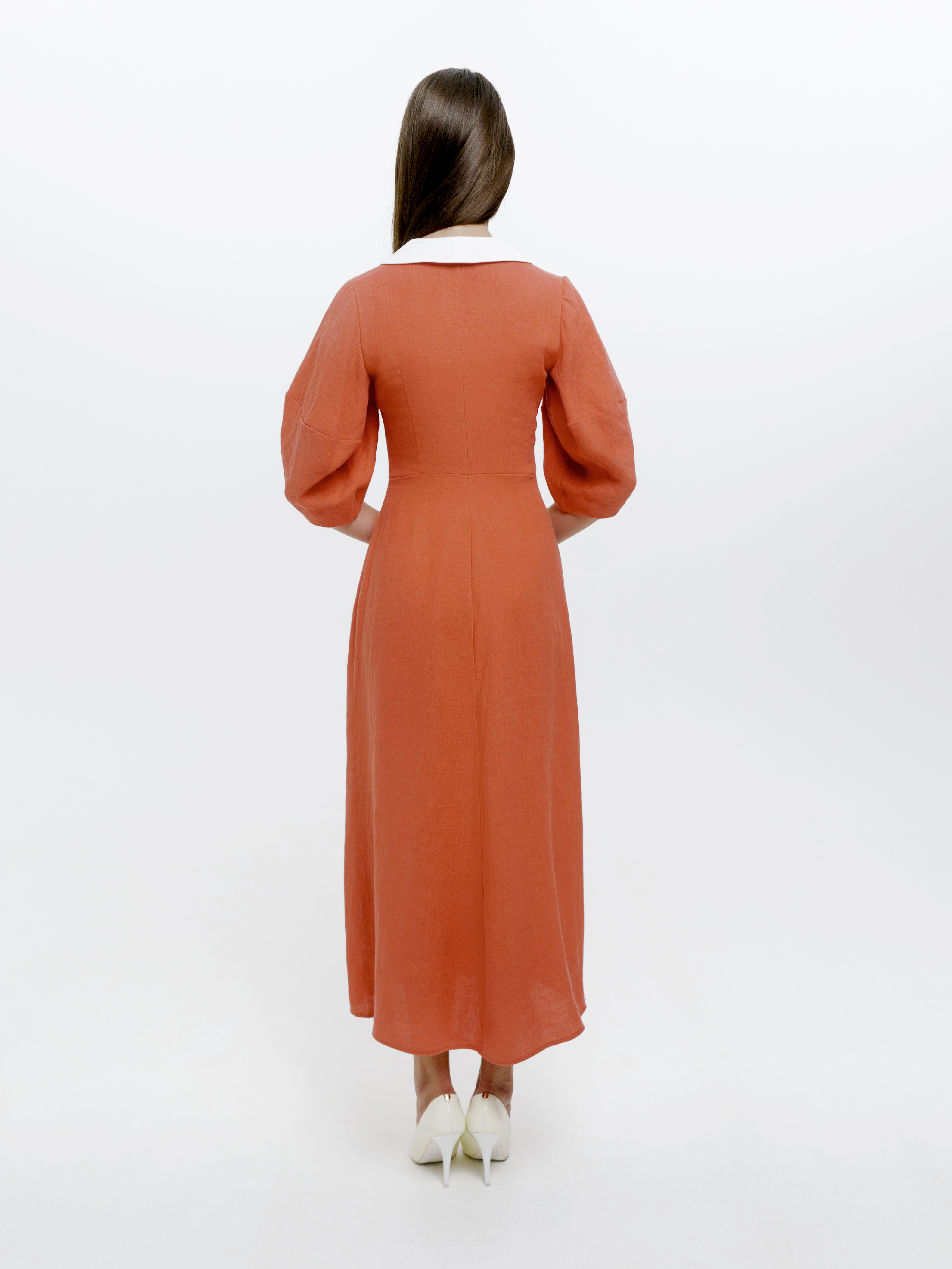 Утонченное платье с воротом сделает вас центром внимания на любом вечере. Мы сшили его из натурального льна с плотным переплетением тончайших нитей: материал струится и ниспадает, приятно охлаждая кожу. Завершите образ минималистичными босоножками или вьетнамками.