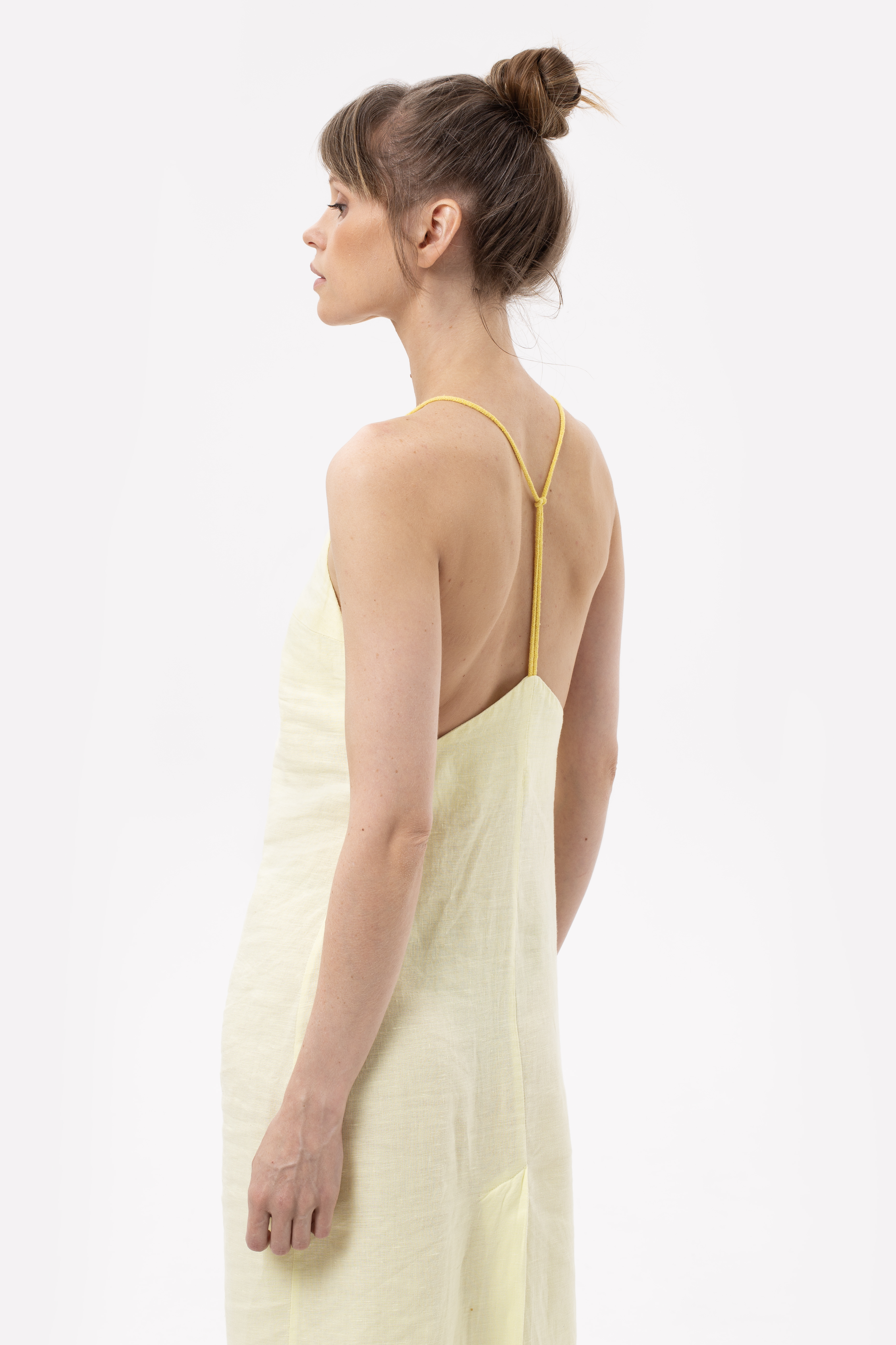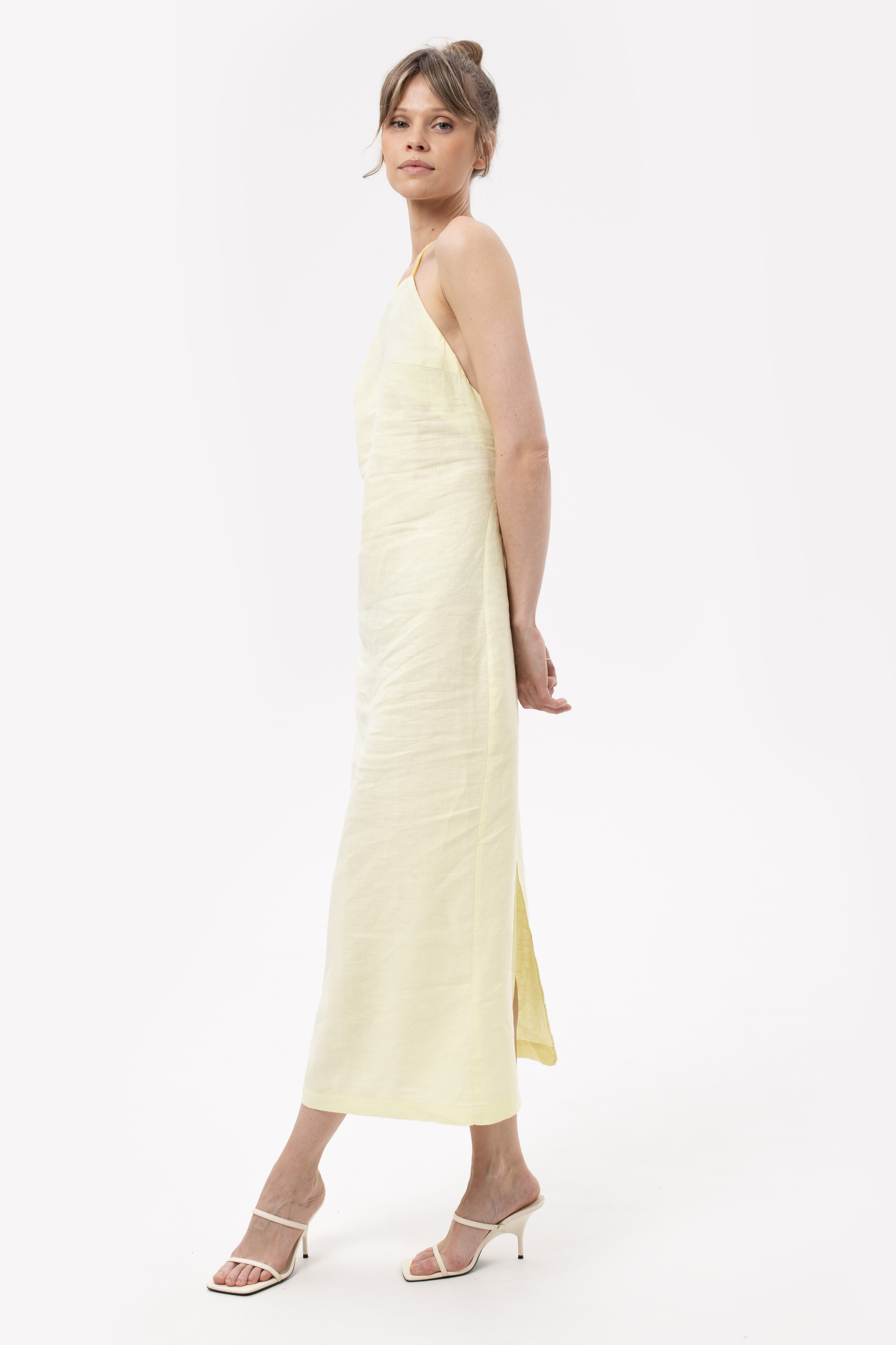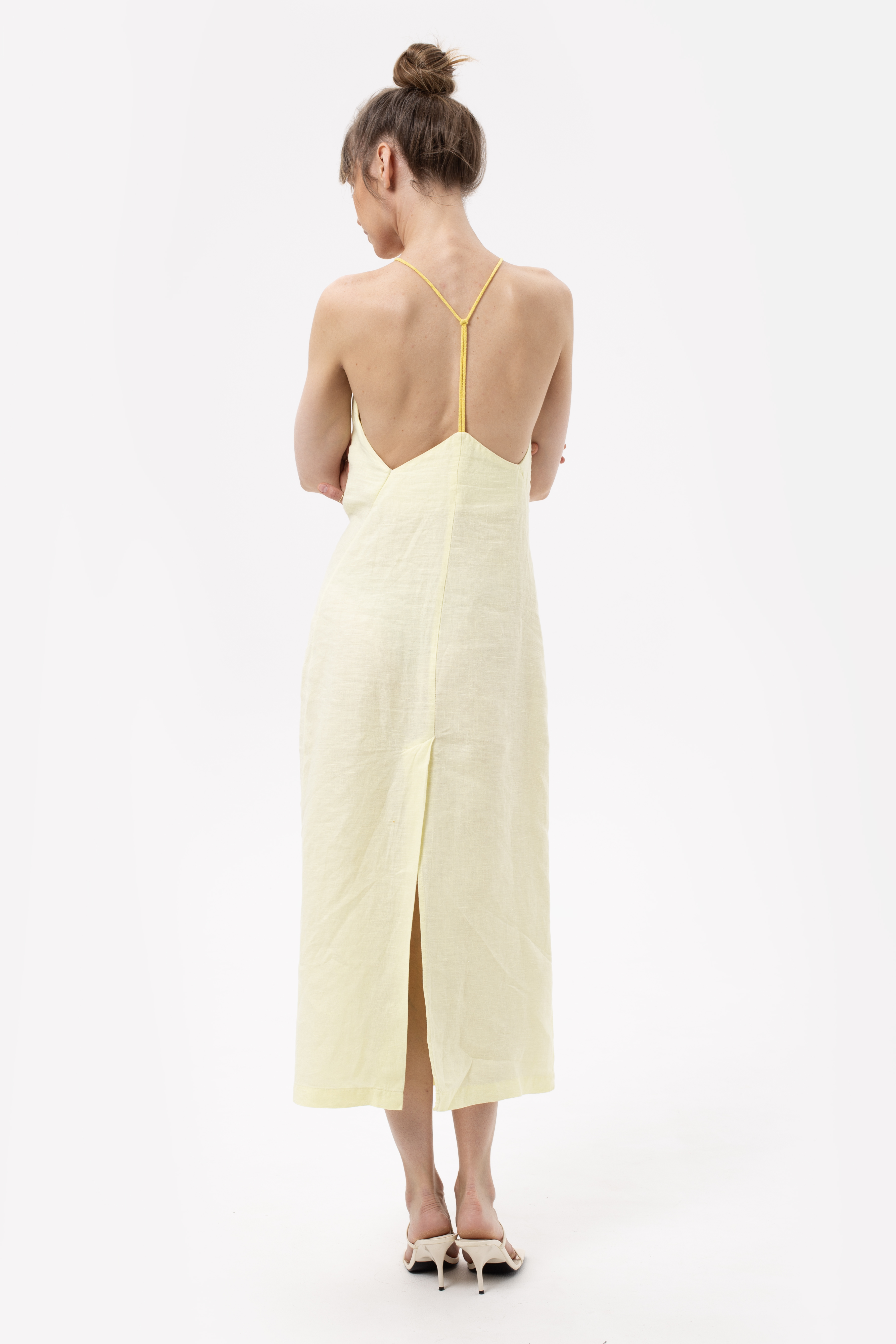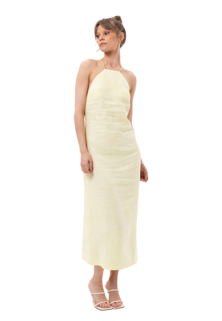 Льняное платье с открытой спиной, которое создано для того, чтобы Вы чувствовали себя "на отдыхе", путешествуете ли Вы на яхте или вышли в ближайший магазин за вкуснейшим французским багетом. Изящное платье из тонкого и плотного льна для расслабленных летних образов с сандалиями и вьетнамками. Застежка на молнии в боковом шве спинки. Шлица на юбке сзади.