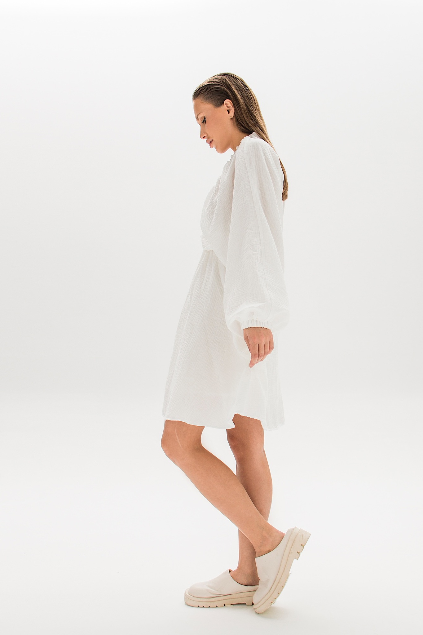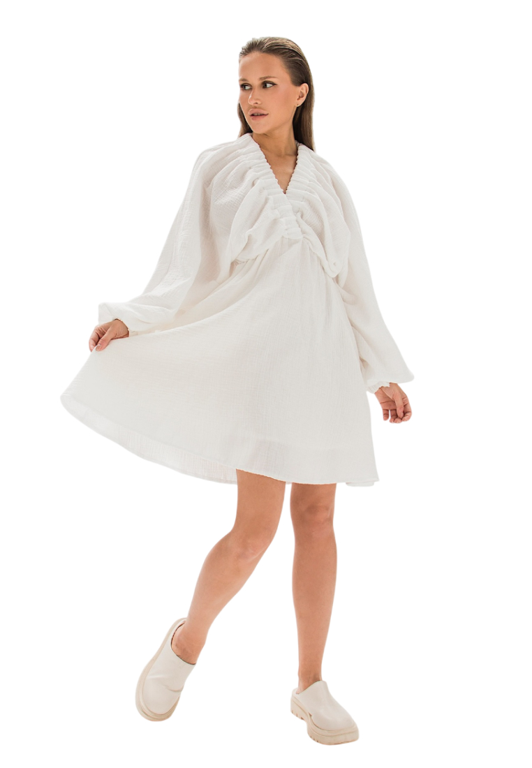 Платье из легкого хлопкового материала, свободного кроя, с резинкой на талии.