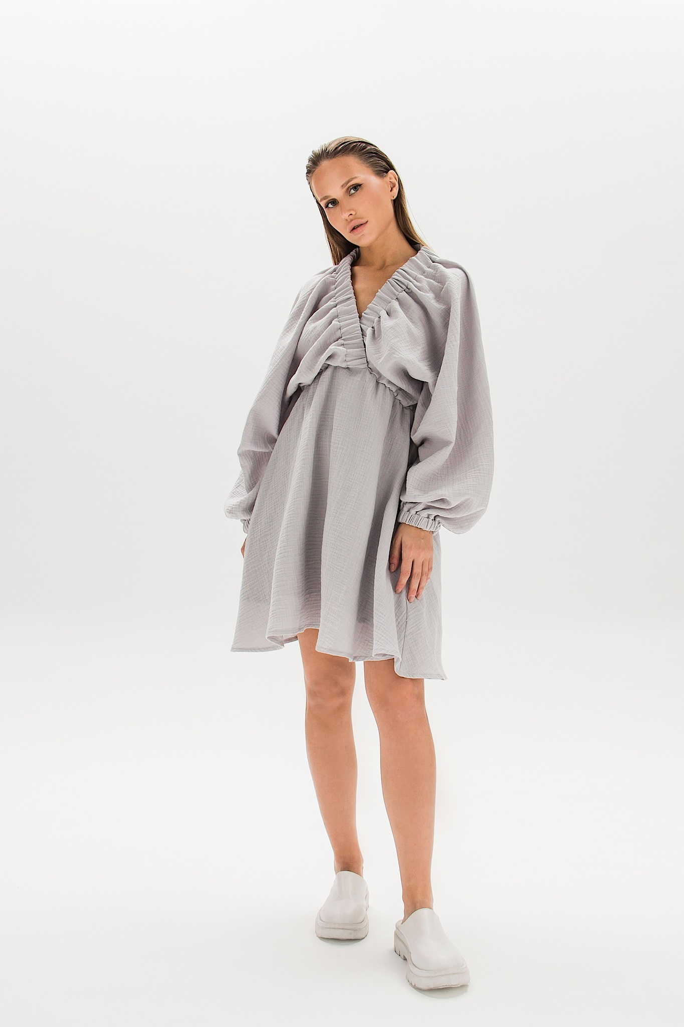 Платье из легкого хлопкового материала, свободного кроя, с резинкой на талии.