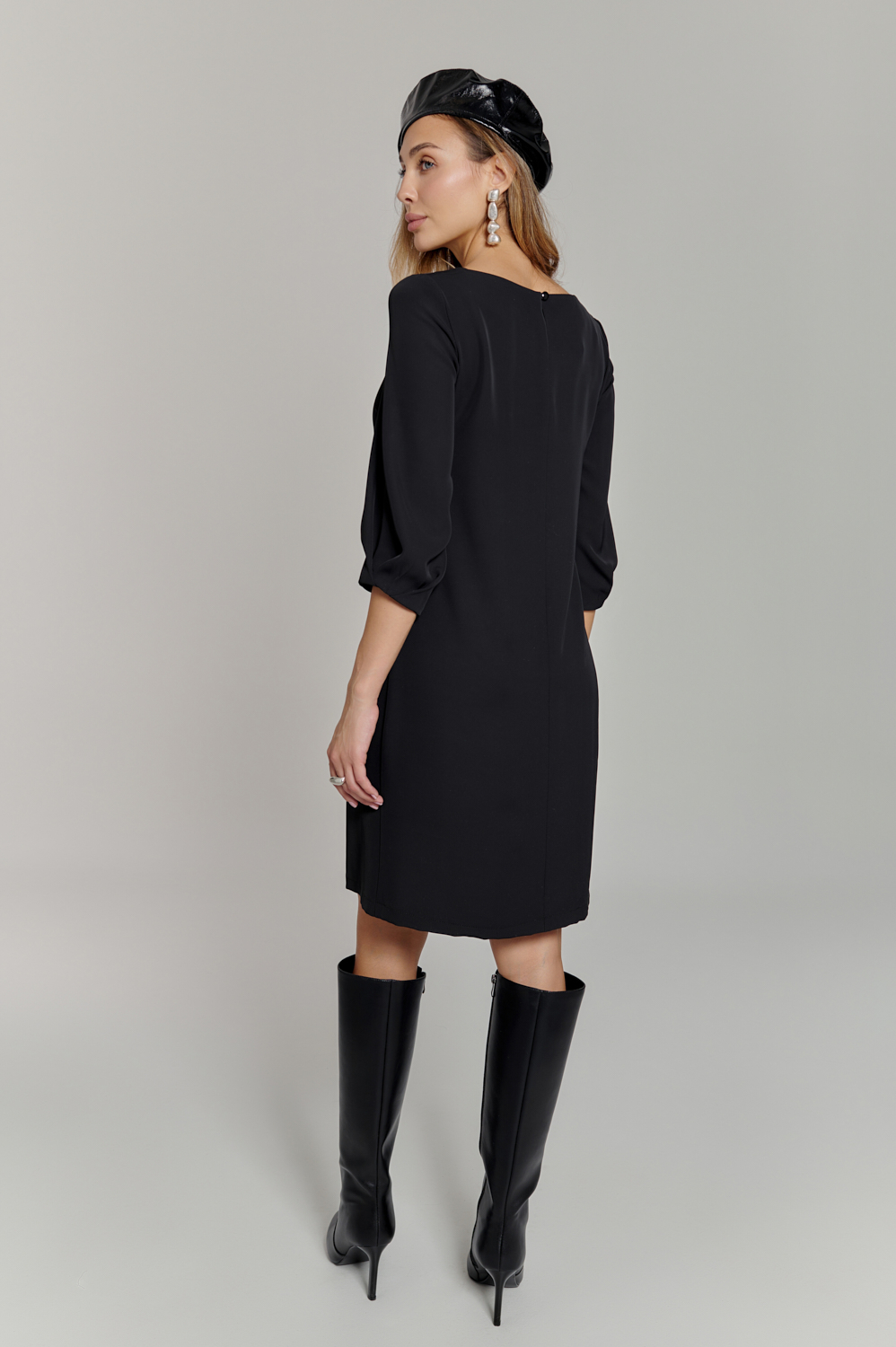 Короткое черное платье «Искра» с оригинальными рукавами. Строгий силуэт и выразительная деталь для яркого образа.