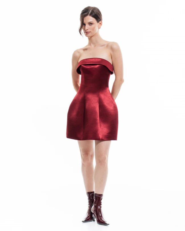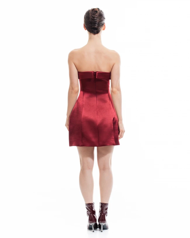 Коктейльное бордовое платье "Клэр" создано из атласной вискозы. Восхитительно держит форму, визуально стройнит за счет конструкции.Длина изделия 64 см.