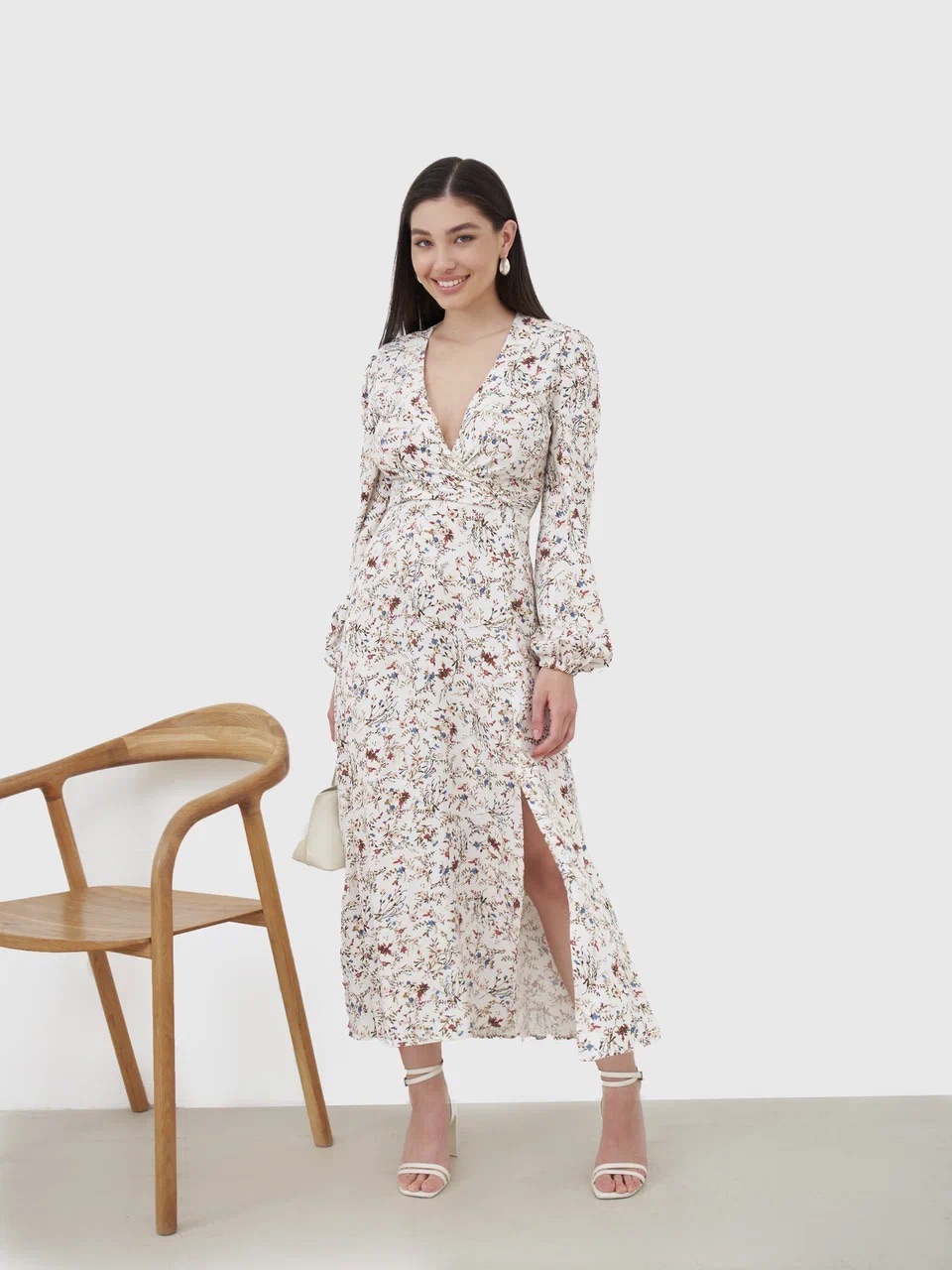 ЖЕНСТВЕННОЕ ЛЕТЯЩЕЕ ПЛАТЬЯ ИЗ ВИСКОЗЫ С ЦВЕТОЧНЫМ ПРИНТОМ БЕЛОГО ЦВЕТА
