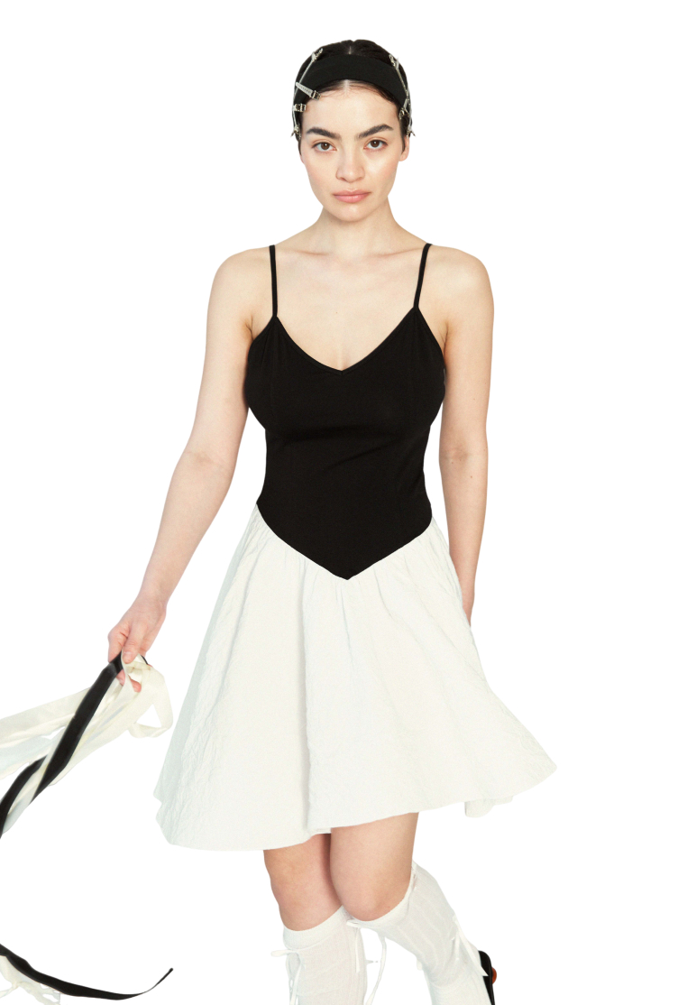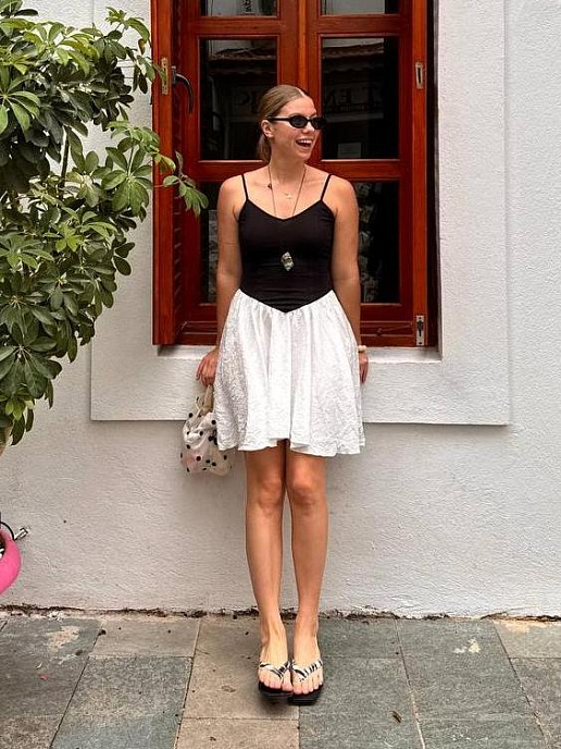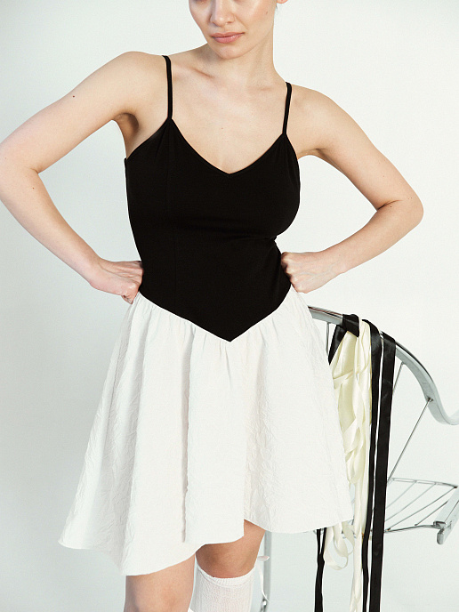 Невесомое комбинированное платье. Юбка платья из воздушного тенселя, а верх из нежной вискозы с декоративными отстрочками. Комбинируй с кроссовками или балетками.  У платья есть карманы. ЦВЕТ Чёрный Белый СОСТАВ И УХОД Верх: 100% вискоза Низ: 65% тенсель, 35% нейлон...