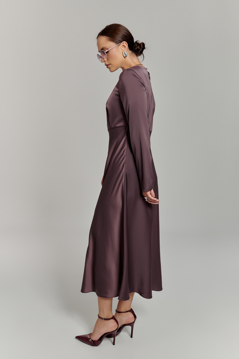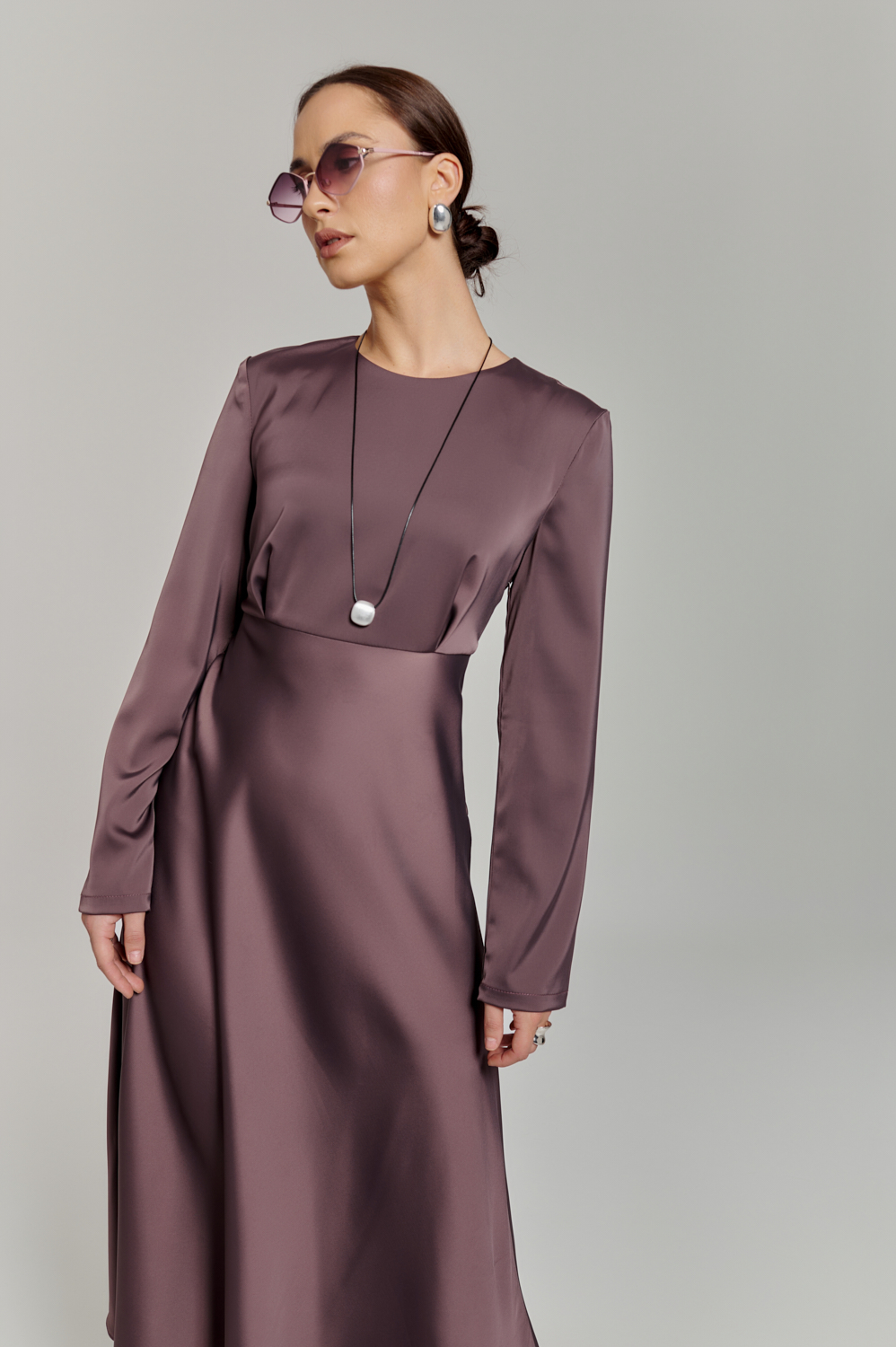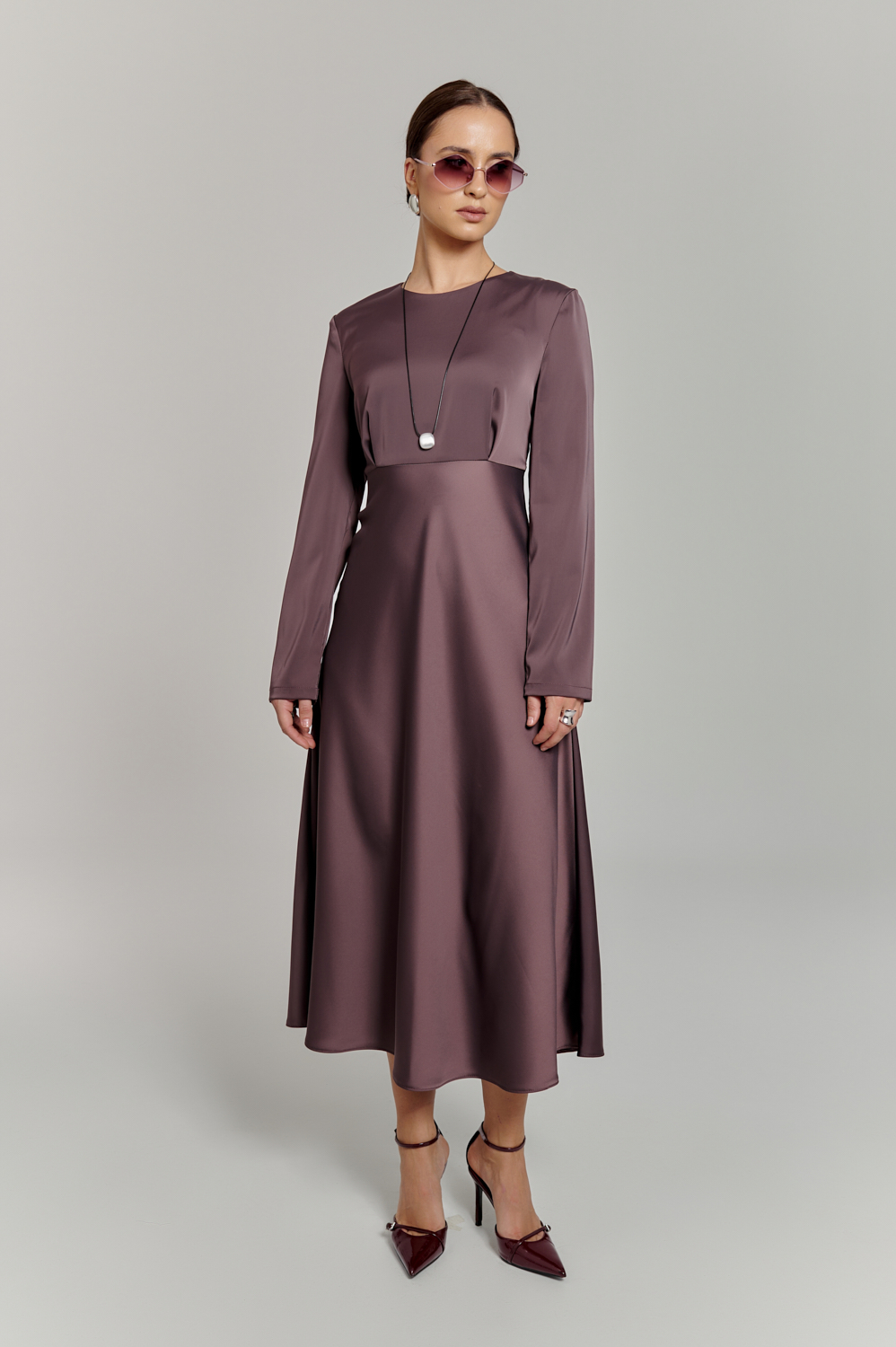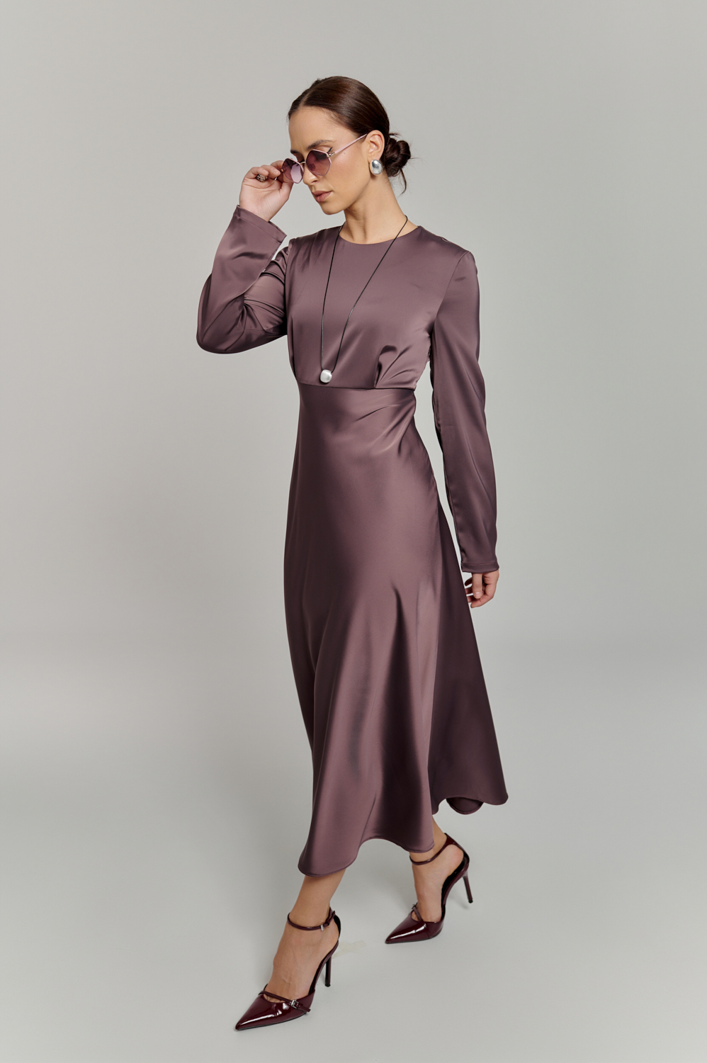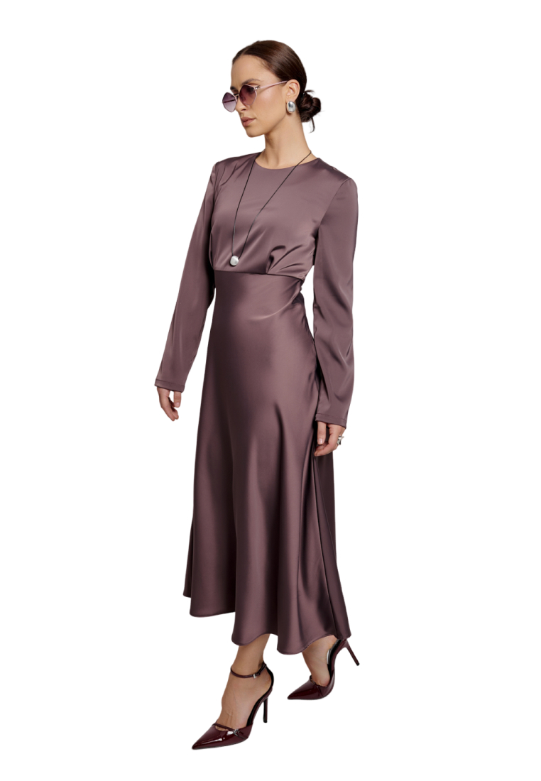 Универсальное платье длины миди. Модель выполнена в красивой струящейся ткани. Отличная посадка по фигуре за счет завышенной талии. Модель смотрится очень элегантно, женственно, но при этом строго и сдержанно.