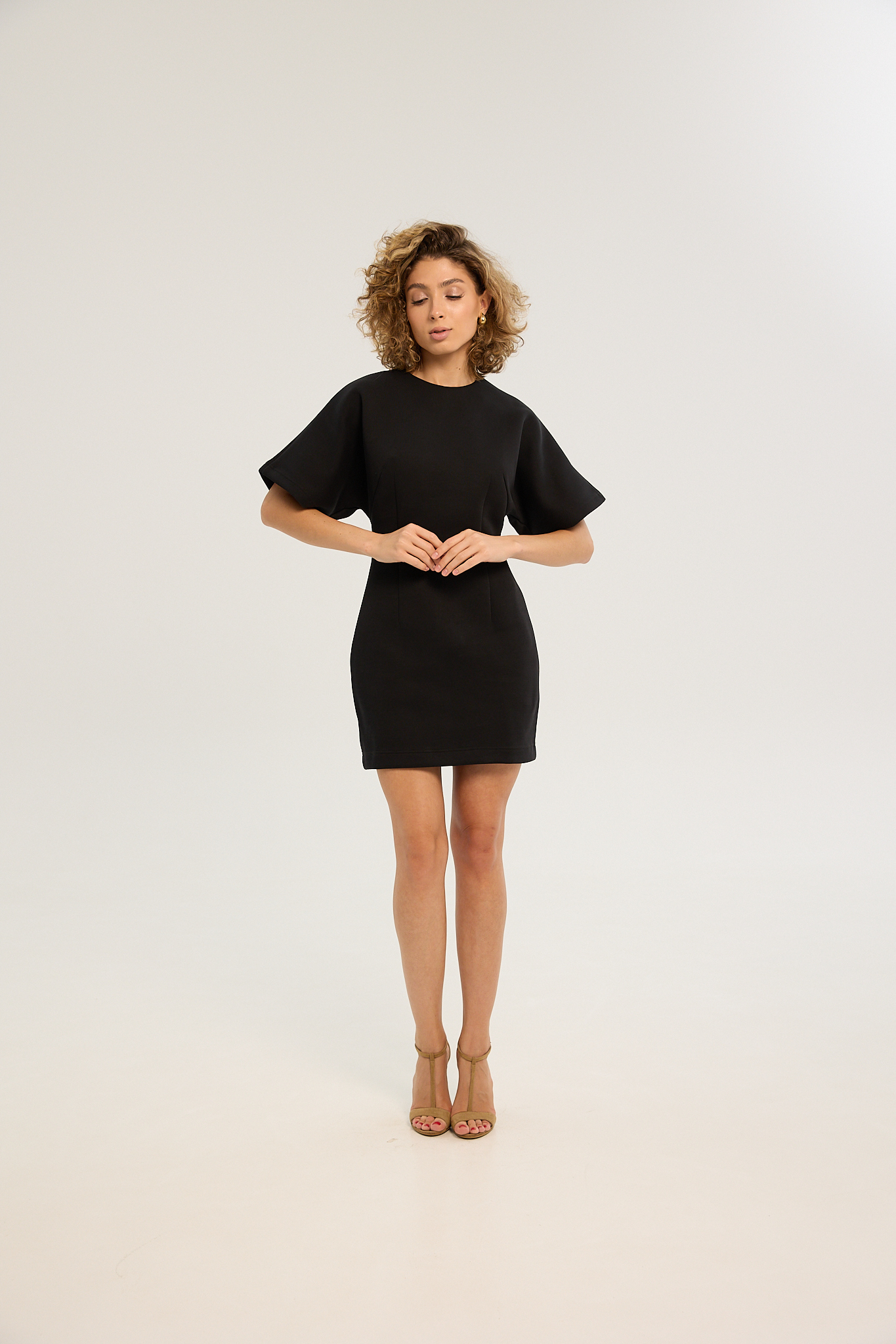 Силуэтное платье, в котором каждая деталь пропитана женственностью. Выраженная талия и очерченная линия бедер формируют канонический силуэт песочных часов, а короткий рукав и длина мини подчеркивают женское изящество.