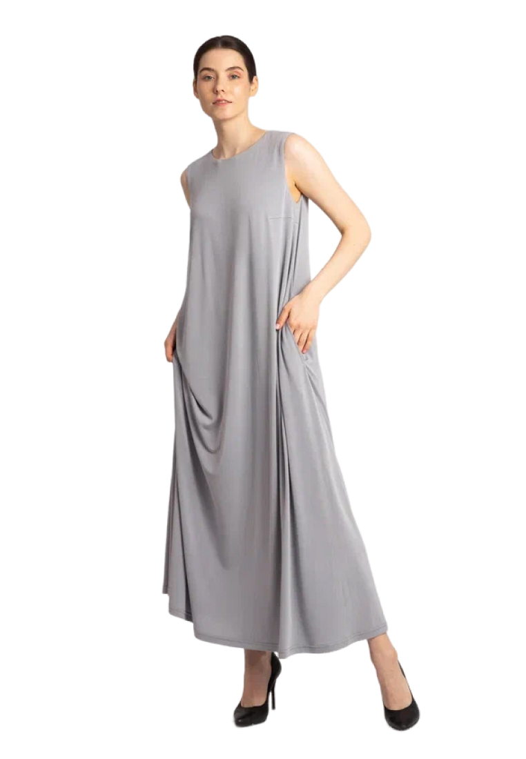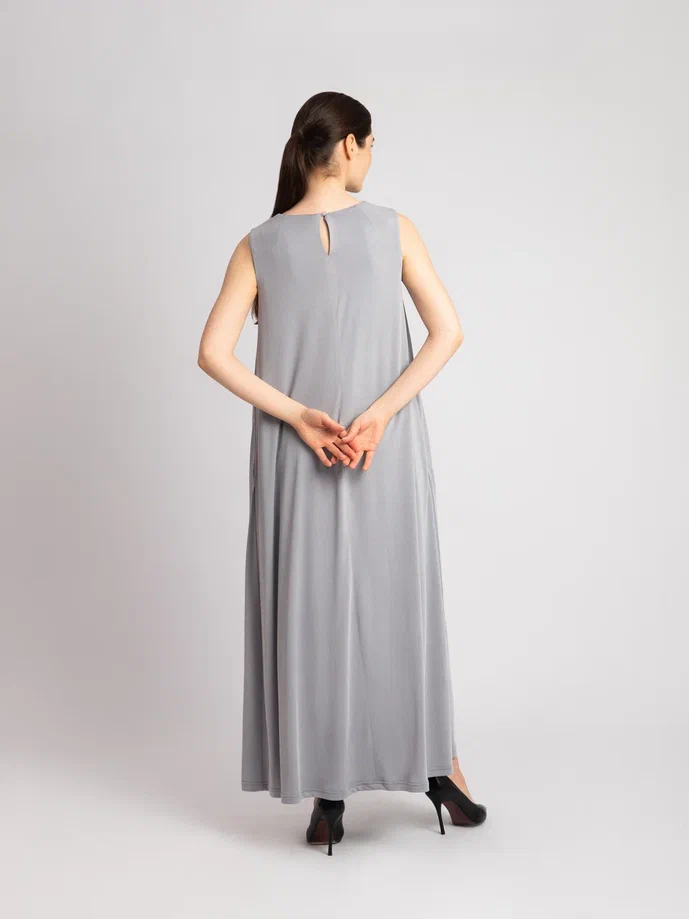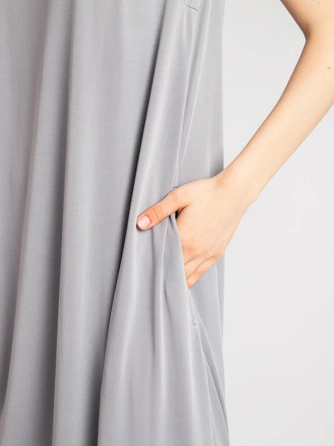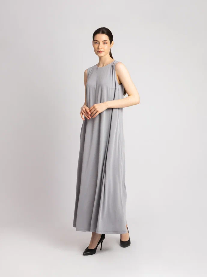 Платье из мягкого модала с добавлением хлопка (70%) - о чистоте линий, легкости и тактильном комфорте. Свободный А-силуэт с расклёшенной формой движется за телом, не сковывая и мягко обтекая фигуру. Двойной слой ткани - и основа , и подкладка выполнены из одного материала - делает силуэт более плотным, но сохраняет ощущение невесомости. Ткань приятно охлаждает кожу, остается прохладной на ощупь и подходит для жаркой погоды. Скрытые боковые карманы вписаны в линию шва и не нарушают чистоту кроя. Форма, которую не нужно подчеркивать. Комфорт, который не требует слов.