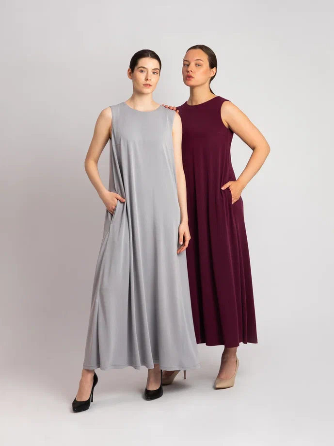 Платье из мягкого модала с добавлением хлопка (70%) - о чистоте линий, легкости и тактильном комфорте. Свободный А-силуэт с расклёшенной формой движется за телом, не сковывая и мягко обтекая фигуру. Двойной слой ткани - и основа , и подкладка выполнены из одного материала - делает силуэт более плотным, но сохраняет ощущение невесомости. Ткань приятно охлаждает кожу, остается прохладной на ощупь и подходит для жаркой погоды. Скрытые боковые карманы вписаны в линию шва и не нарушают чистоту кроя. Форма, которую не нужно подчеркивать. Комфорт, который не требует слов.
