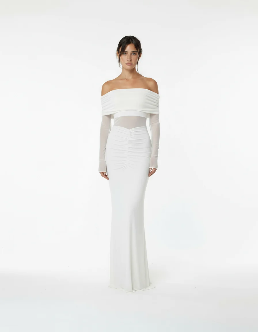 Платье макси с сеткой и открытыми плечами — изысканная модель, в которой сочетаются романтичность и современный стиль. Воздушная сетка создаёт лёгкий акцент на теле, а открытые плечи придают образу женственность и утончённость. Идеальный вариант для вечернего выхода, торжества или особого случая.