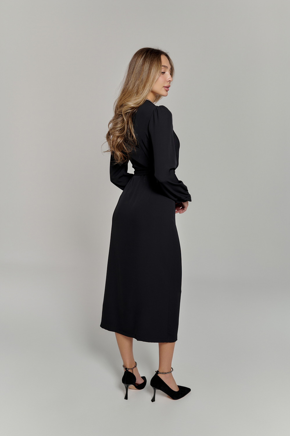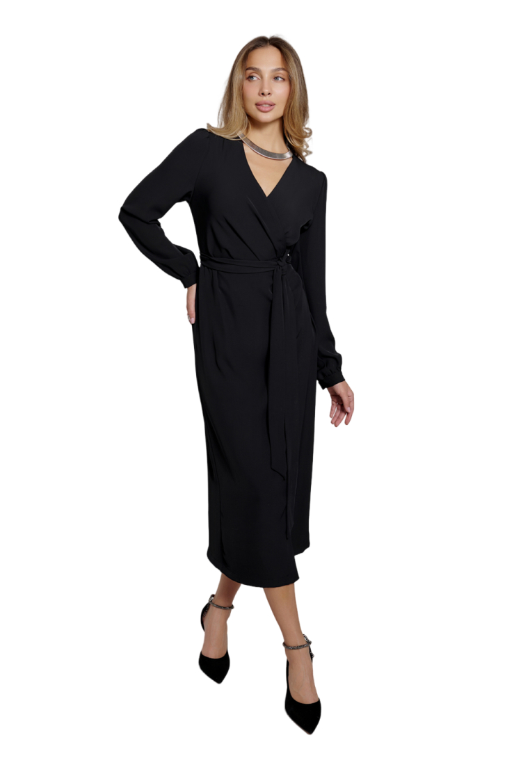 Платье на запах, длины миди. Платье изящно подчеркнёт Вашу талию, V-образная горловина подчёркивает шею, слегка удлиняет её. Оно подойдёт для самых разных фигур, невероятно комфортное и нарядное.