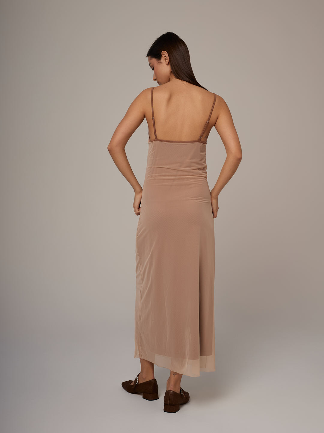 Это платье - готовое решение для тех, кто ценит и комфорт, и выразительный образ. Соблазнительное платье-комбинация в стиле «секон скин» для создания повседневных образов с ноткой ретро-гламура.