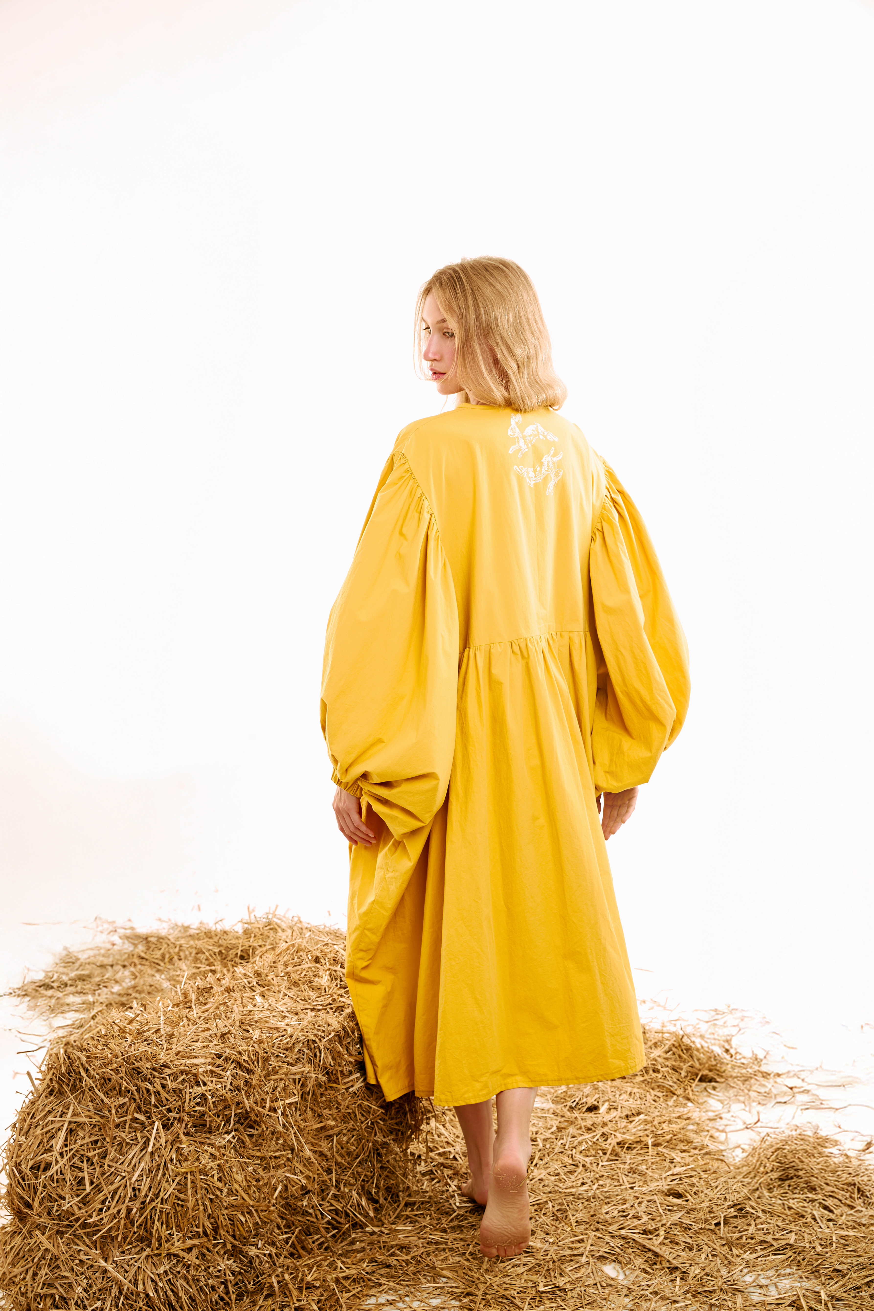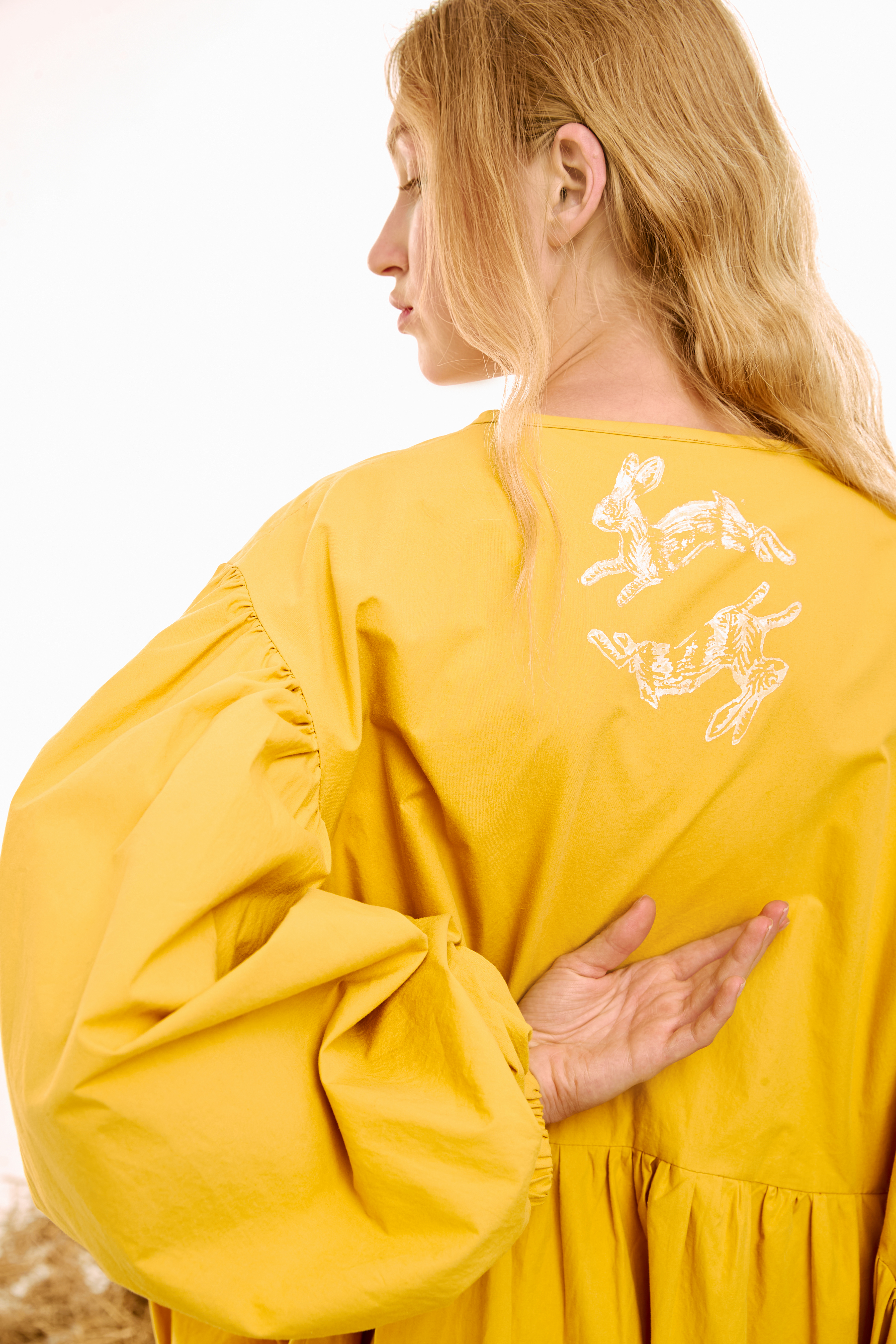 100% натуральный итальянский хлопок. Объемный рукав на манжете с резинкой. Авторский принт на спинки, вышивка ручной работы и натуральный агат на груди.