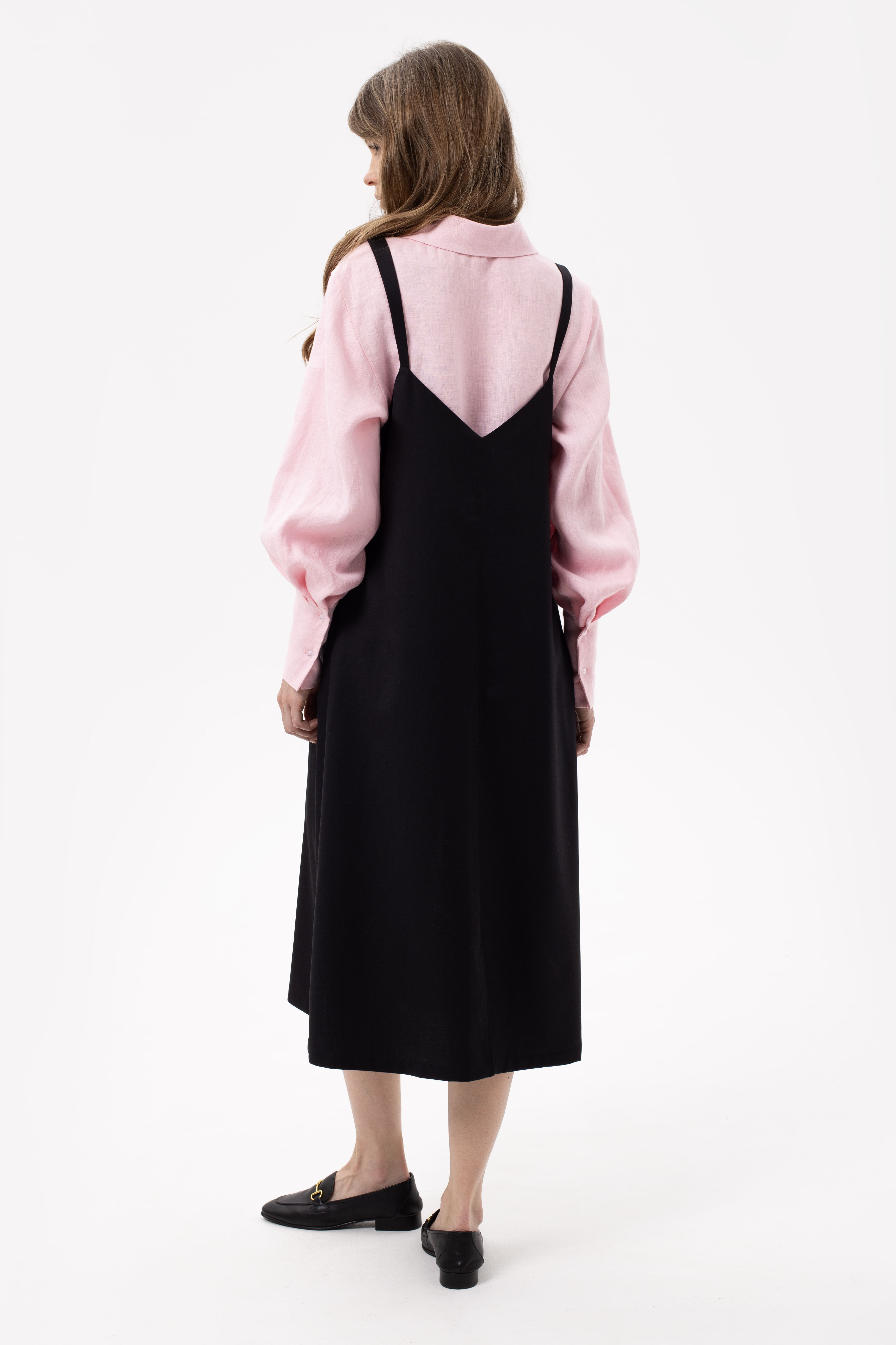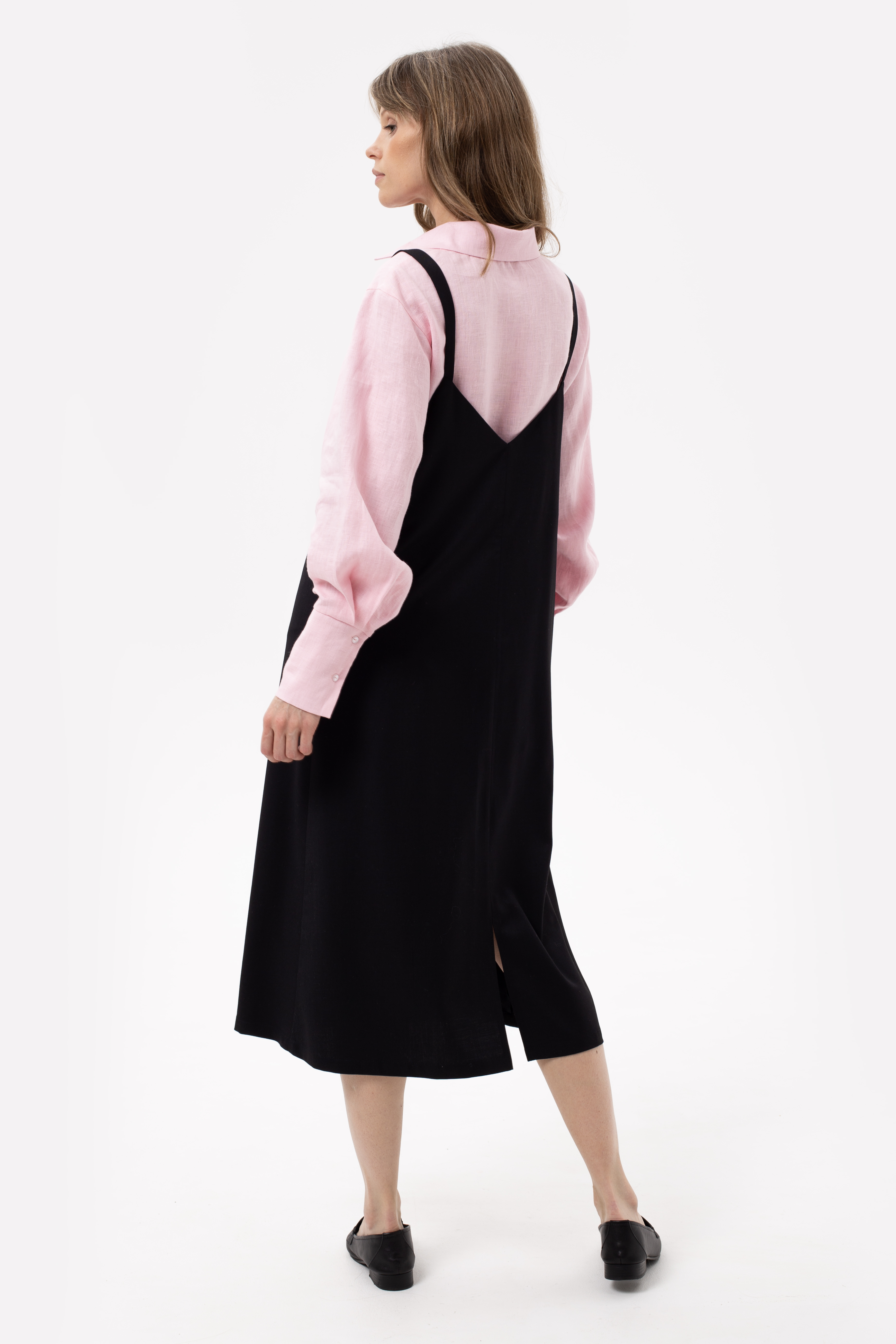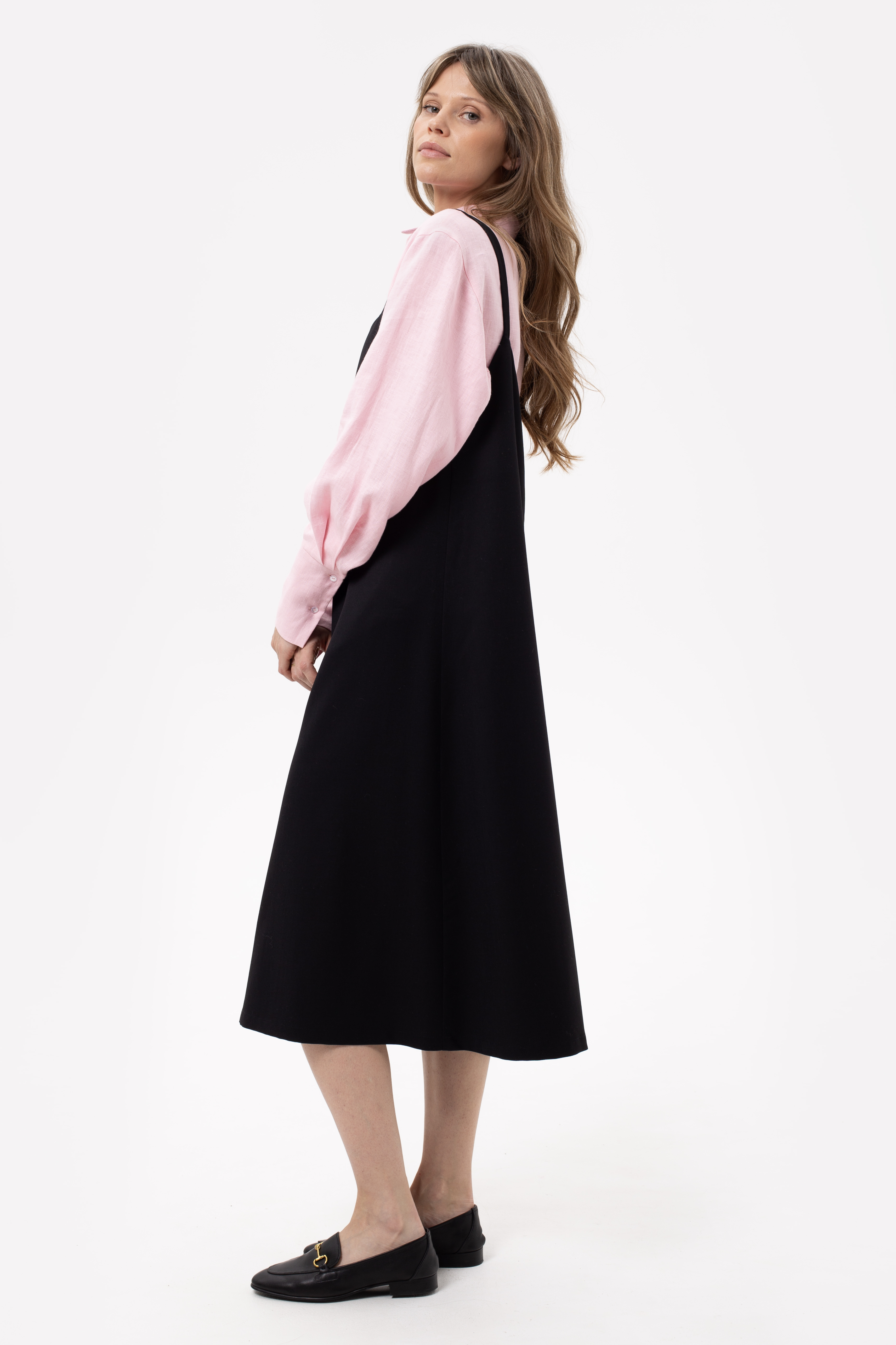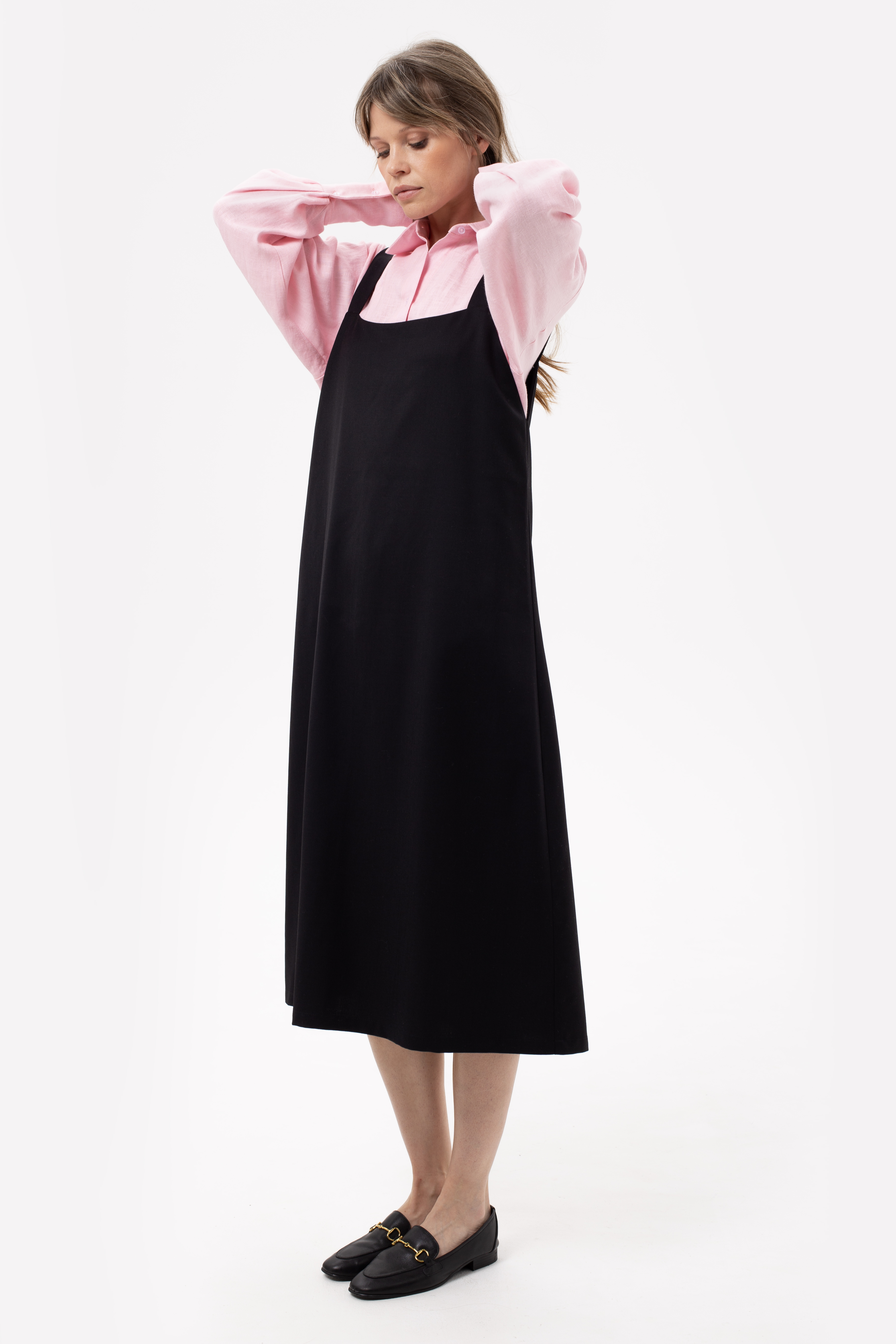 Предлагаем пересмотреть свой осенне-зимний гардероб и интегрировать в него сарафан, который идеально впишется и в офисный, и в праздничный образ. Модель выполнена из тонкой костюмной шерсти, теплого и износоустойчивого материала. Свободный крой и идеально выверенные линии формируют безупречный силуэт. Сочетание сарафана с рубашками LYOS - оригинальная дизайнерская задумка, разбавляющая строгий образ изящными линиями. Носить эту модель предлагаем поверх блузы или рубашки — идеально для работы или бизнес-встречи.