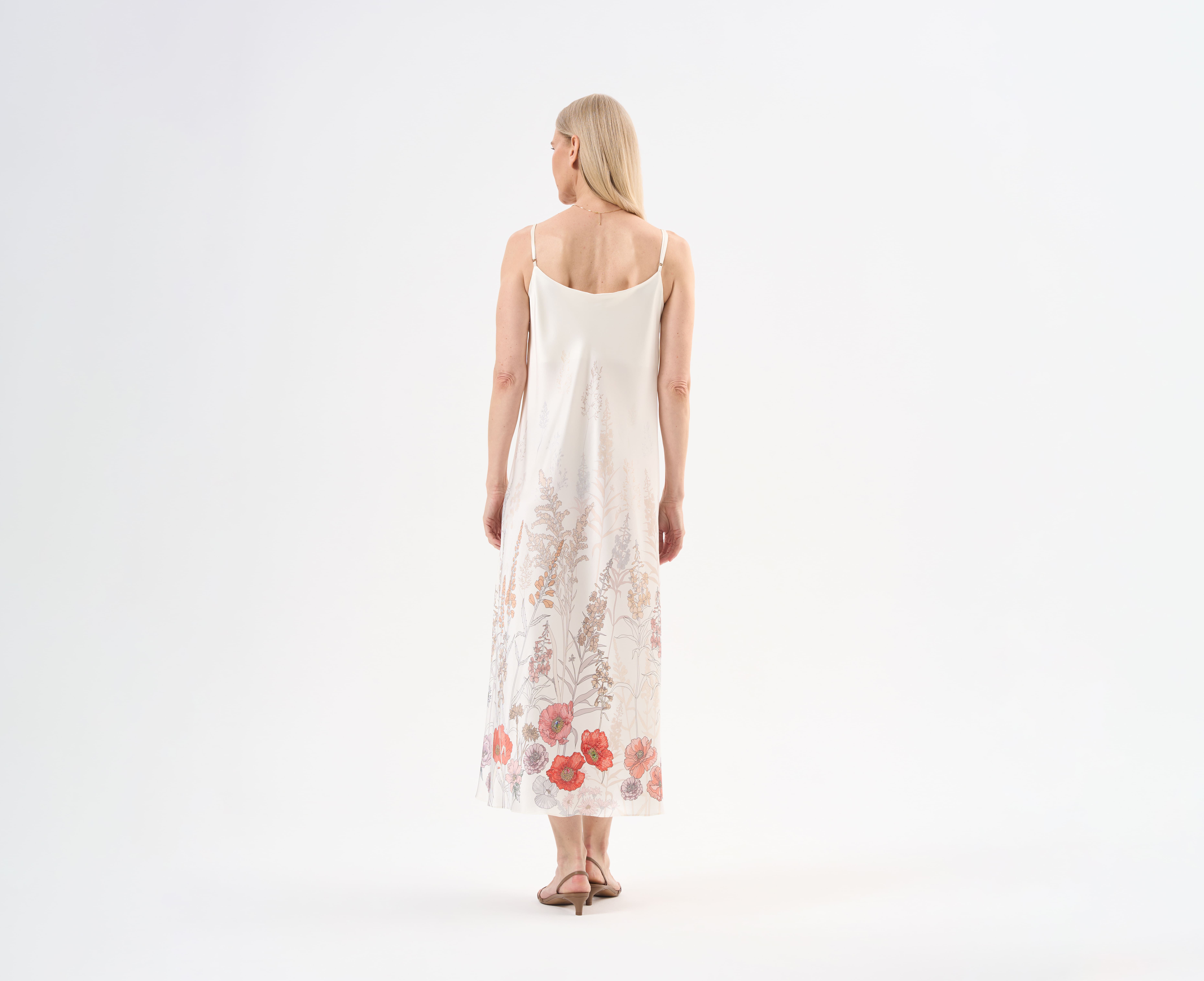 Женственное платье А-силуэта на регулируемых бретелях. Свободный силуэт формирует естественные складки, а тонкий благородный блеск делает платье особенно актуальным в ваших вечерних образах. Рекомендации по уходу:  стирать при температуре не более 40°C барабанная сушка...