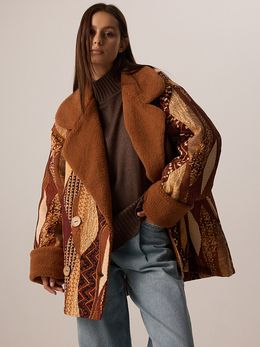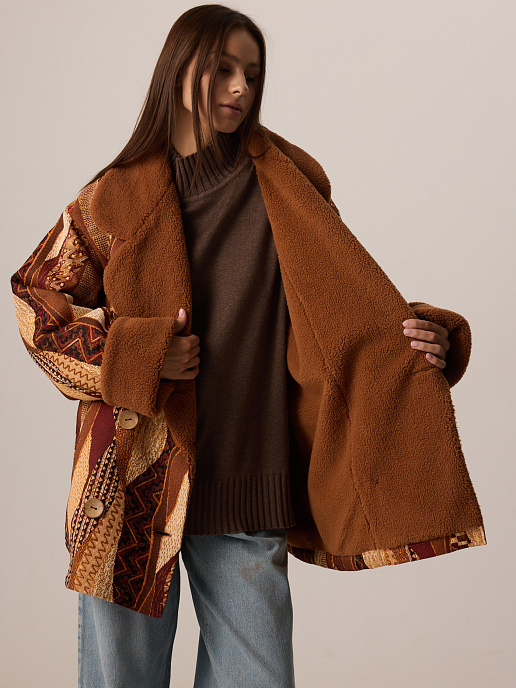 Удобство и комфорт: свободный крой обеспечивает легкость движений, а длина до середины бедра надежно защищает от прохлады. Полупальто не сковывает движения, делая его идеальным для активного дня.