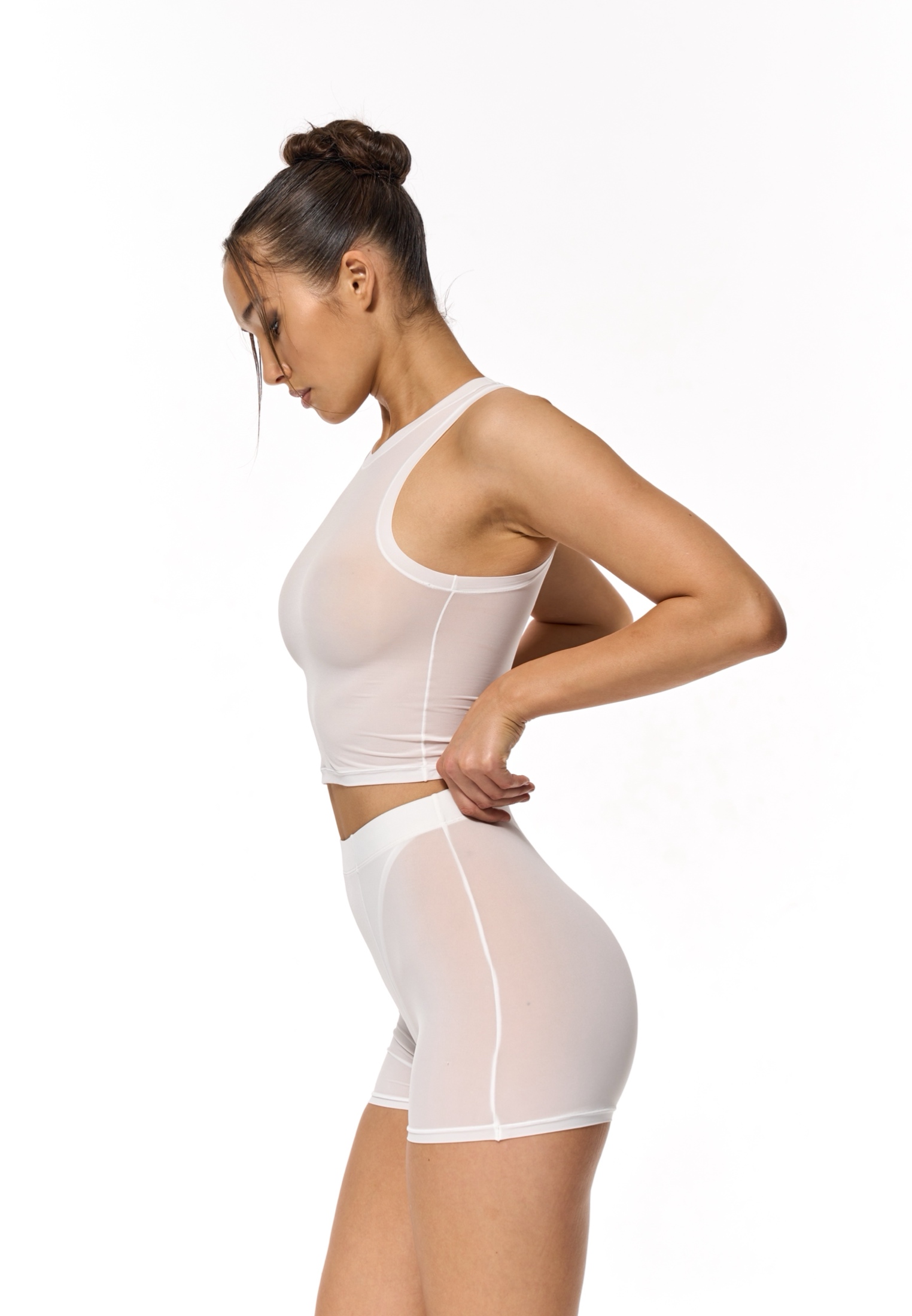 Легкие и стильные полупрозрачные шорты — идеальный выбор для летнего гардероба. Их комфортный крой и воздушная текстура обеспечивают свободу движения и отличный обдув в жару. Выбирайте к ним топ VOODOO WHITE, рубашку VOODOO WHITE или удлиненную рубашку VOODOO WHITE , чтобы составить...