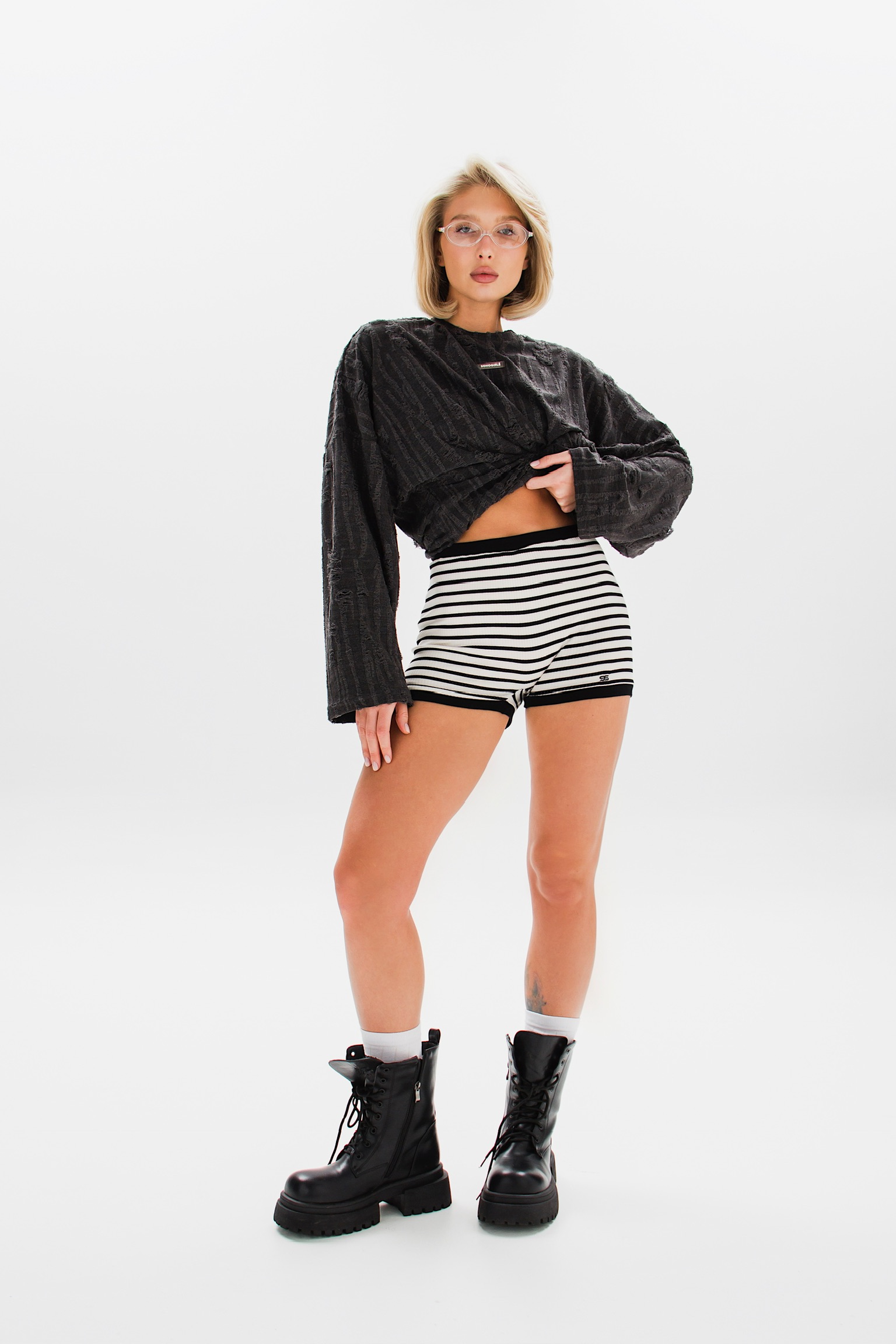 Шорты легко комбинируются с топами MINI LINER и LINER, формируя расслабленные, но собранные образы.