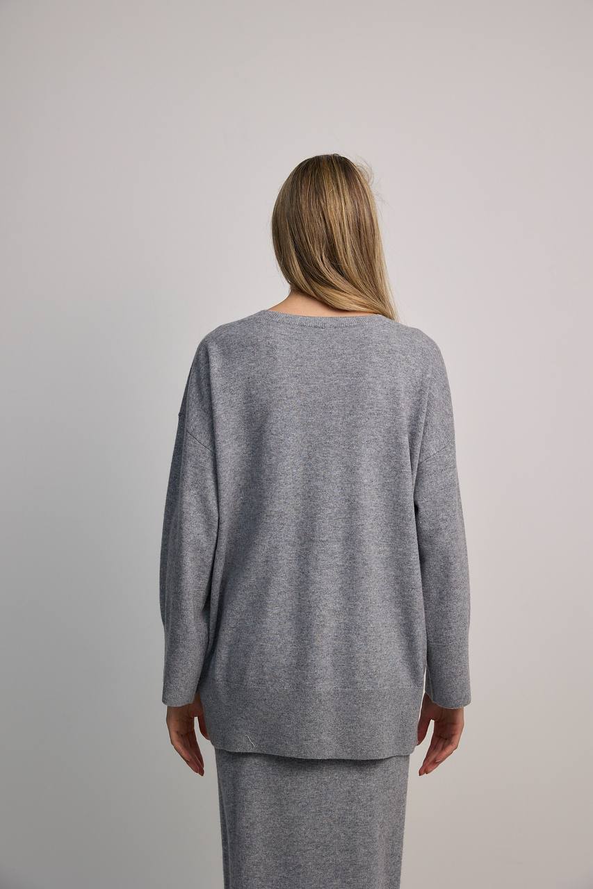 Джемпер с V-образным вырезом горловины, со спущенной линией плеча и английской резинкой по нижнему краю. Изделия изготавливаются на нашей фабрике в России. Процесс вязки происходит на японской плосковязальной машине Shima Seiki. Пряжа проходит обработку специальным гипоаллергенным воском, чтобы...