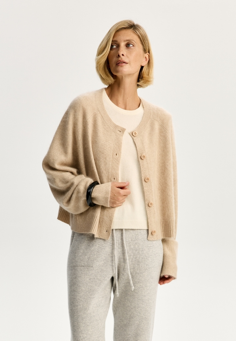 Нежнейший пушистый кардиган.  Связан из 100% органического кашемира, застёгивается на пуговицы.