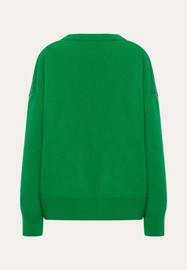 Джемпер с V-образным вырезом горловины, со спущенной линией плеча и английской резинкой по нижнему краю. Изделия изготавливаются на нашей фабрике в России. Процесс вязки происходит на японской плосковязальной машине Shima Seiki. Пряжа проходит обработку специальным гипоаллергенным воском, чтобы...
