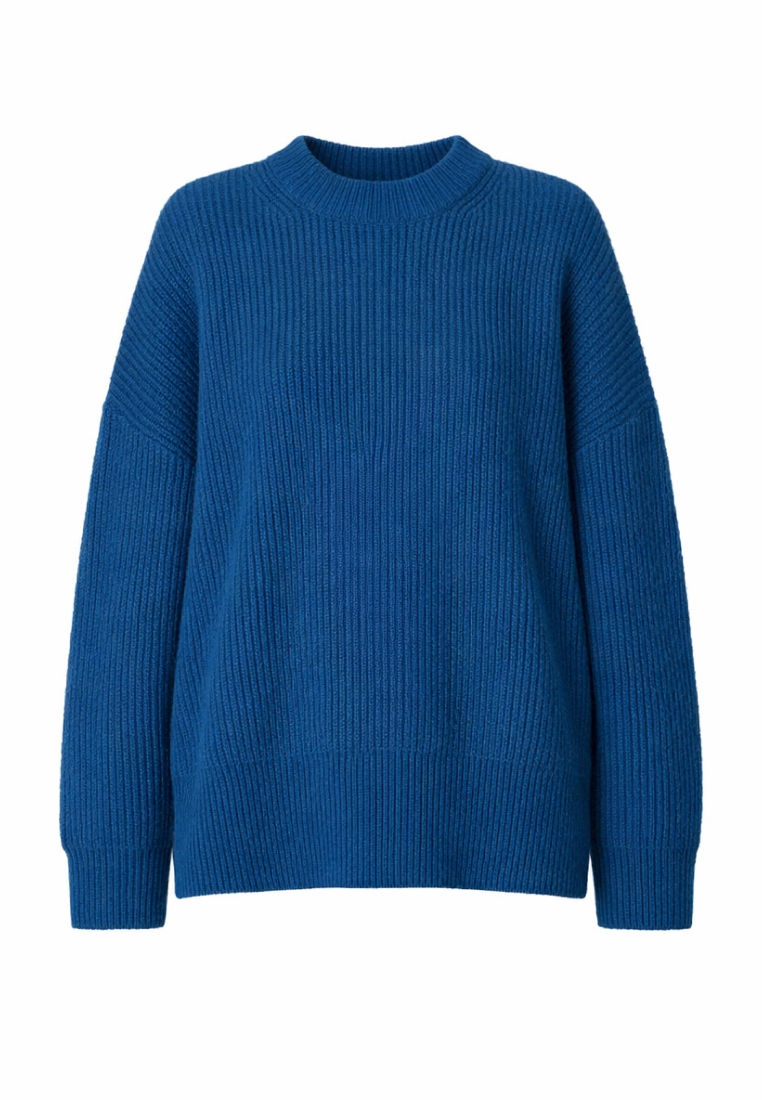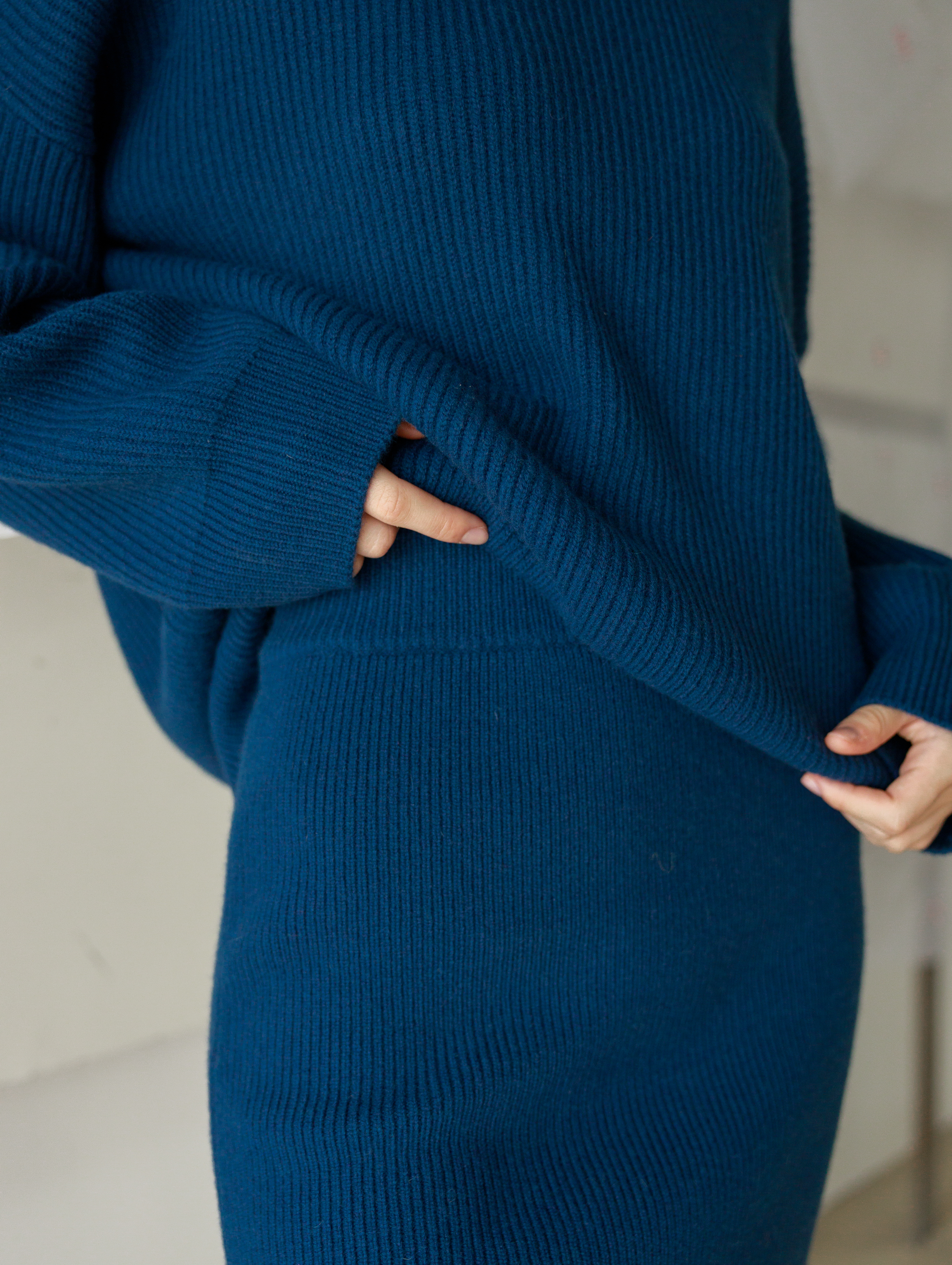 Свитер трикотажный свободного силуэта выполнено из 100% шерсти, что обеспечивает тепло и комфорт. Объемный крой создает расслабленный современный образ. Свитер является частью комплекта с соответствующей юбкой, что позволяет создать цельный гармоничный образ