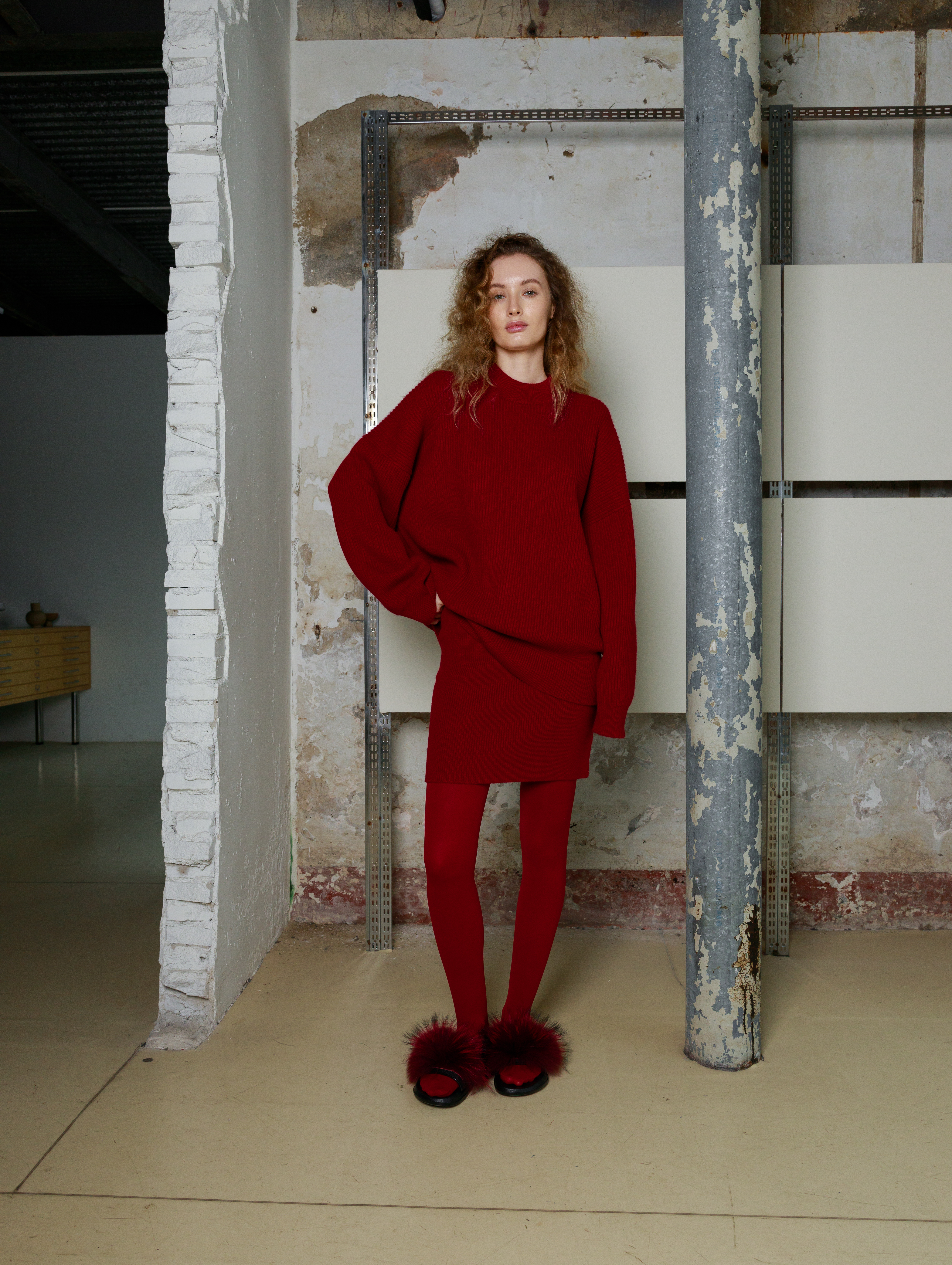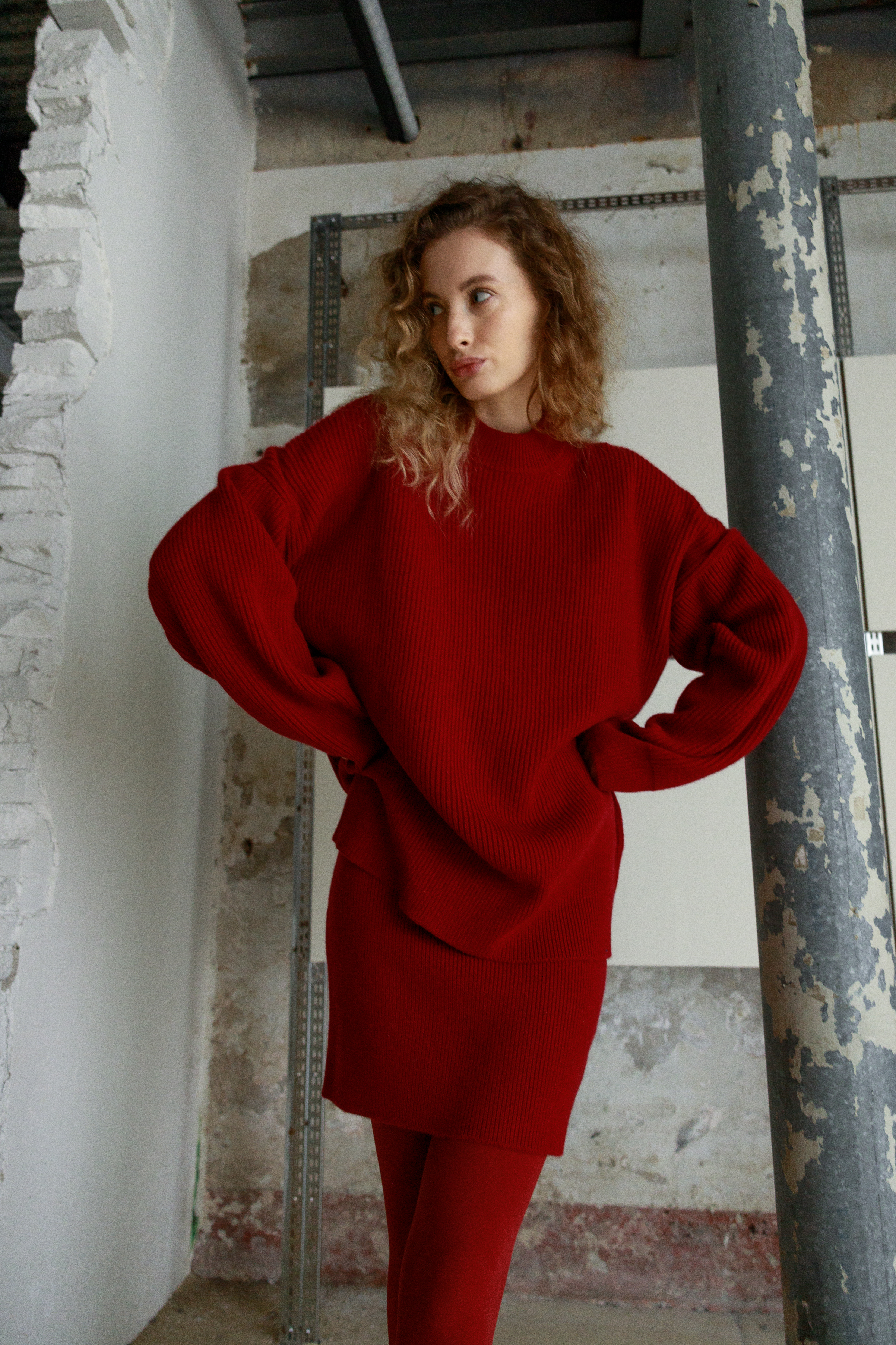 Свитер трикотажный свободного силуэта выполнен из 100% шерсти, что обеспечивает тепло и комфорт. Объемный крой создает расслабленный современный образ. Свитер является частью комплекта с соответствующей юбкой, что позволяет создать цельный гармоничный образ
