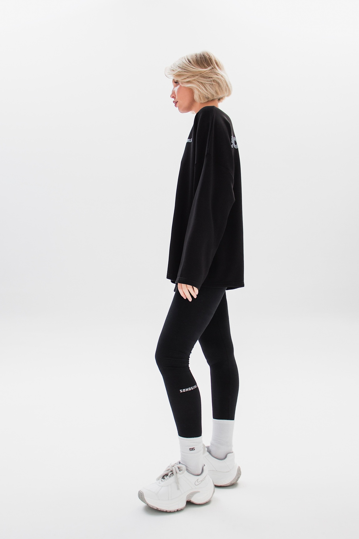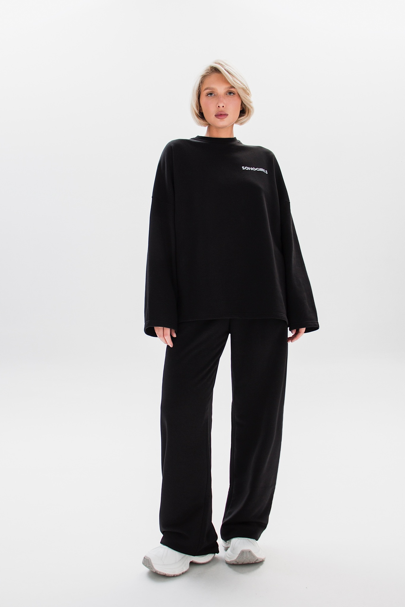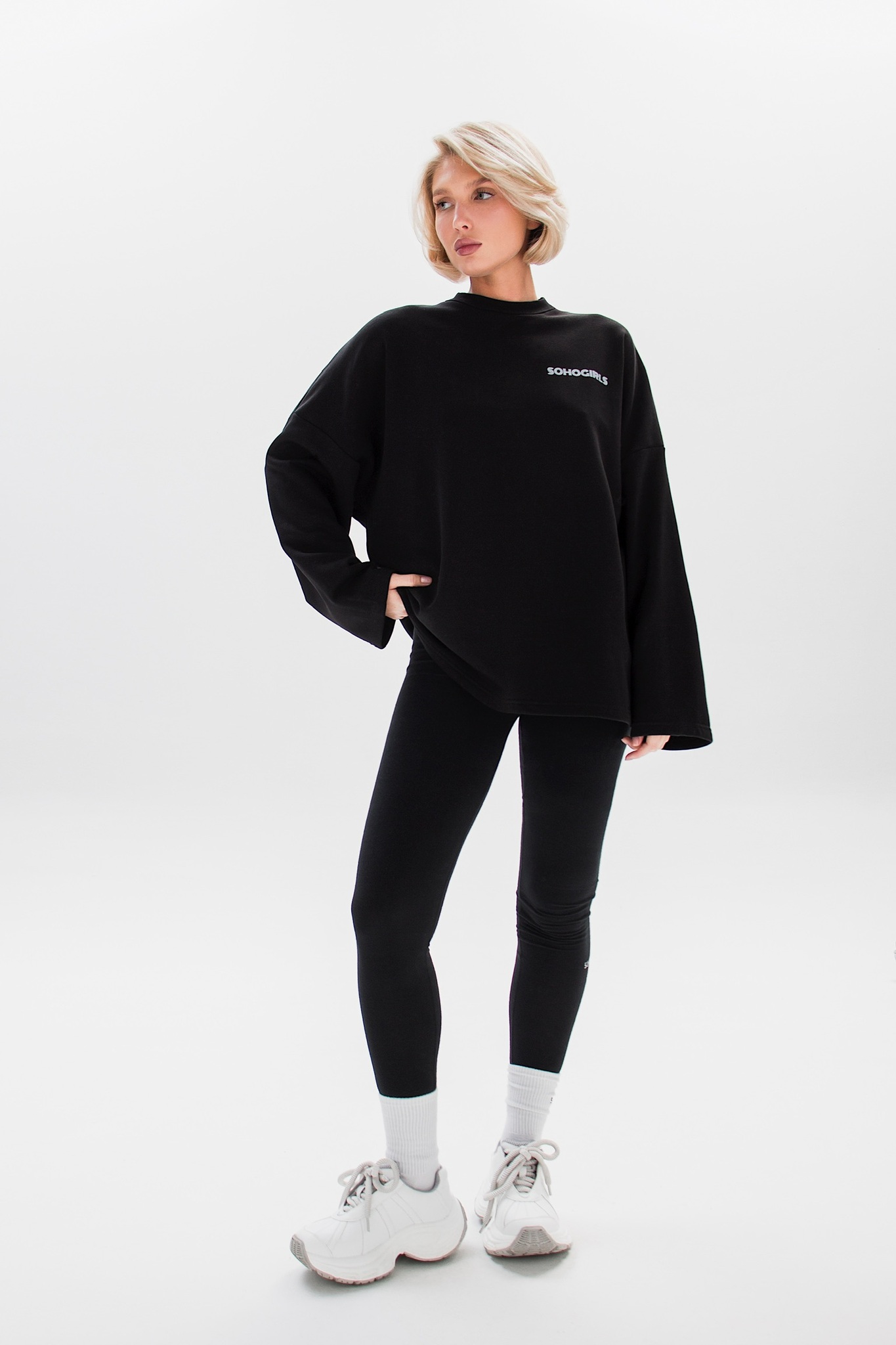 Свитшот свободного кроя с принтами на груди и спине - базовый элемент гардероба с акцентом на стиль и индивидуальность.