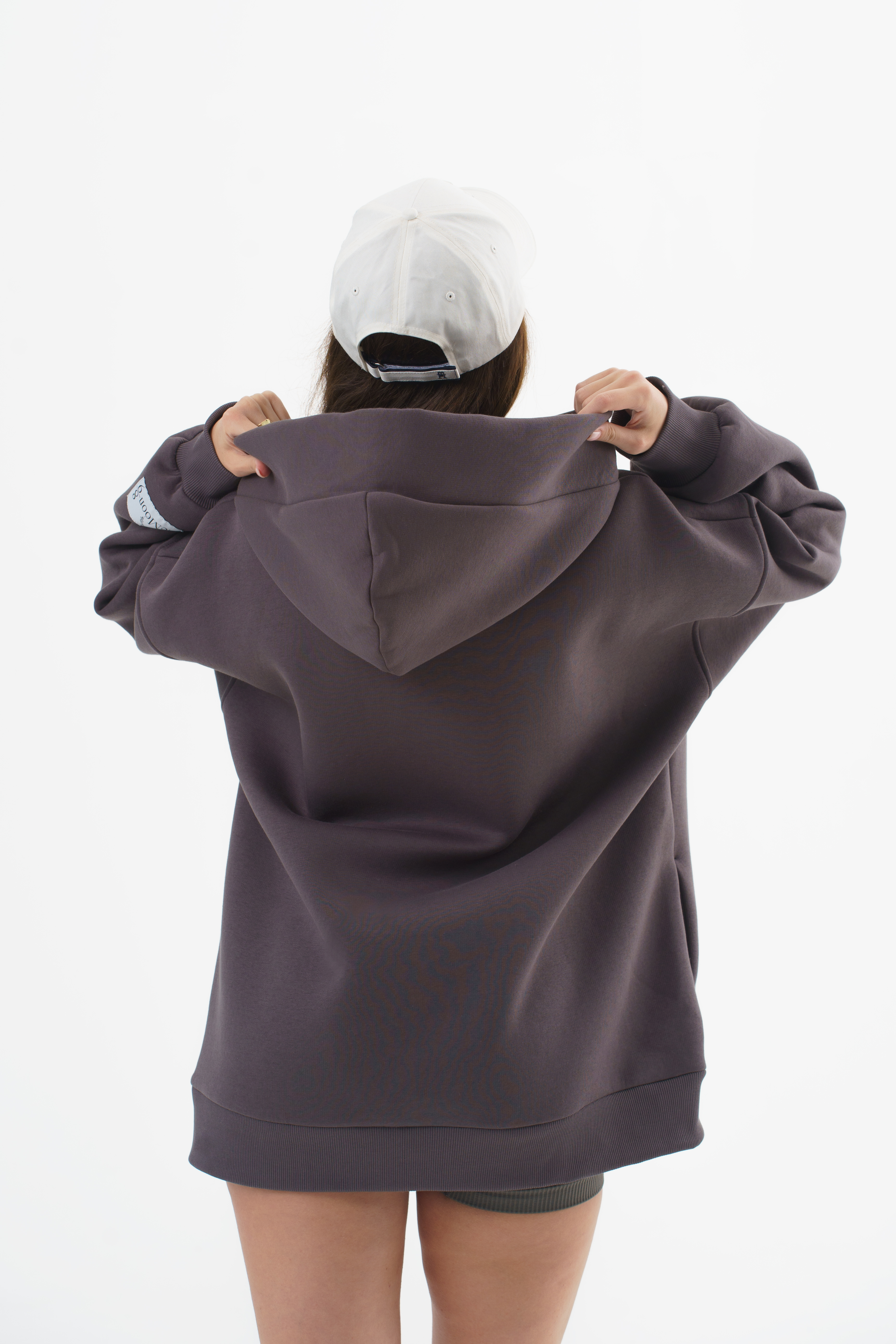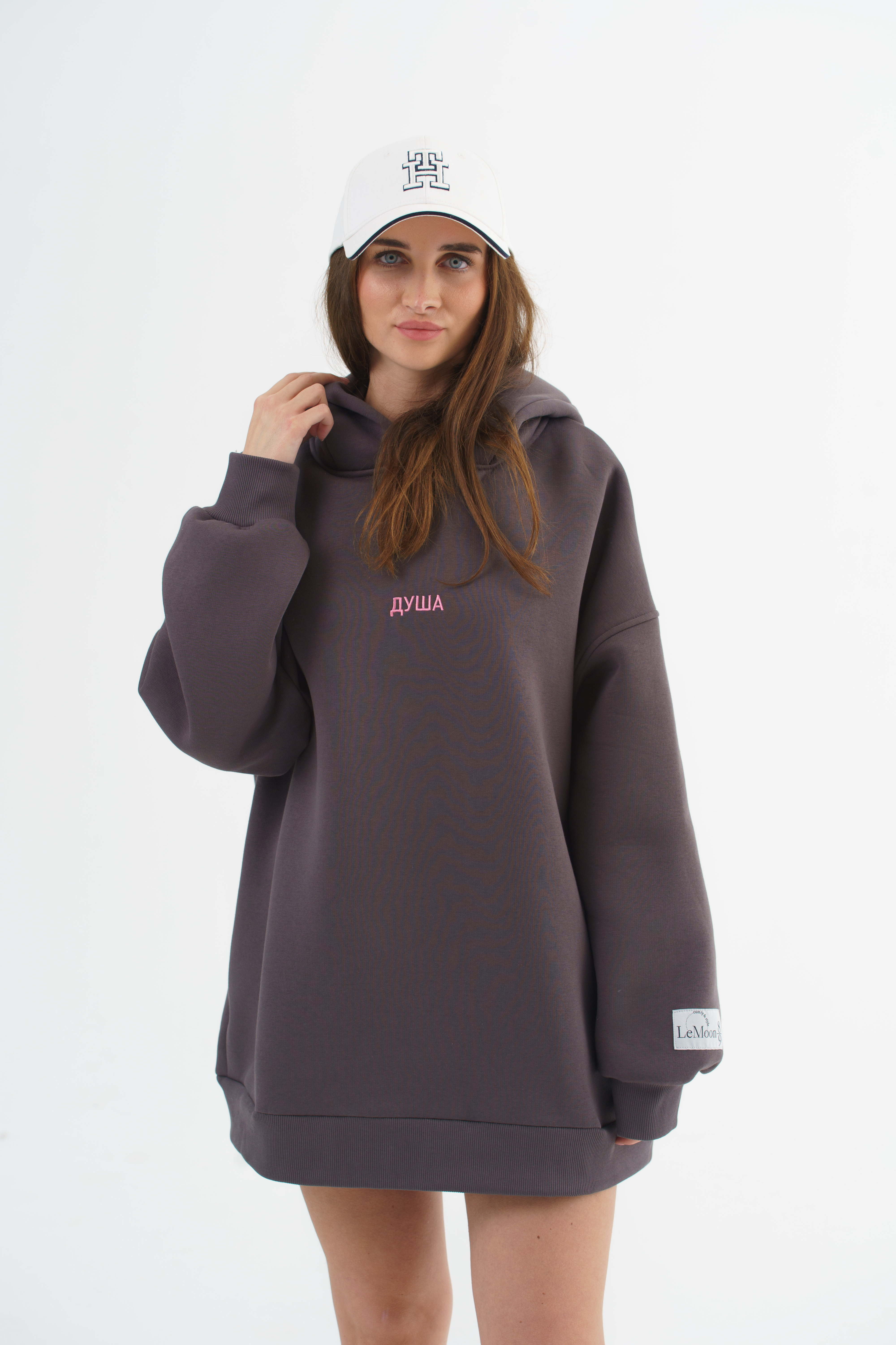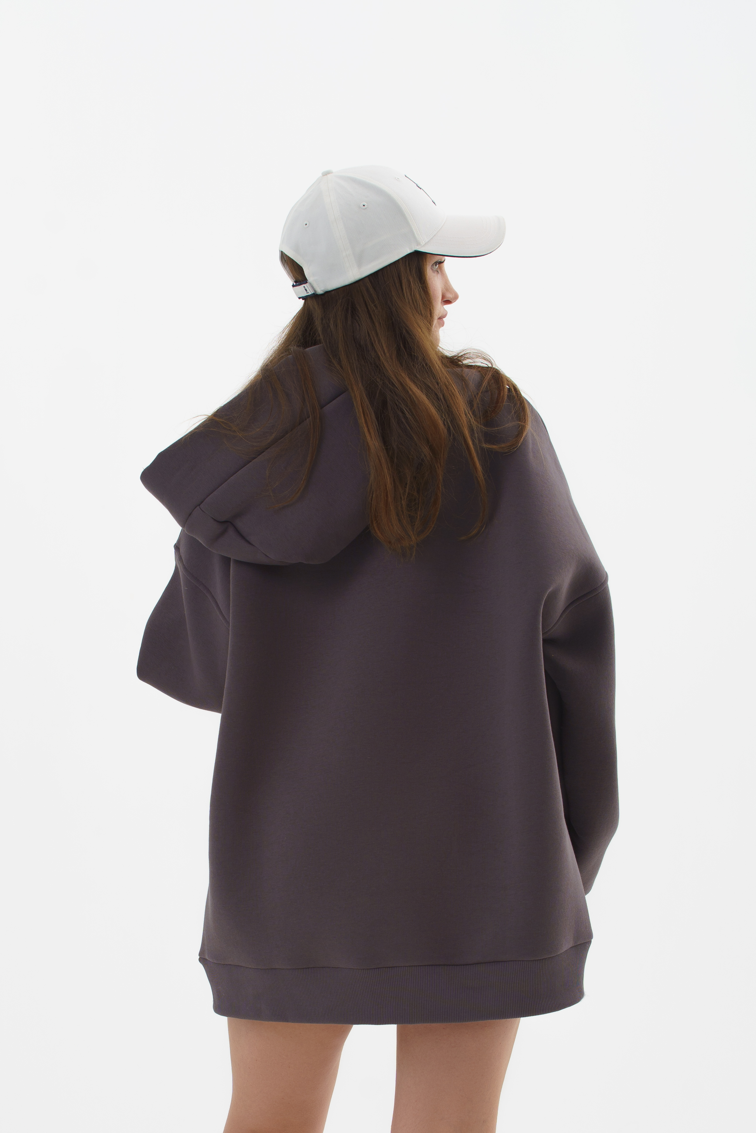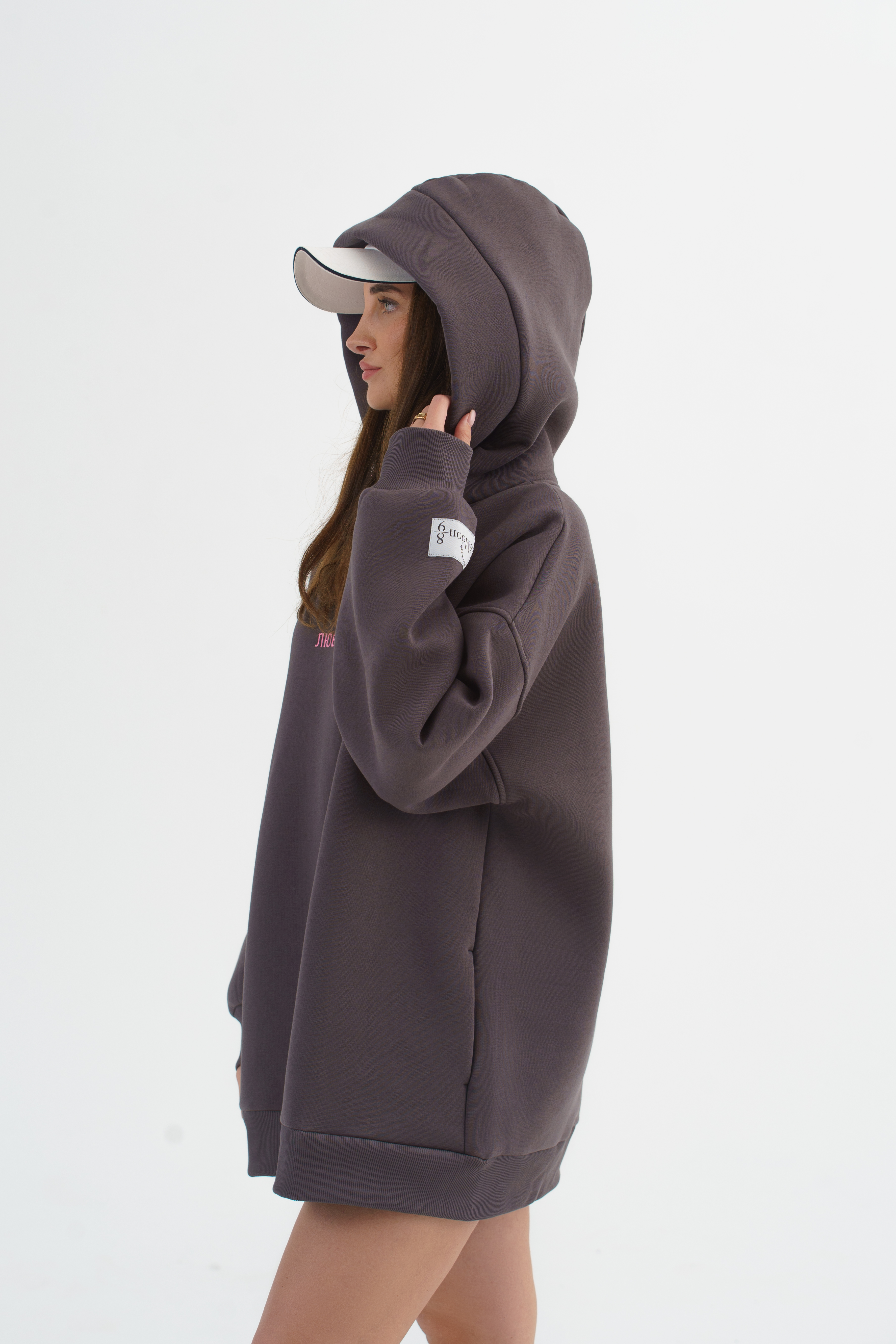 Крой: классический оверсайз с капюшоном — просторный, уютный, не сковывает движения
