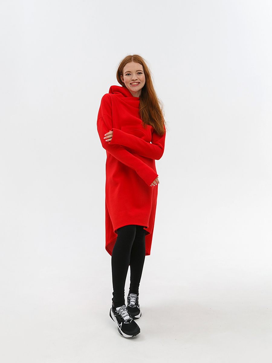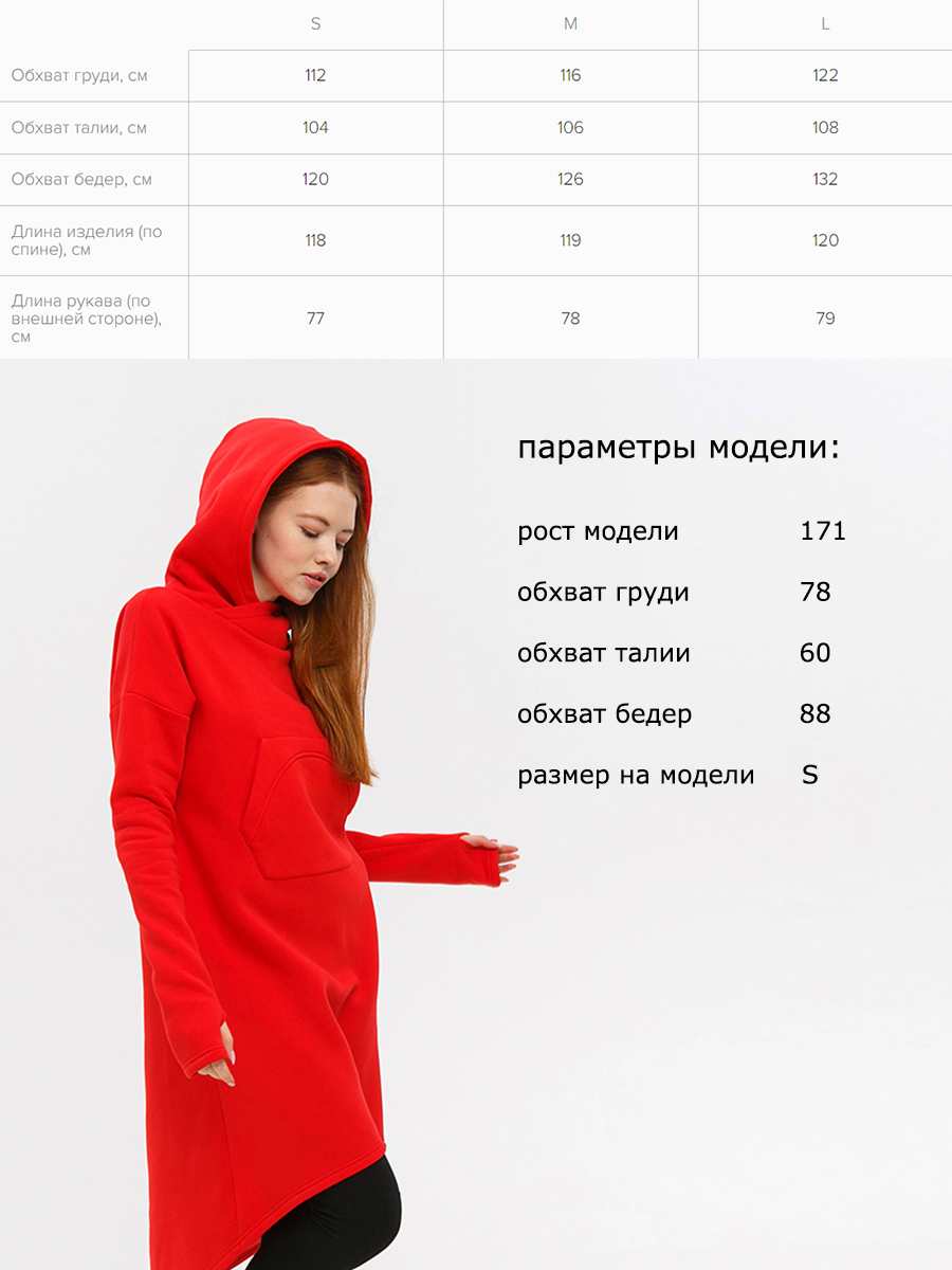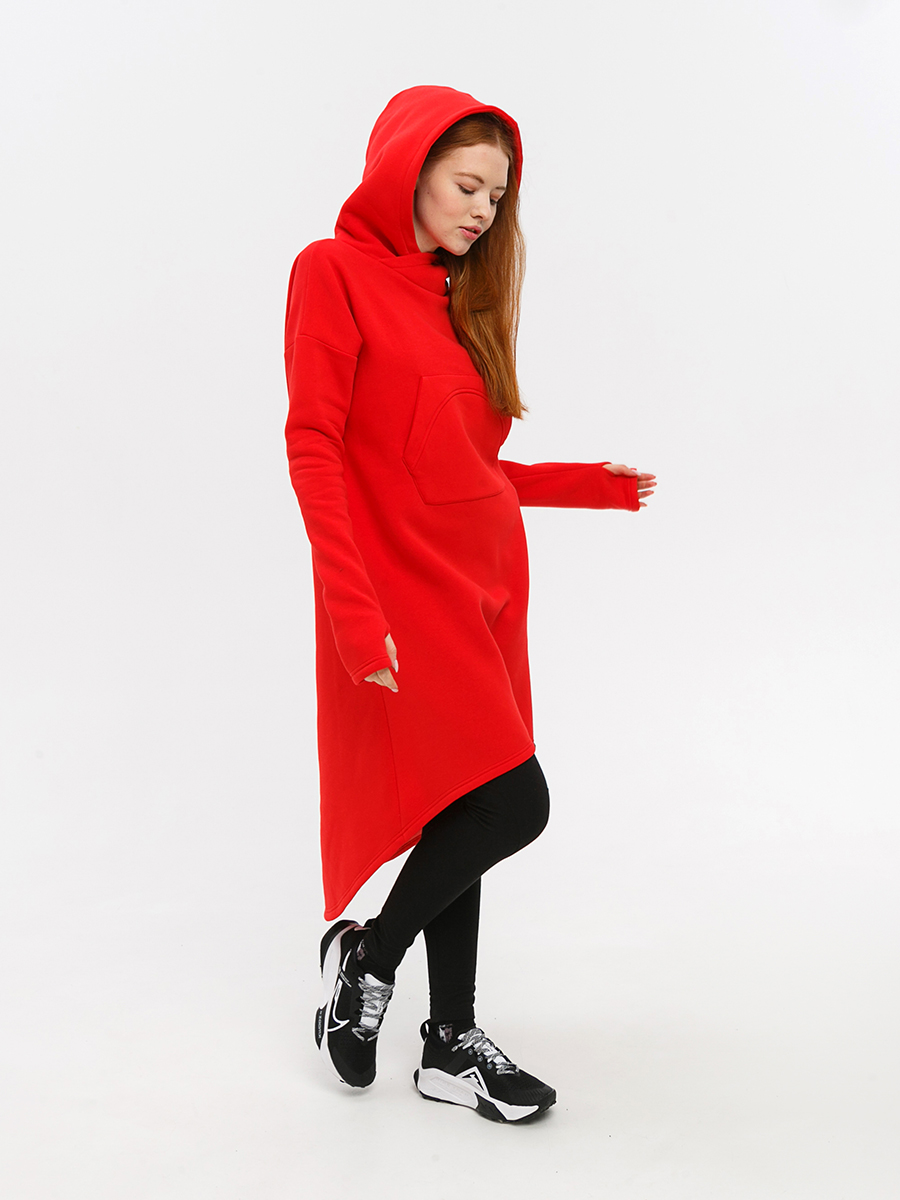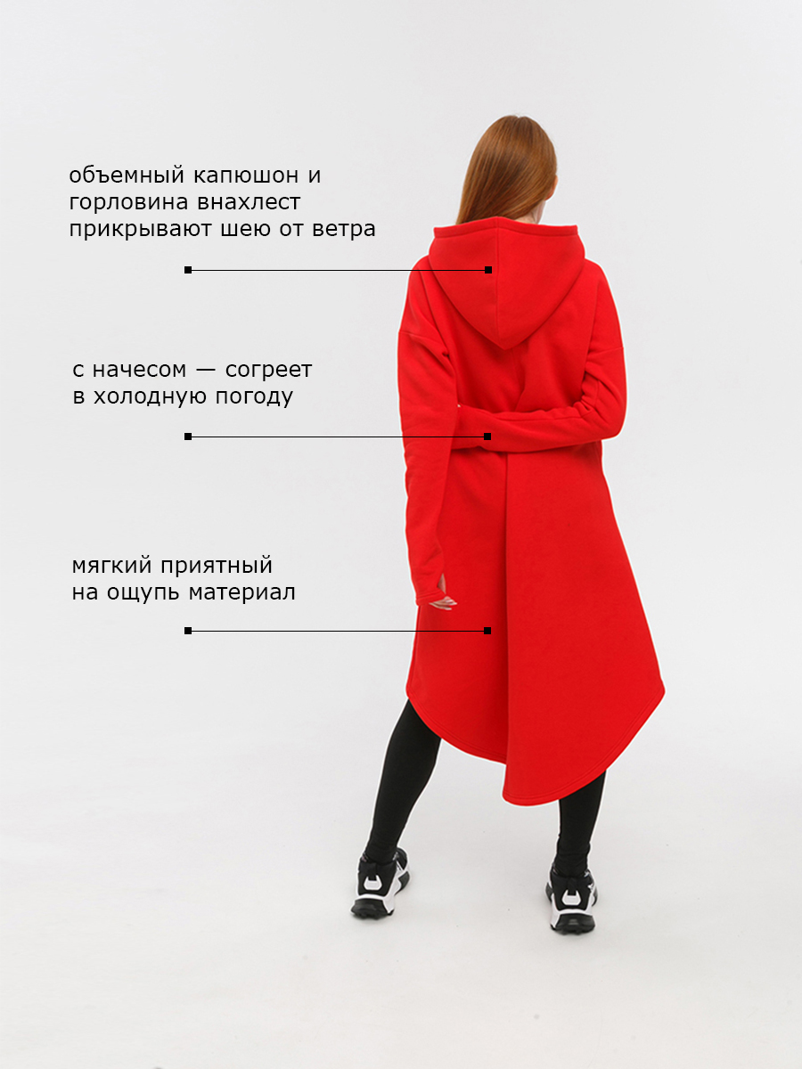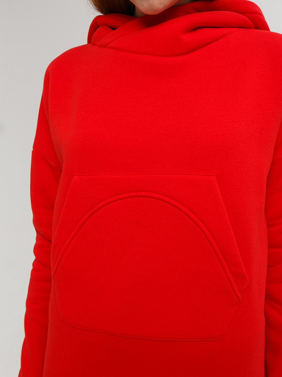 Худи удлиненная из мягкого футера с начесом, с накладным фигурным карманом на груди и объемным капюшоном.