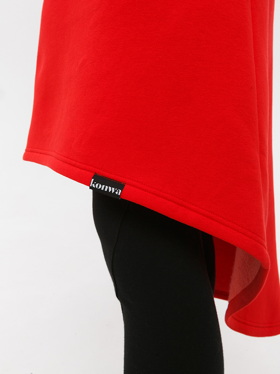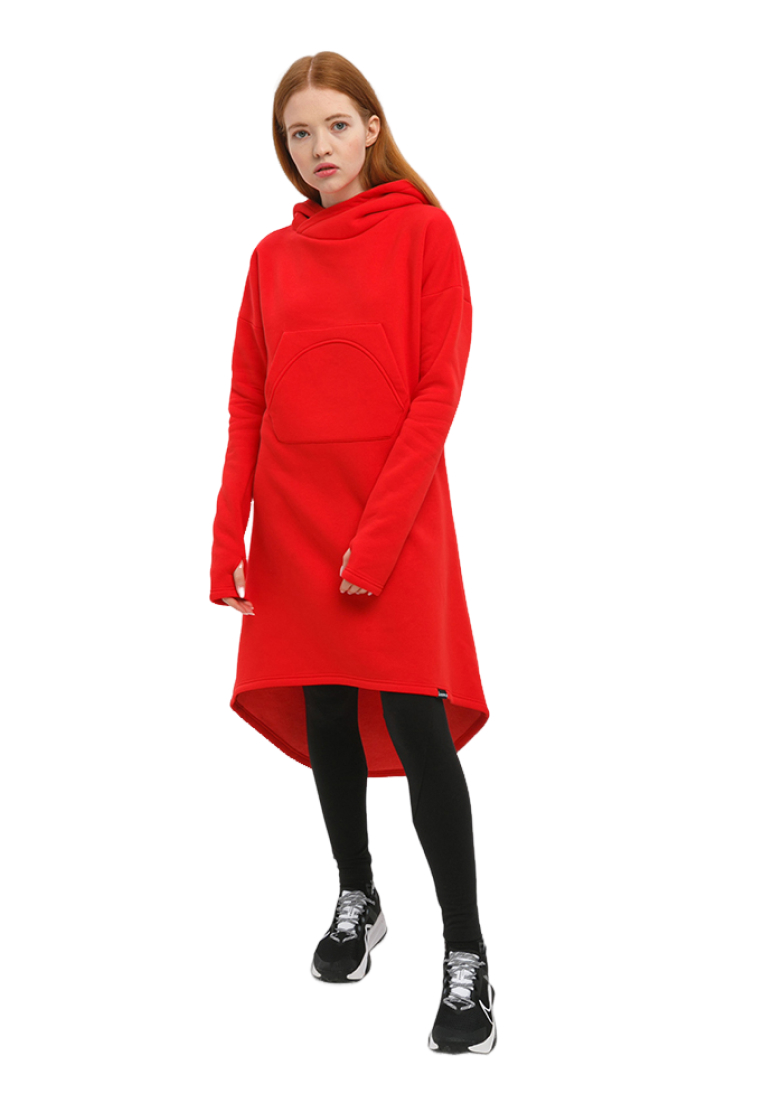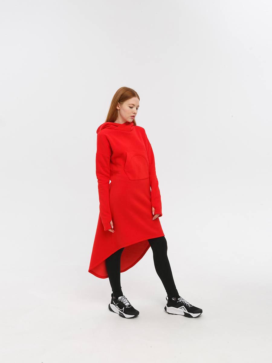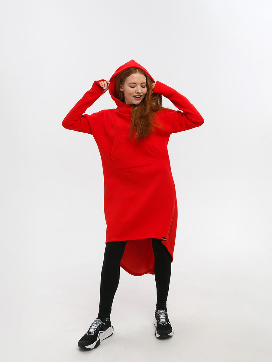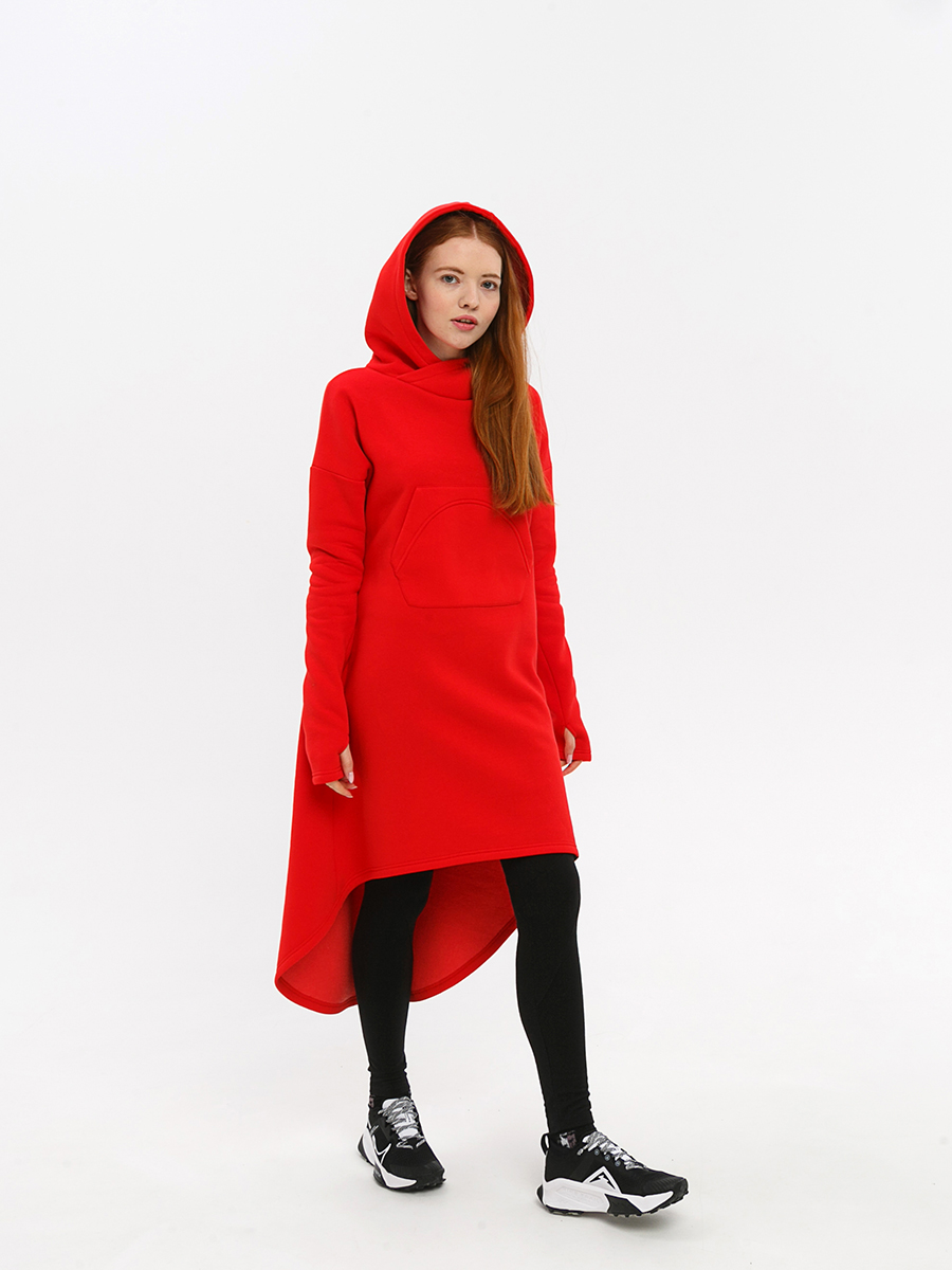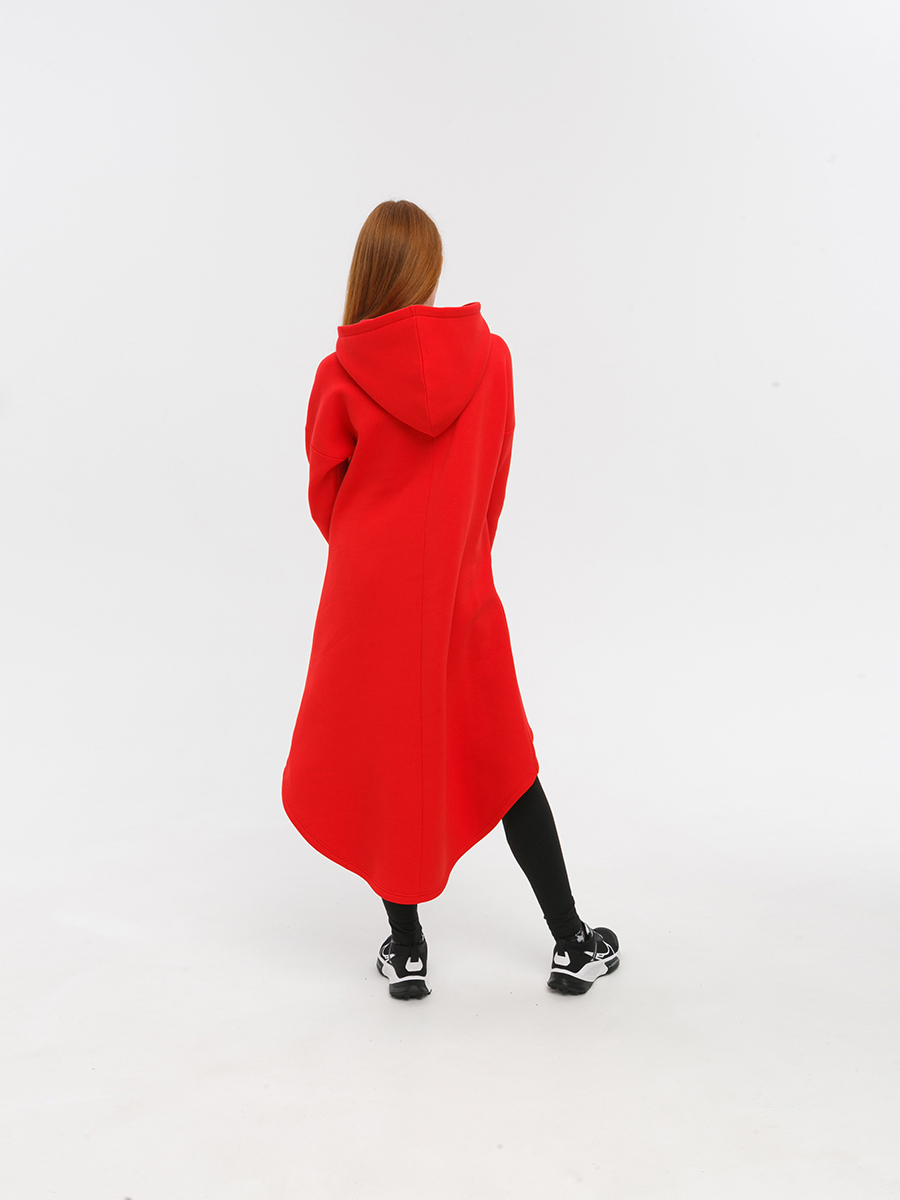 Худи удлиненная из мягкого футера с начесом, с накладным фигурным карманом на груди и объемным капюшоном.