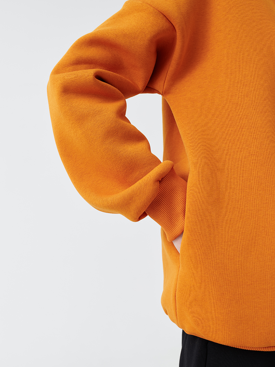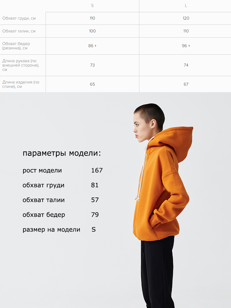 Выполнен из теплого футера с начесом на модели размер М; рост 175 см