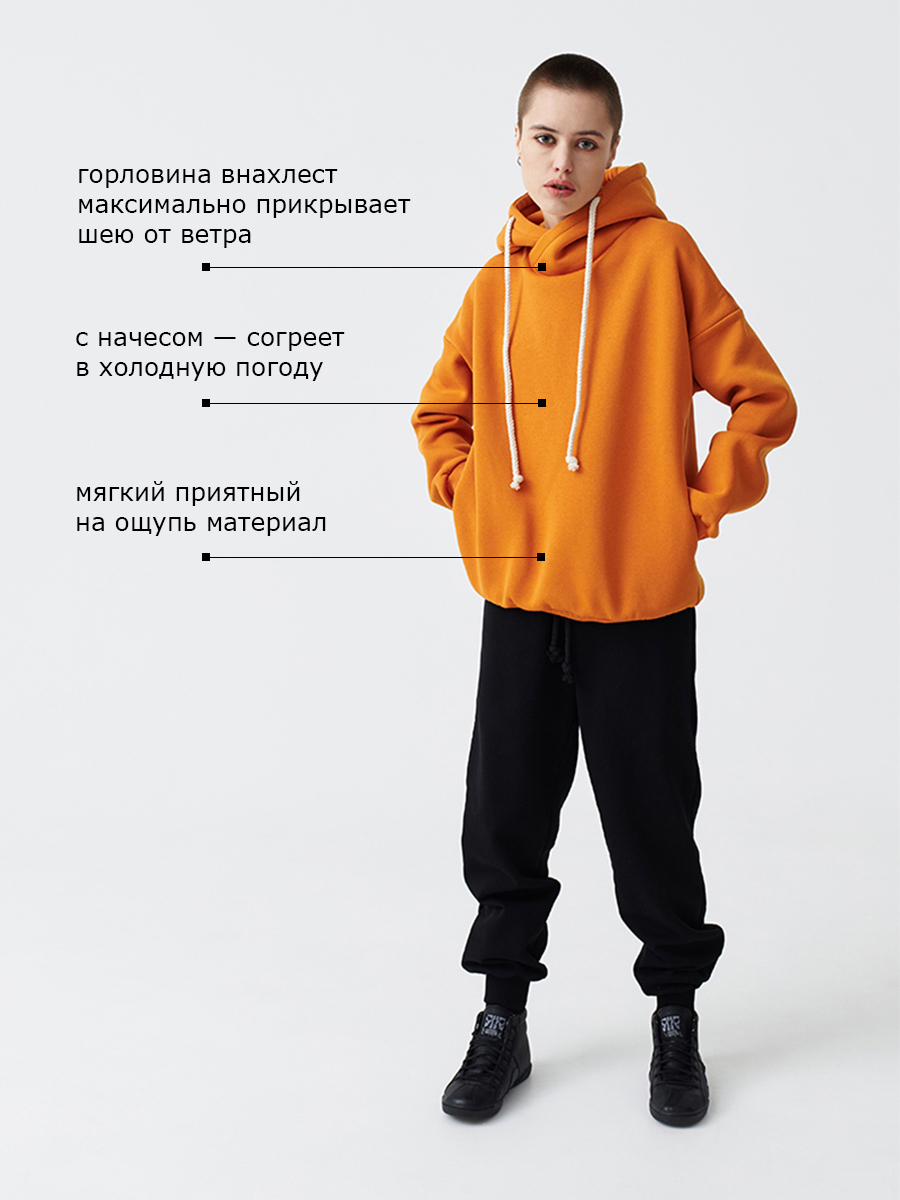 Худи оверсайз из мягкого футера с начесом, с глубокими карманами и объемным капюшоном.