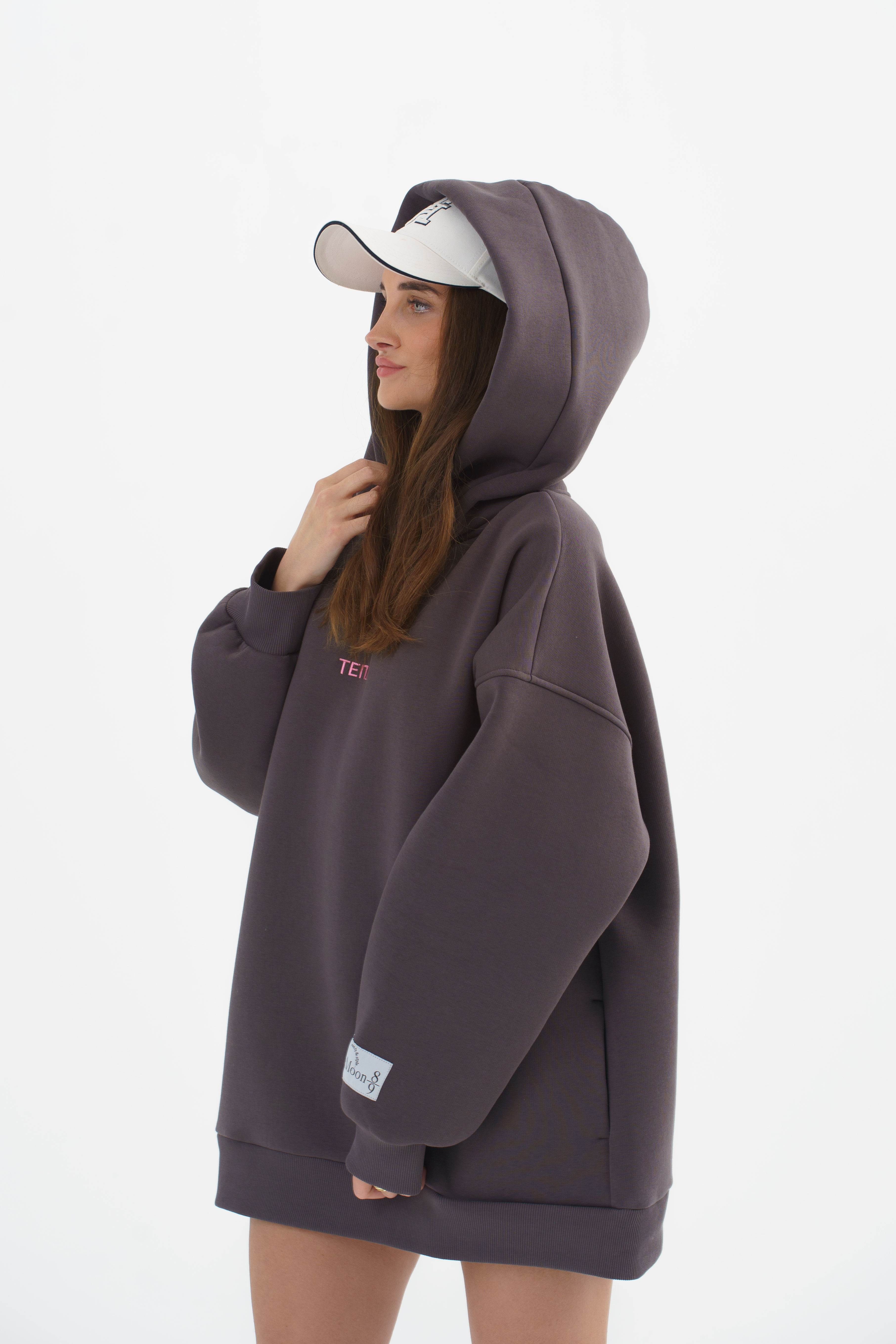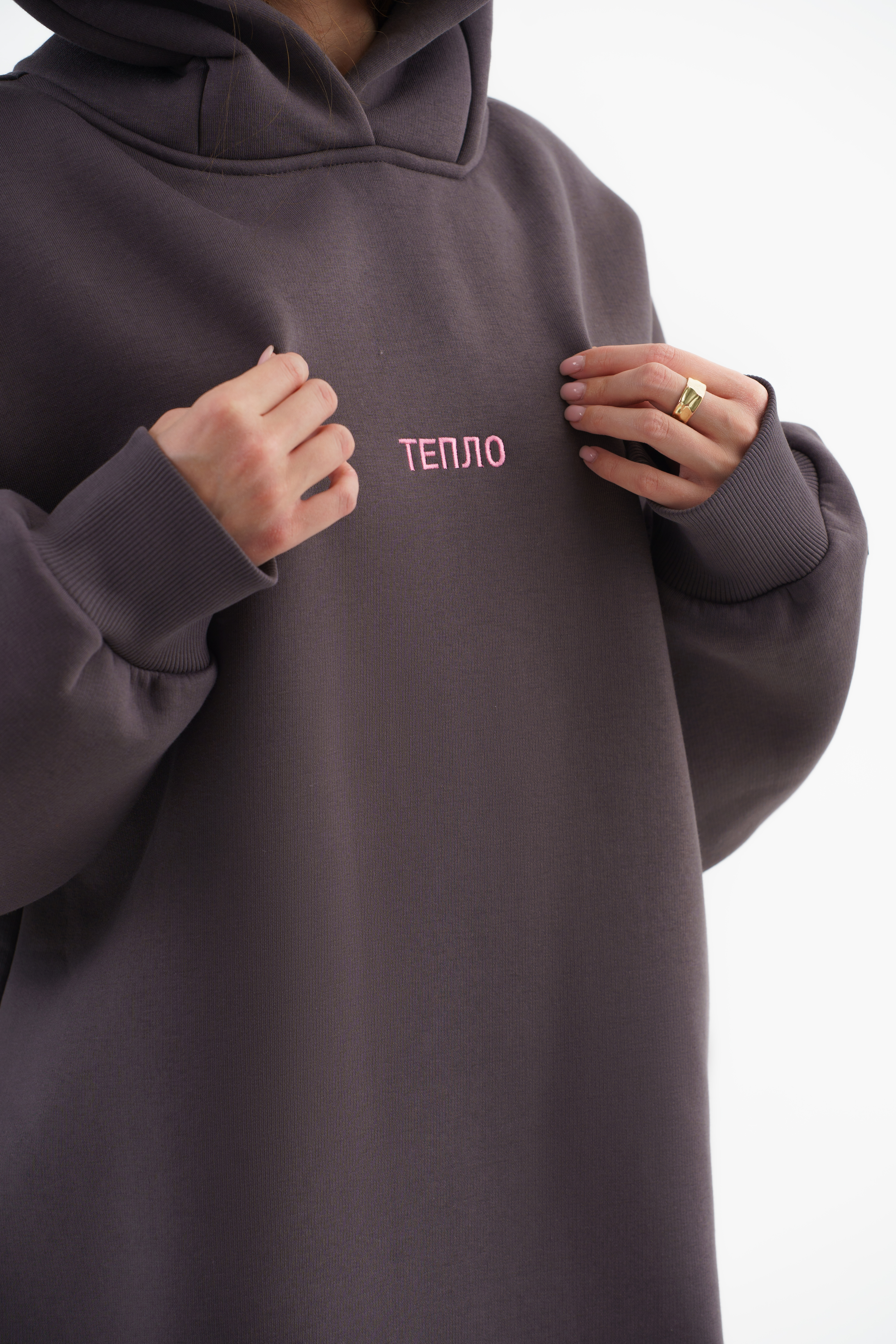 Крой: классический оверсайз с капюшоном — просторный, уютный, не сковывает движения