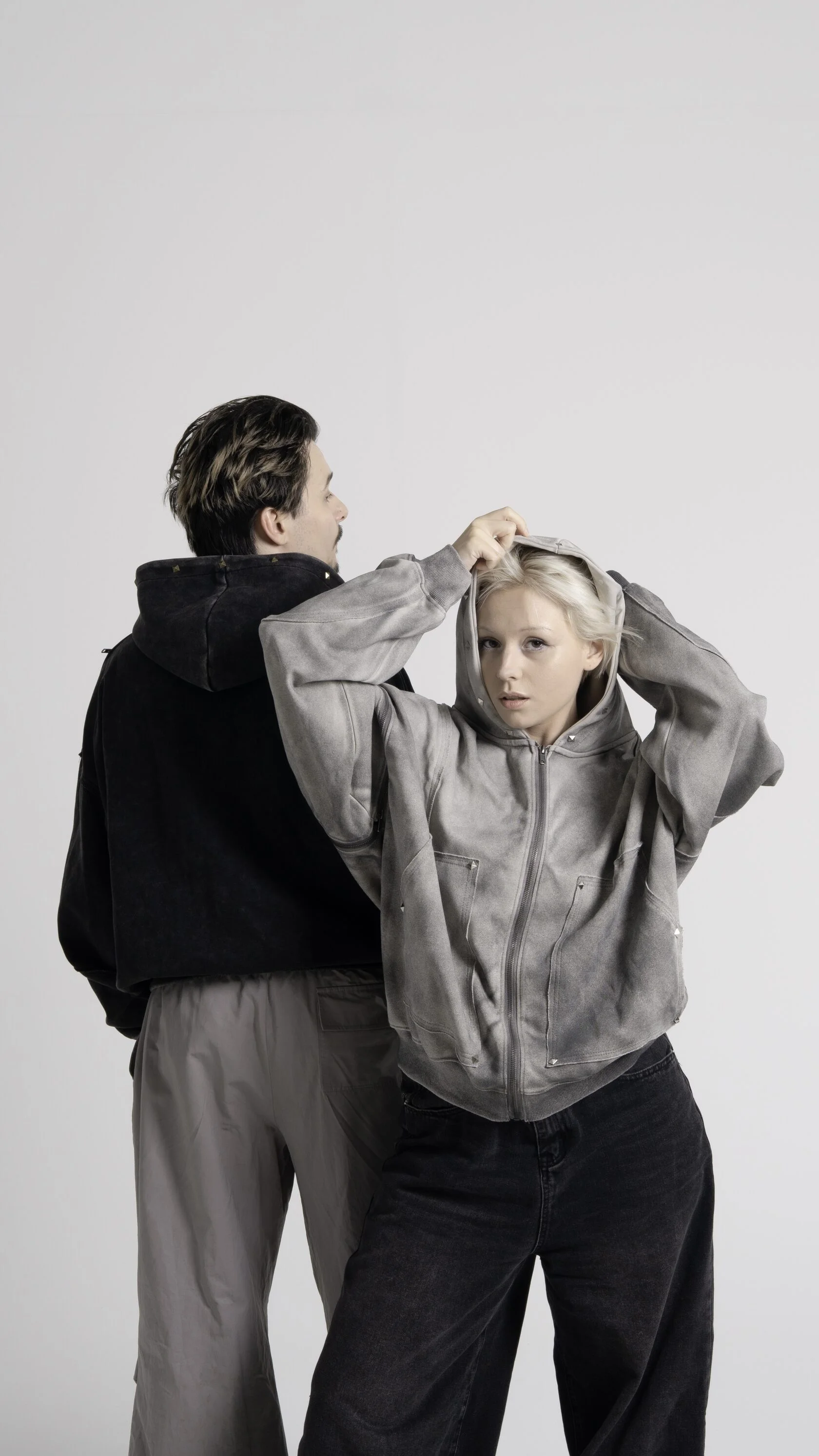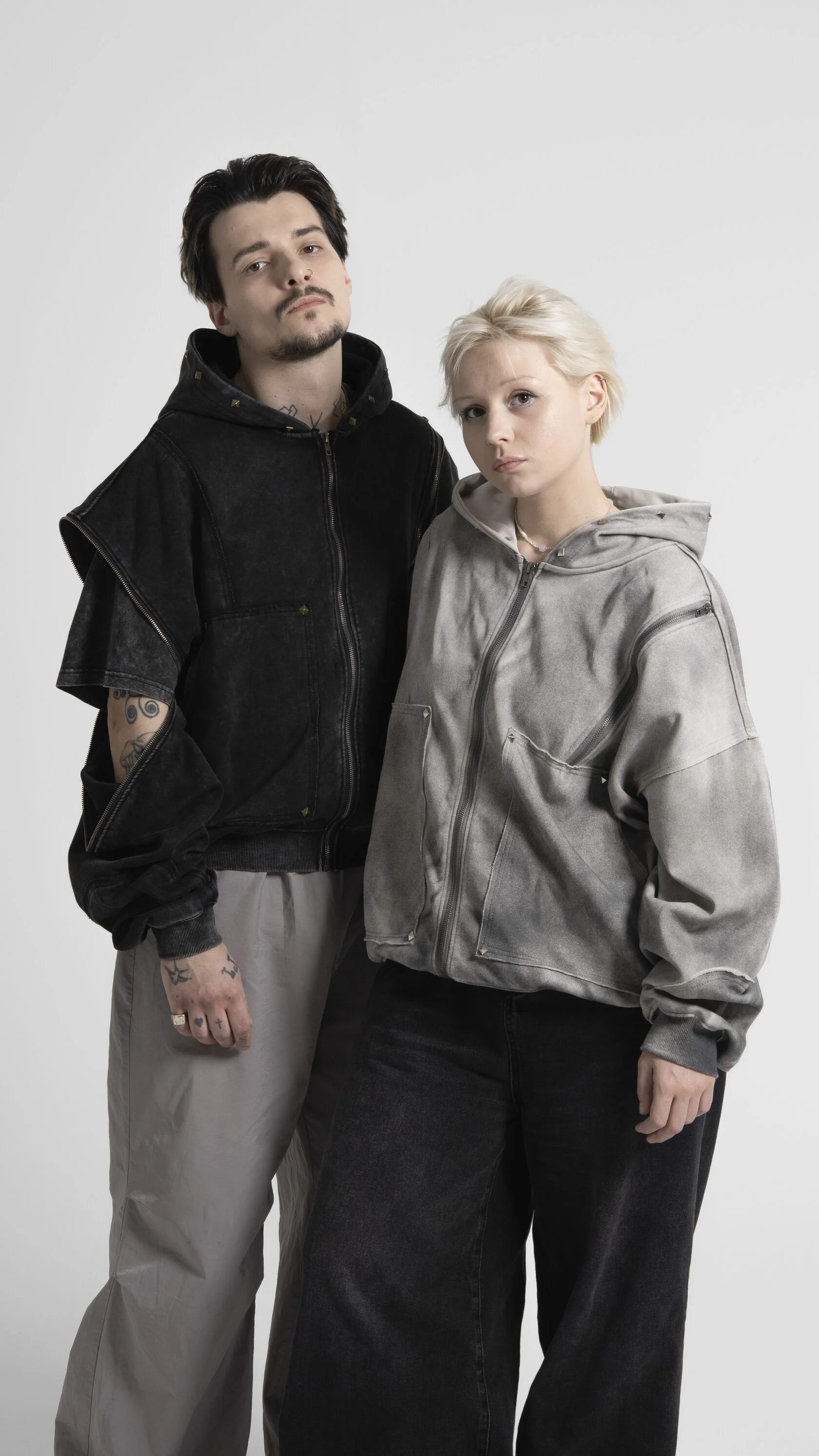 Худи TRANSFORMER LIFGHT - настоящий артефакт с характером! За счет молний можно отстегнуть рукав на правой руке и приоткрыть левую руку. Потертая ткань и ромбы-заклепки подчеркивают уникальный вайб изделия!