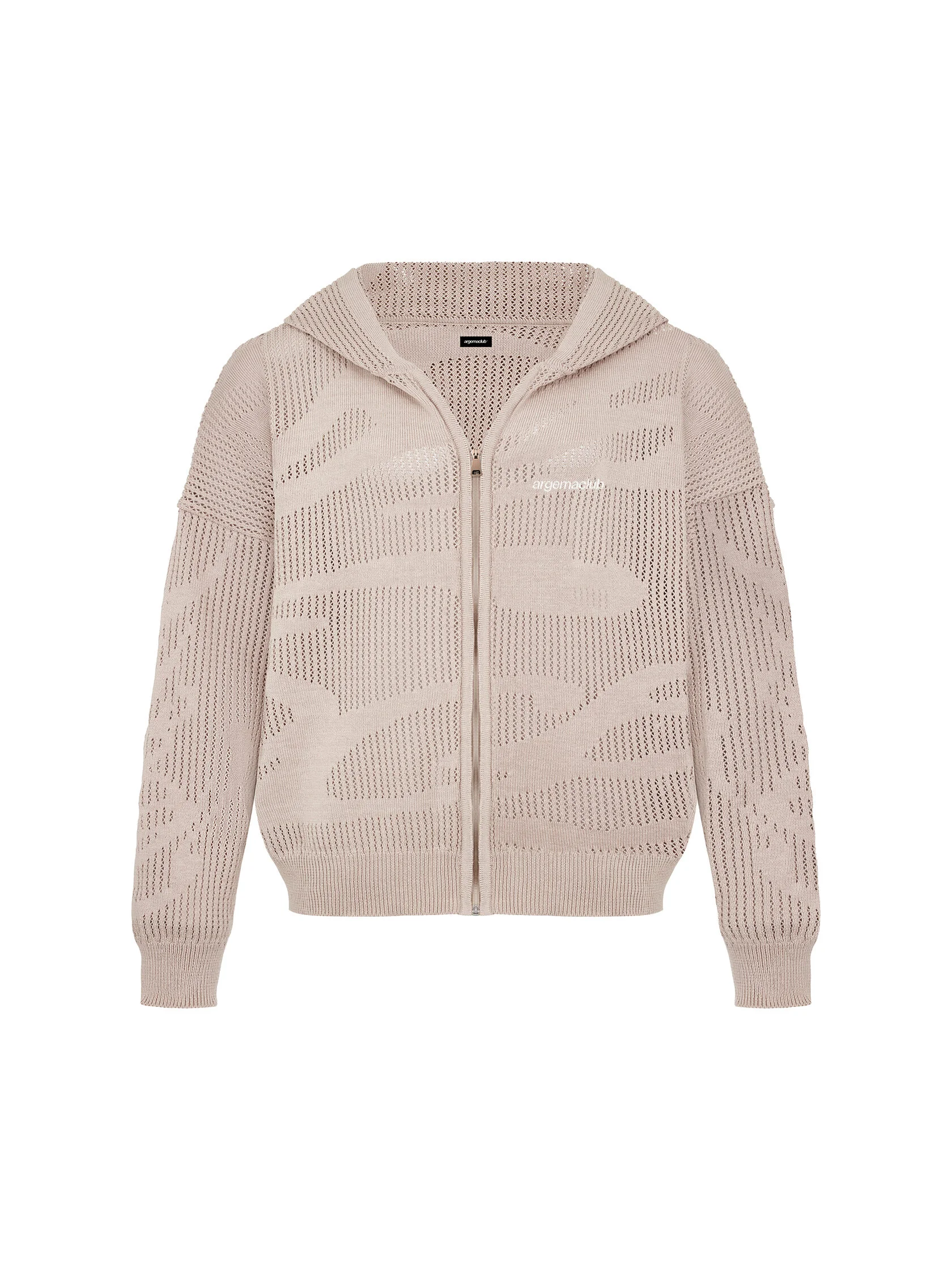 Вязаное зип-худи с уникальным паттерном плотного и прозрачного.