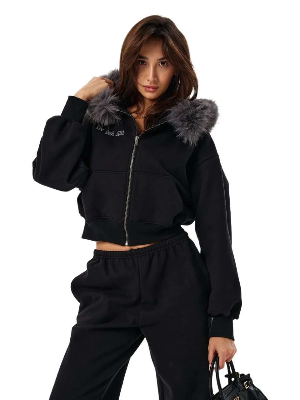 Олимпийка из плотного футера трёхнитки с пич-эффектом с двух сторон. Премиальный эко-мех на капюшоне отстёгивается. Отлично держит форму, тёплая и приятная на ощупь