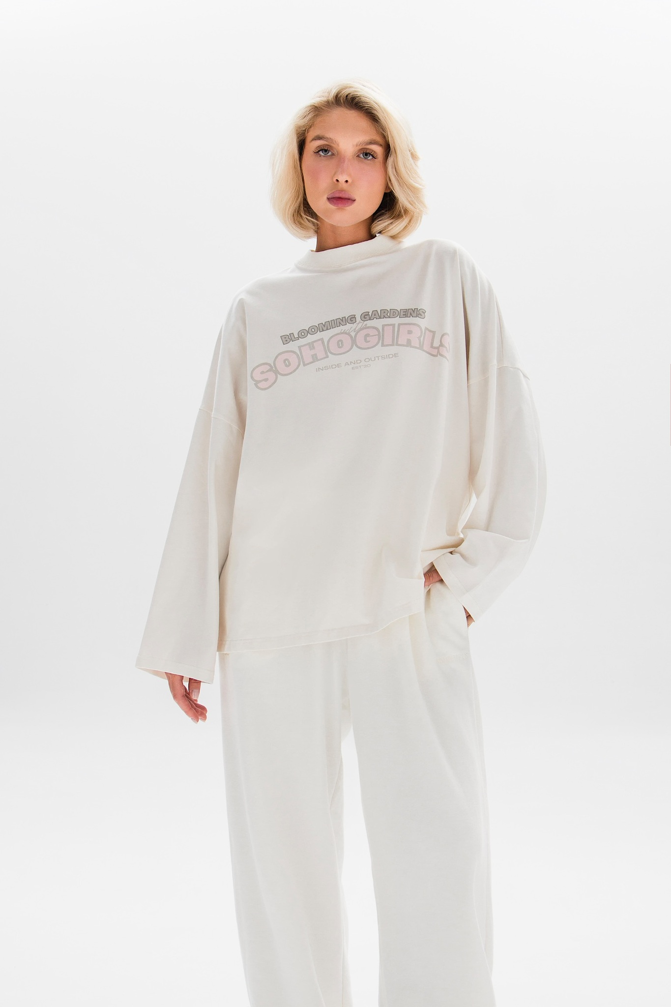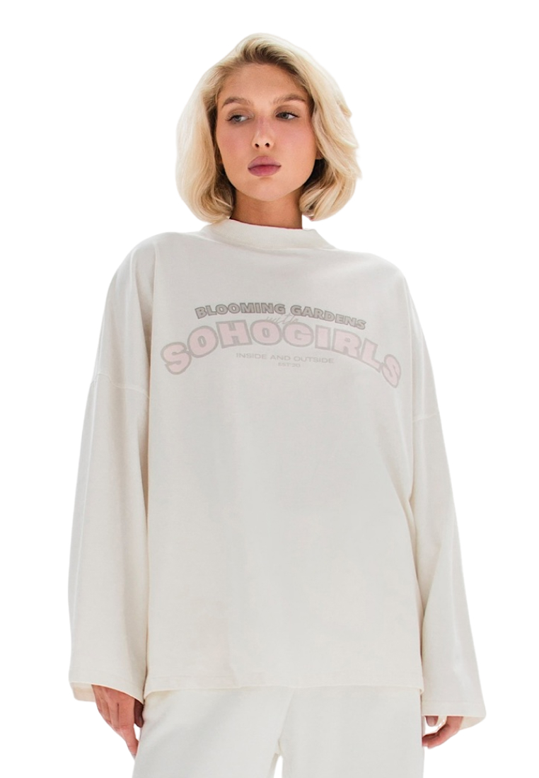 Свитшот GARDENS - про внутренний рост, лёгкость и естественную красоту в каждом дне. Принт с фразой “blooming gardens inside and outside” - напоминание о том, что настоящее цветение начинается изнутри.