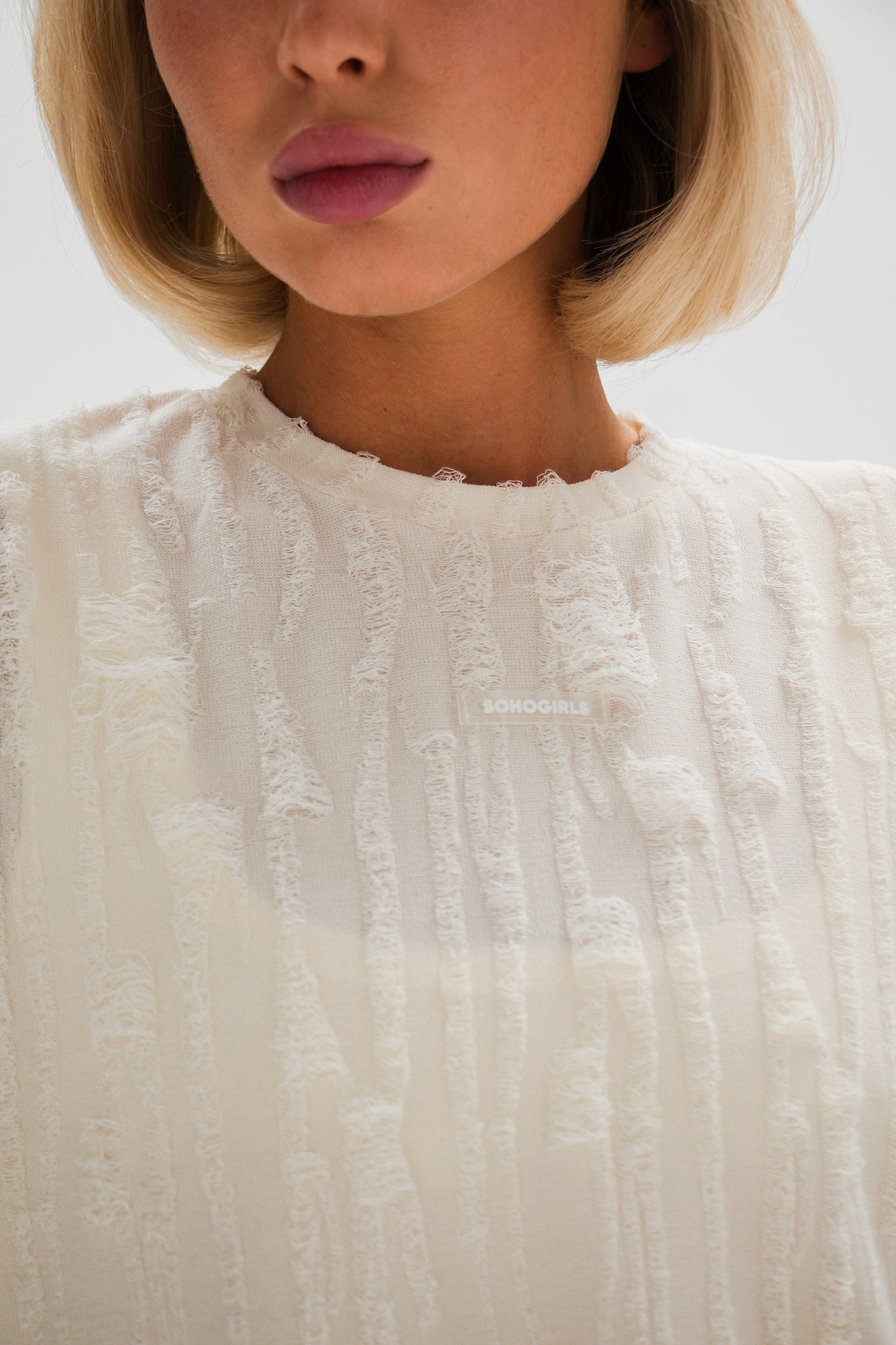 Свитшот RUFFURE с гранжевыми элементами и эффектами потертостей. Свободный крой и минималистичная бирка на груди создают стильный и непринужденный образ