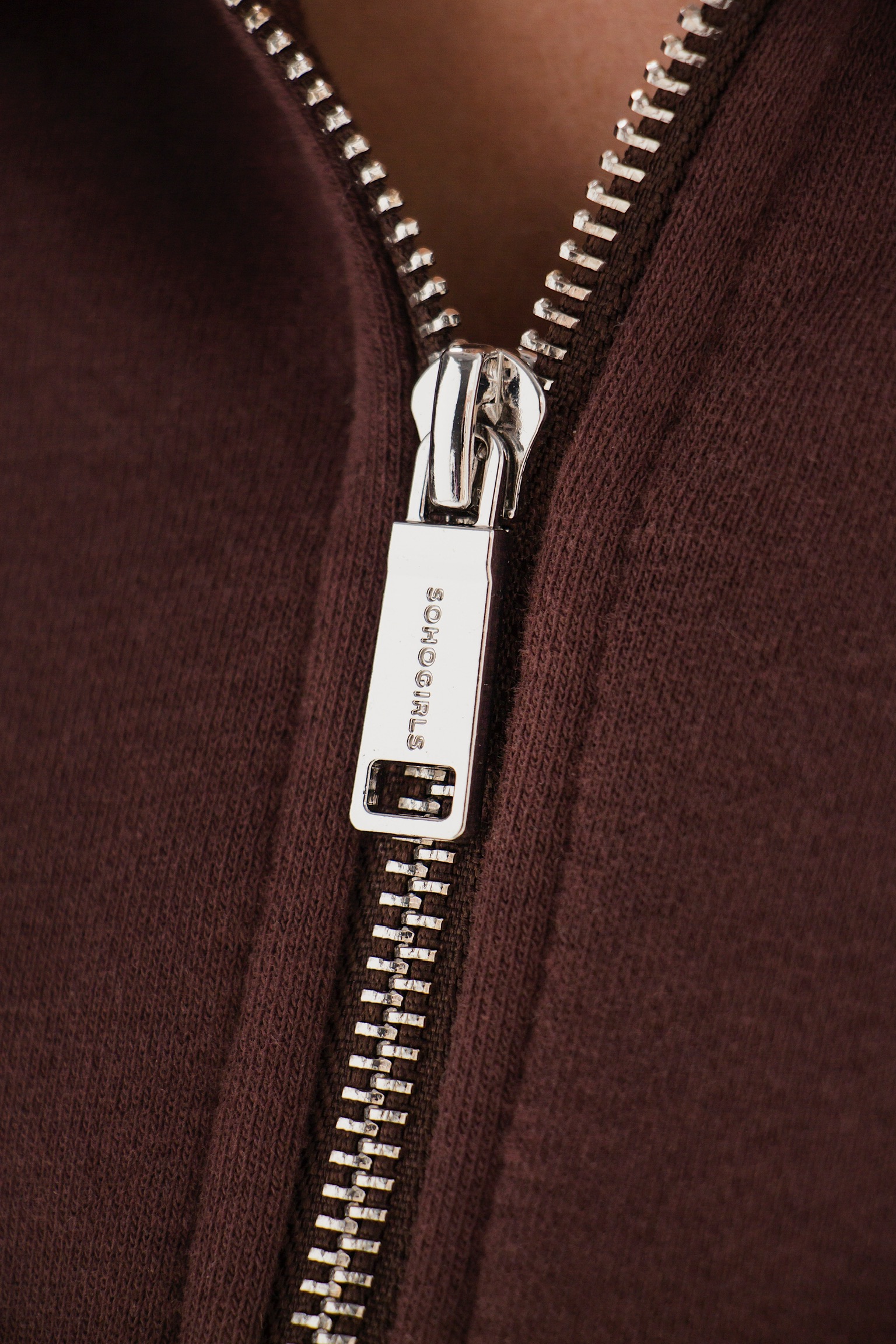 Модель оснащена удобной молнией и вышивками на груди, добавляющими характерный акцент. Основной материал — хлопок, что делает изделие приятным к телу и износостойким.