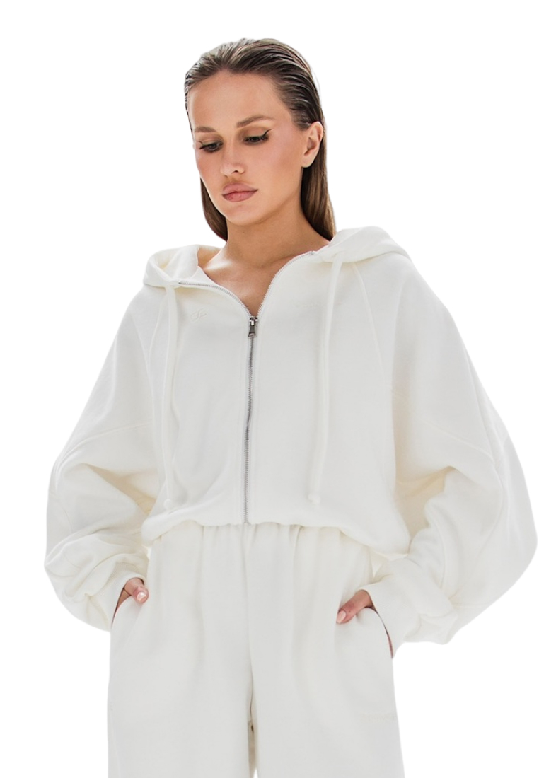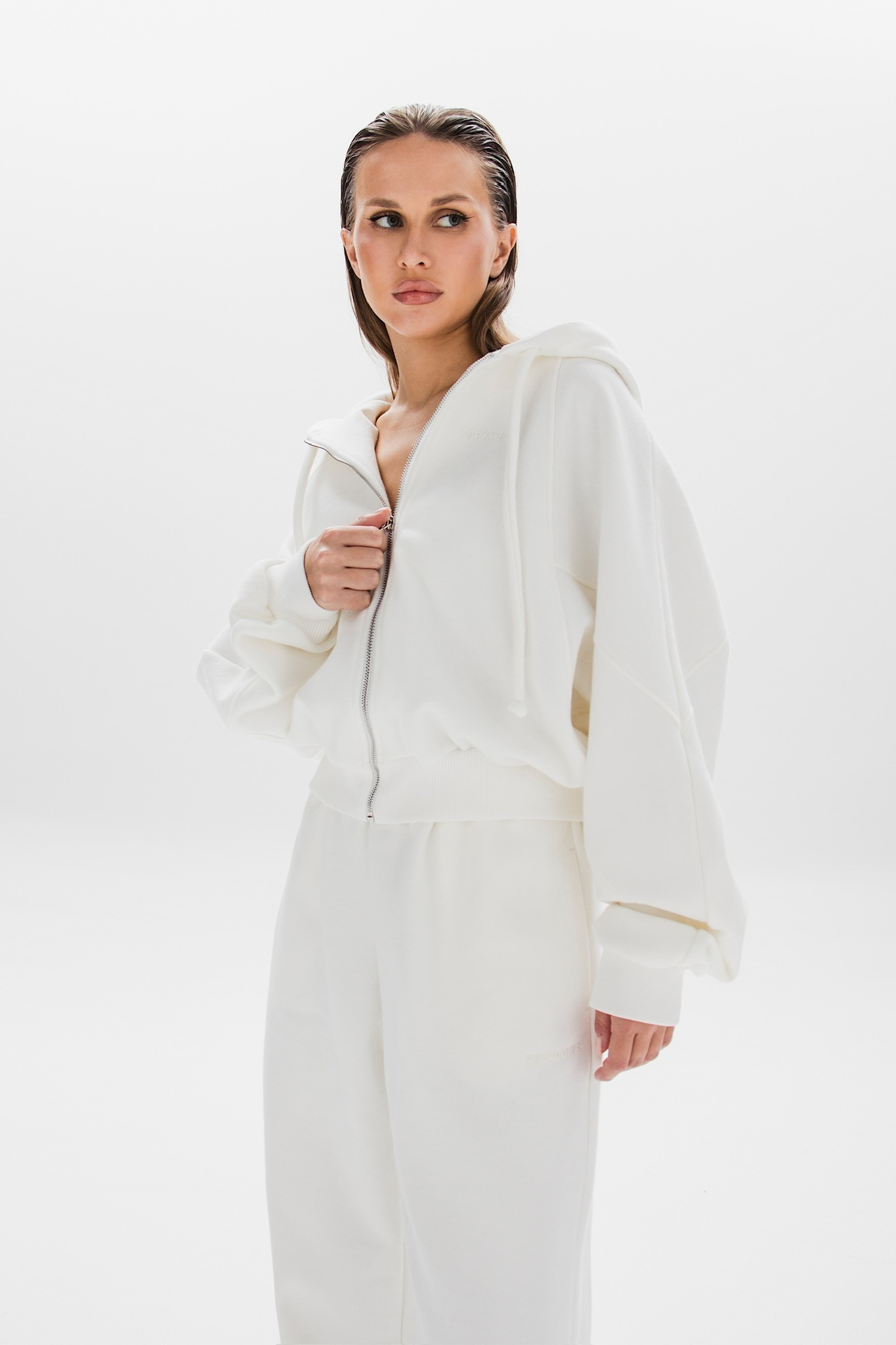 Модель оснащена удобной молнией и вышивкой на груди, добавляющими характерный акцент. Основной материал — хлопок, что делает изделие приятным к телу и износостойким