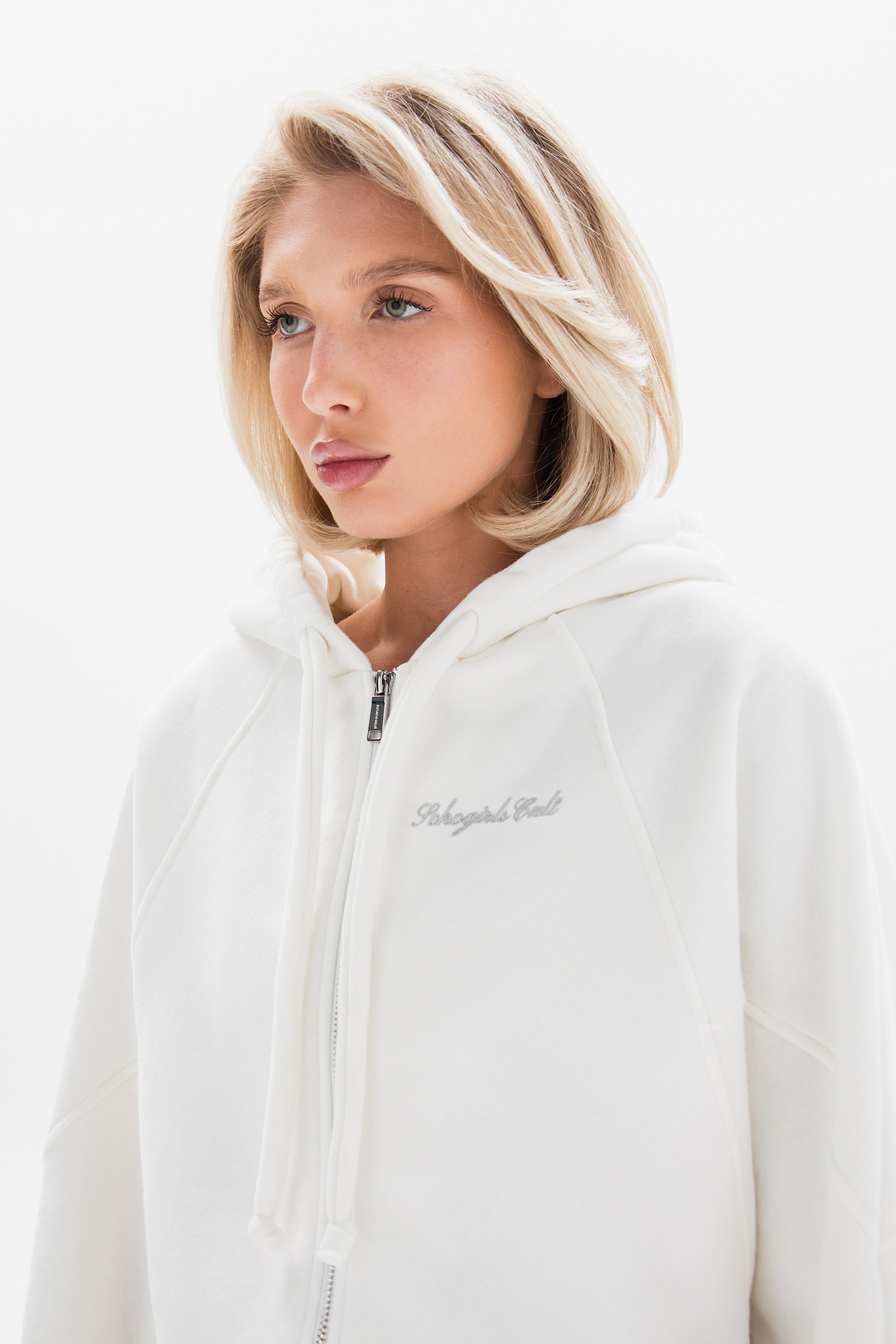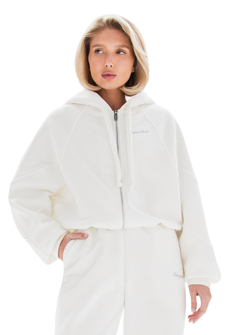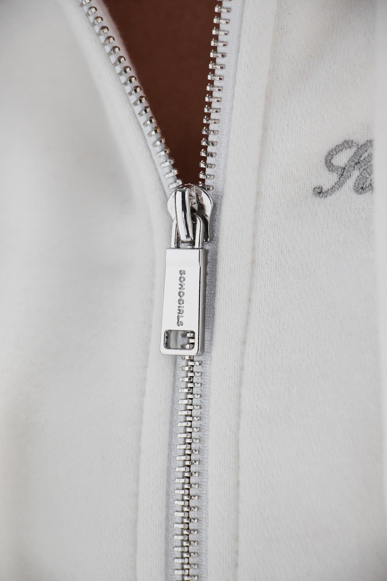 Модель оснащена удобной молнией и вышивкой на груди, добавляющими характерный акцент. Основной материал — хлопок, что делает изделие приятным к телу и износостойким.