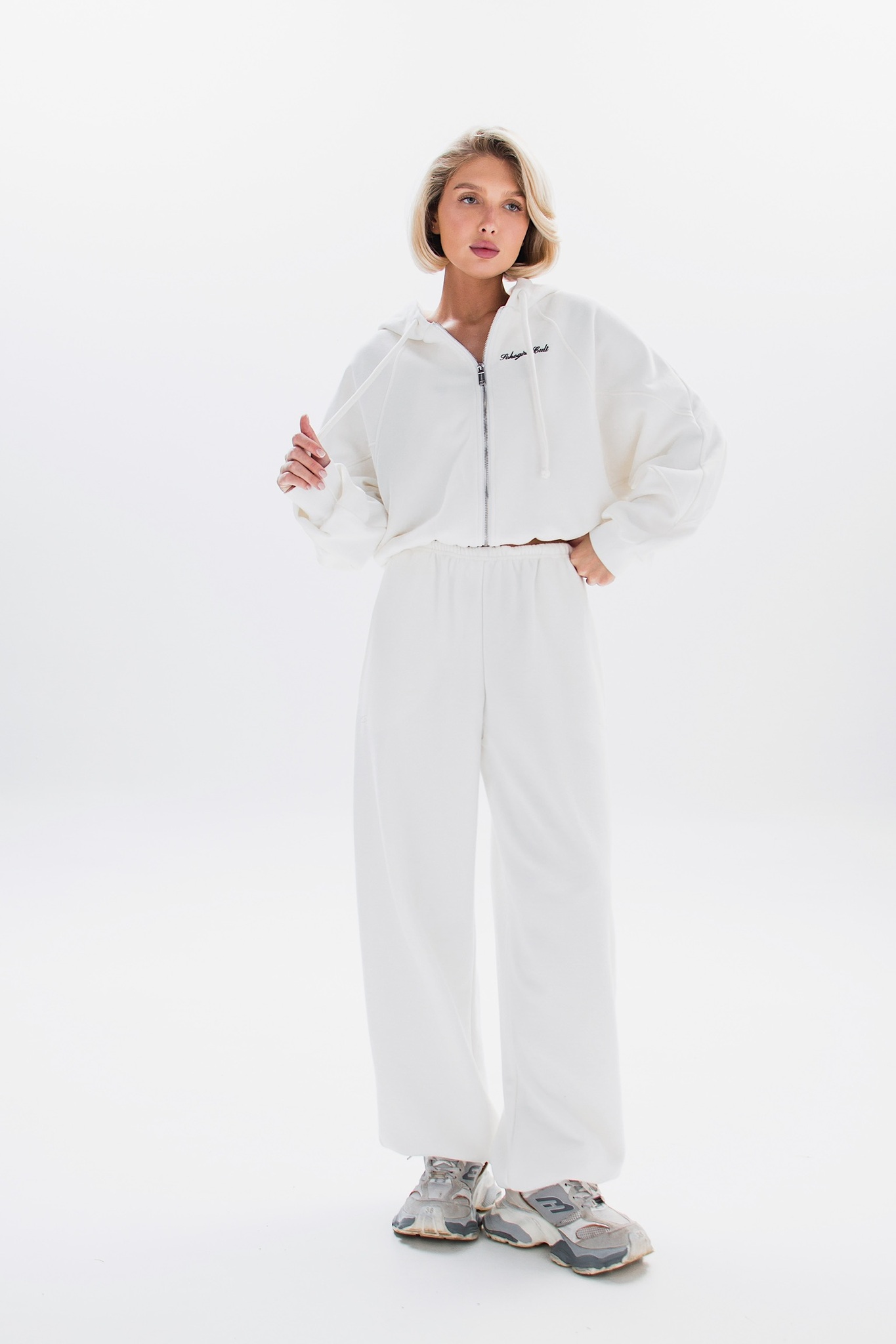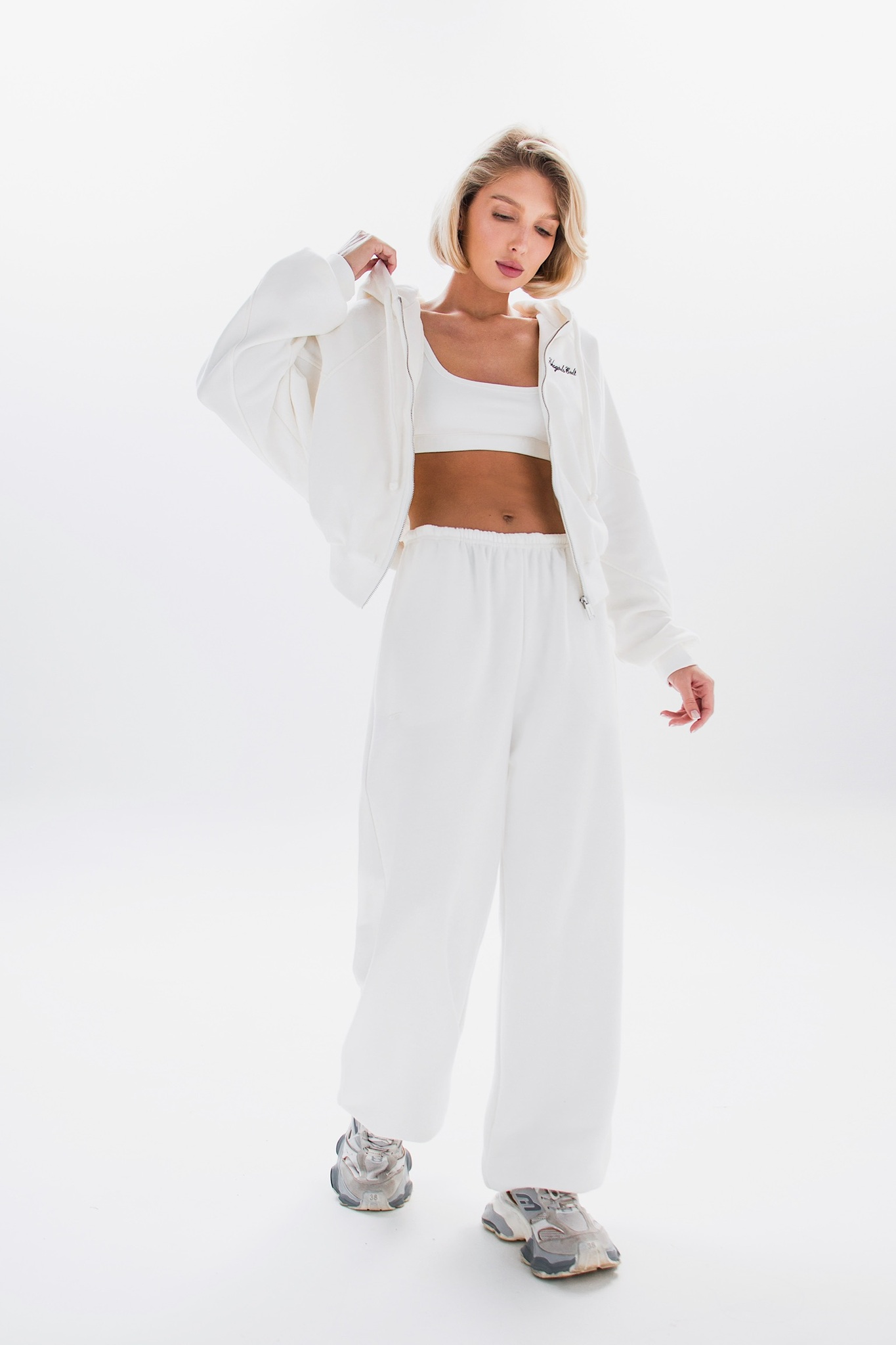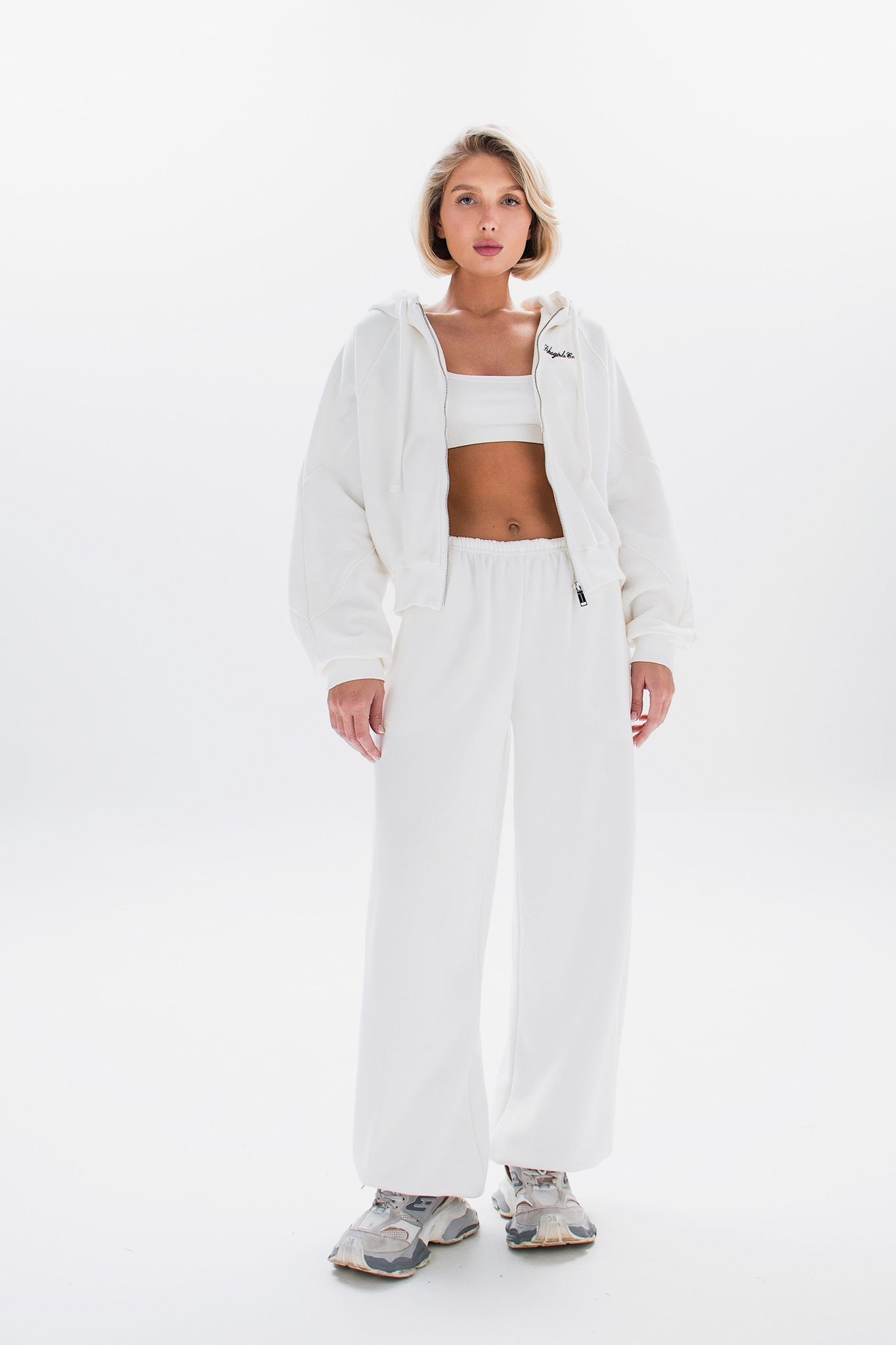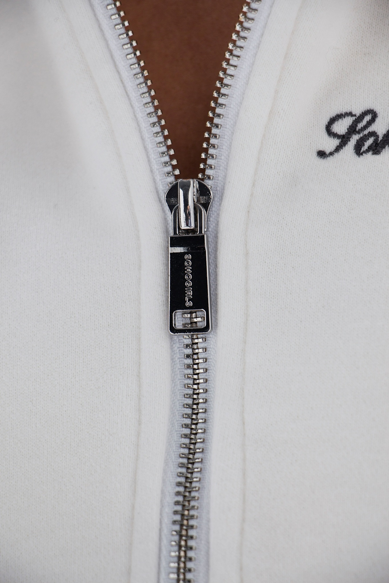 Модель оснащена удобной молнией и вышивкой на груди, добавляющими характерный акцент. Основной материал — хлопок, что делает изделие приятным к телу и износостойким