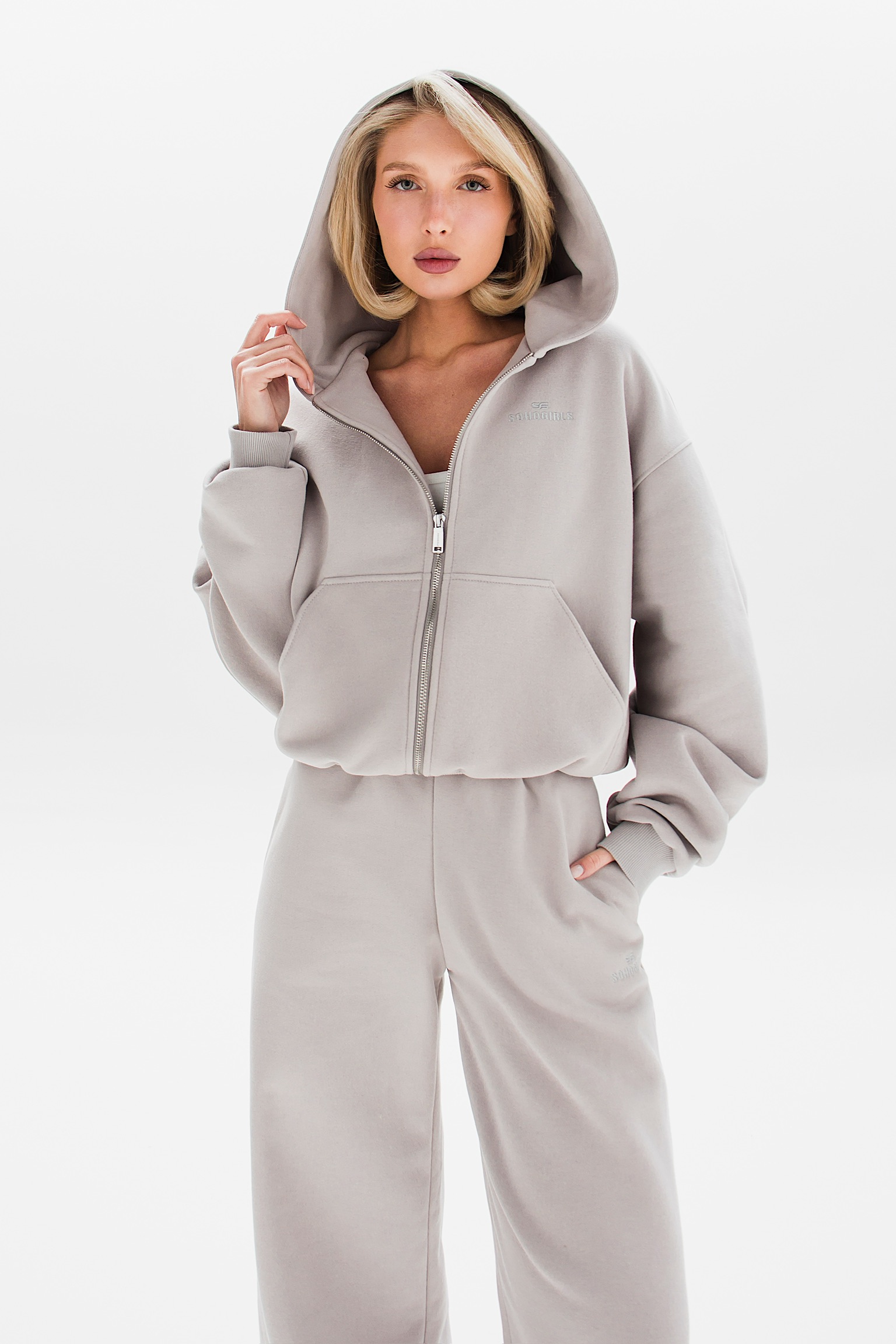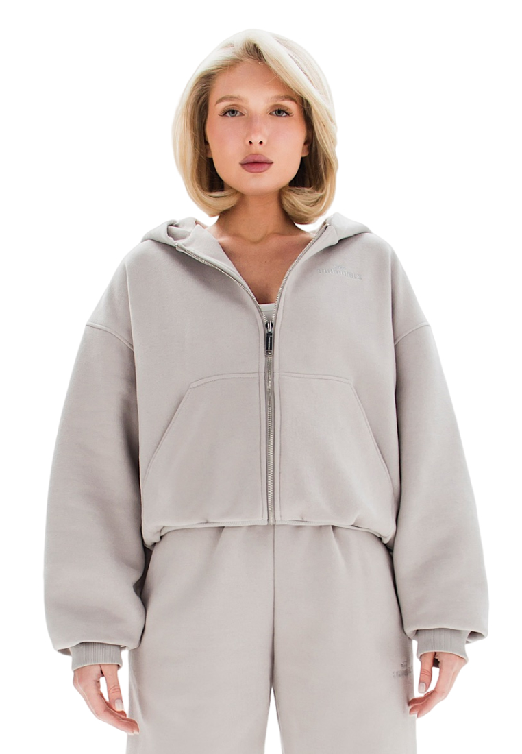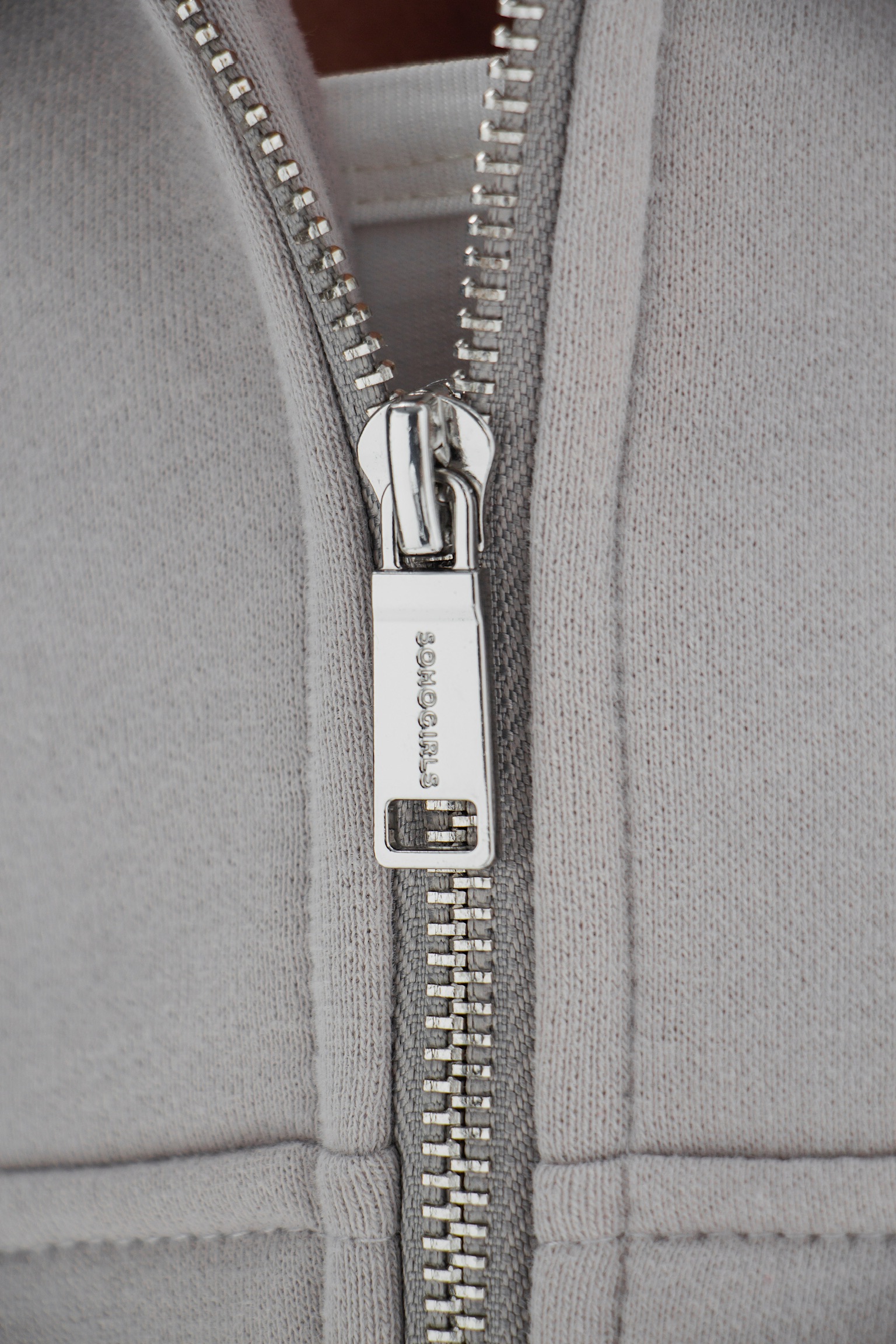 Модель оснащена удобной молнией и вышивкой на груди, добавляющими характерный акцент. Основной материал — хлопок, что делает изделие приятным к телу и износостойким.
