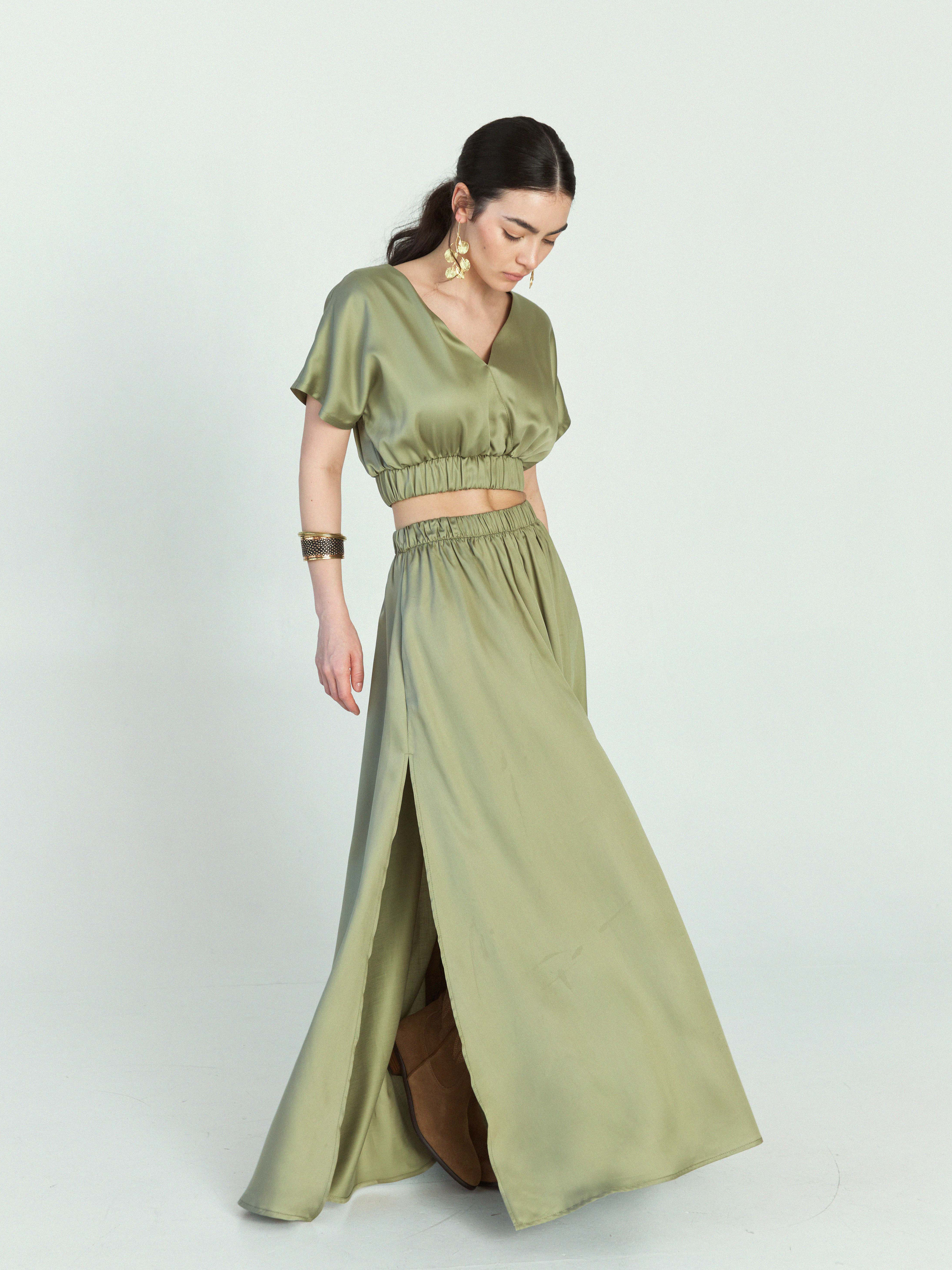 Сшитый из 100% тенсела, он дышит вместе с телом и струится по фигуре.