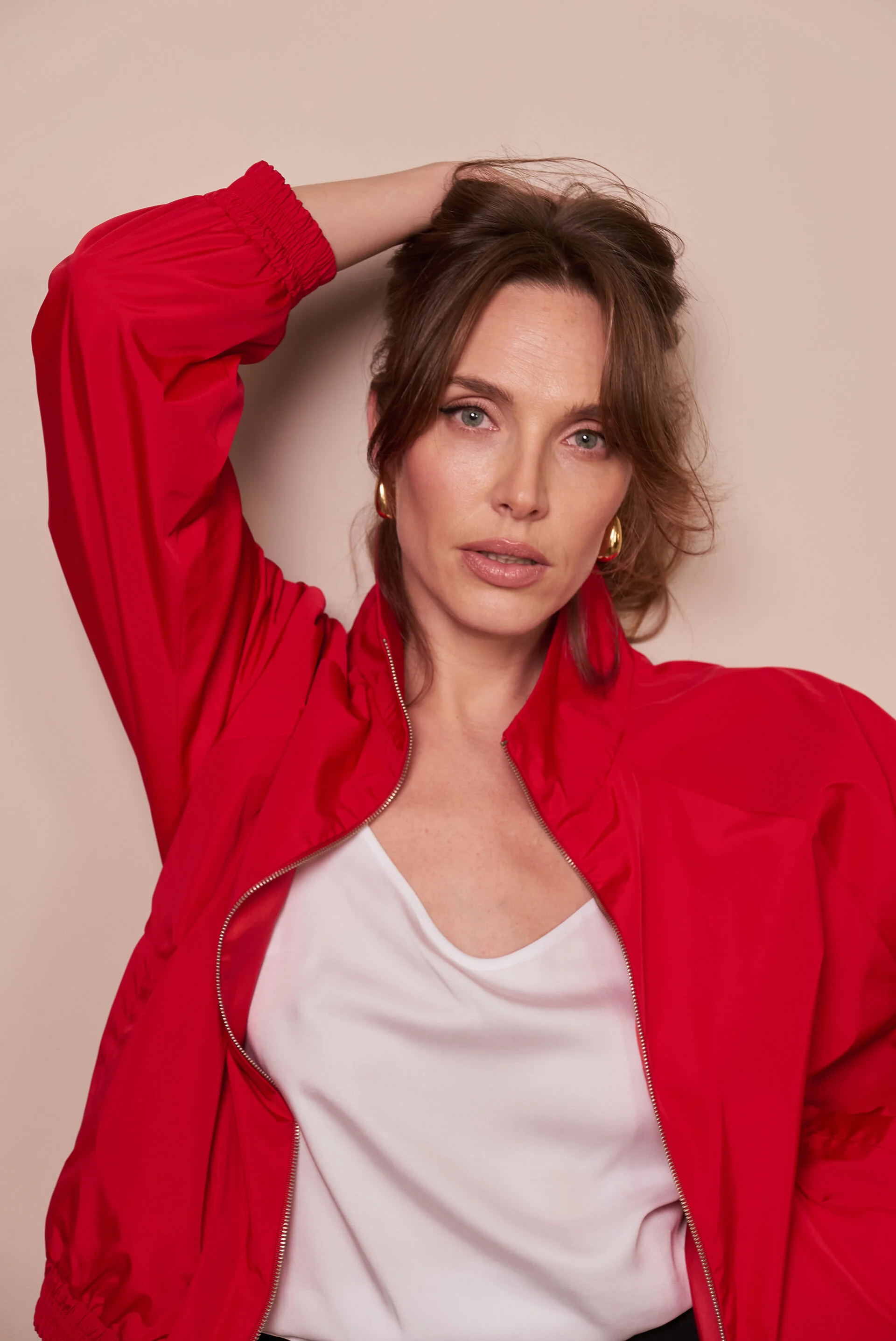 Женский лаковый бомбер бордового цвета из приятной на ощупь и эластичной экокожи, максимально схожая с натуральной. Модель свободного кроя со спущенной линией плеча, длинными рукавами с манжетами на резинке, эластичным поясом, прорезными карманами и застежкой на молнию. Дышащая подкладка...